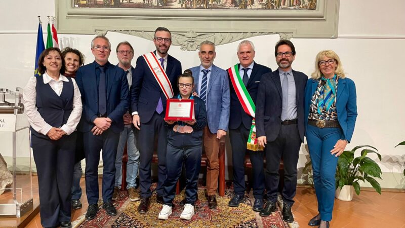Targa: cerimonia di premiazione dell’atleta di ginnastica ritmica Bambi Becattini