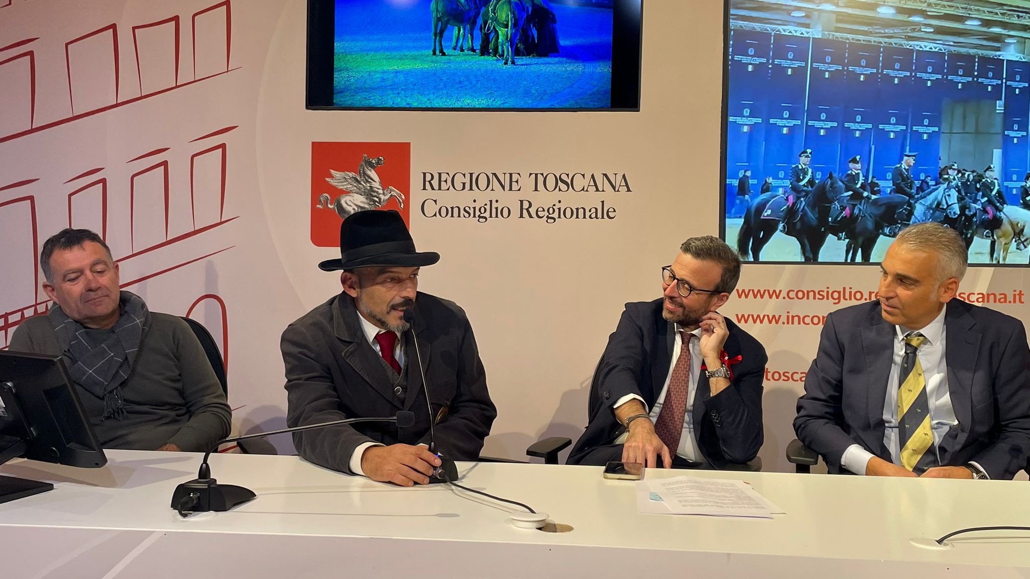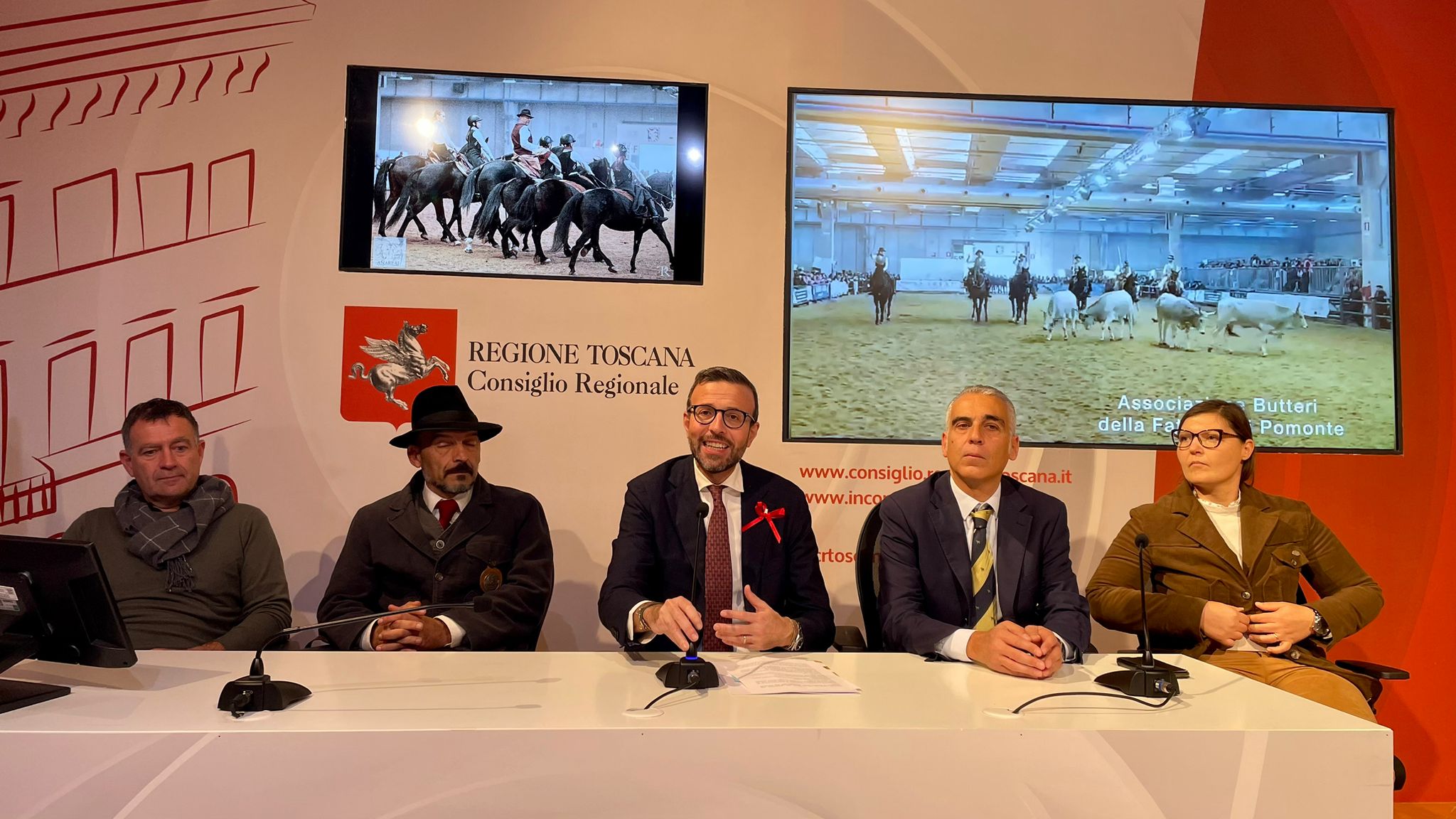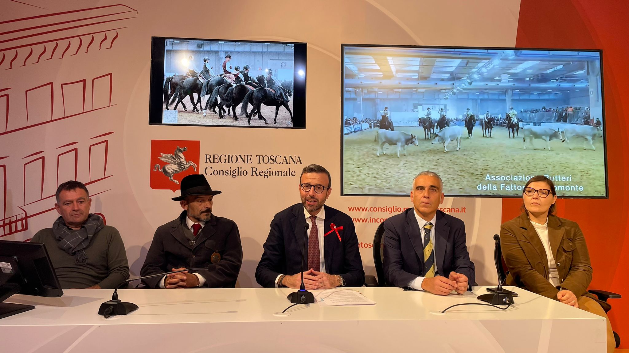 Firenze – Il buon esito della partecipazione delle associazioni toscane all’ultima Fieracavalli di Verona porta il segno anche del Consiglio regionale della Toscana. “Abbiamo deciso, insieme al consigliere Petrucci e a tutto l’Ufficio di presidenza, di sostenere chi racconta ogni giorno con il proprio lavoro quanta storia, quanta tradizione ci sia in questo settore in Toscana. Il nostro impegno è di continuare a farlo in futuro, perché noi intendiamo sostenere chi testimonia la bellezza della nostra regione”. Il presidente del Consiglio regionale, Antonio Mazzeo, ha salutato così le associazioni di allevatori toscani, riuniti a palazzo del Pegaso per celebrare la partecipazione all’edizione 2023 della Fieracavalli Verona. L’Associazione nazionale allevatori cavallo di razza (Anam); le associazioni ‘Butteri Alta Maremma’, ‘Cuor di Maremma’ e ‘Cavallino di Monterufoli e Asino Amiatino Ets’ lavorano in Toscana e portano avanti razze tipiche italiane/toscane (maremmani, monterufolini) e hanno partecipato all’evento dell’annuale che si tiene a Verona. La conferenza stampa si è tenuta questa mattina, mercoledì 22 novembre, a palazzo del Pegaso.