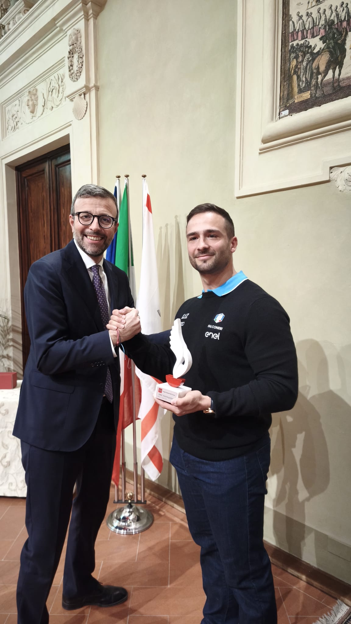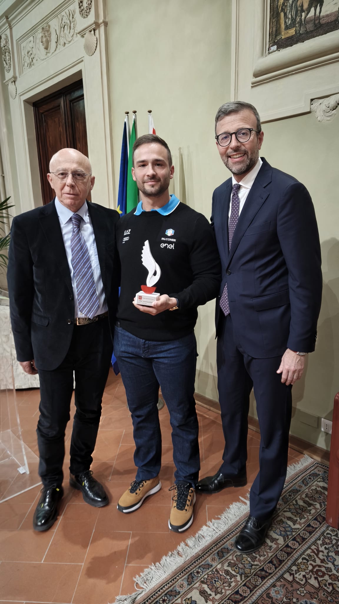 “La sua storia – prosegue Saccardi – racconta anche qualcosa di molto bello: il legame forte tra un atleta e la sua comunità. Il sostegno di Peccioli, che lo accompagna nelle competizioni internazionali, dimostra come lo sport possa diventare identità, partecipazione e orgoglio condiviso. Premiare Eric significa celebrare non solo un grande risultato sportivo, ma anche un esempio positivo per tanti giovani: la dimostrazione che con impegno, fiducia nella squadra e capacità di sognare in grande si possono raggiungere traguardi straordinari.”