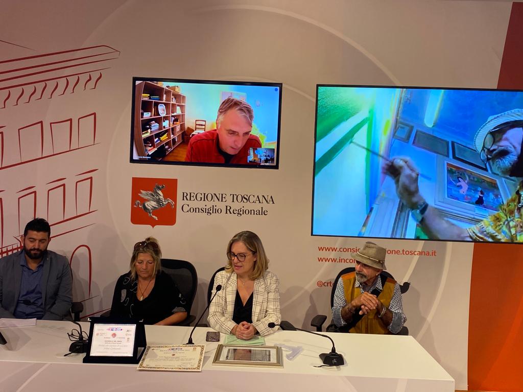 Nel Media Center Sassoli di palazzo del Pegaso, Federica Fratoni, segretaria dell’Ufficio di presidenza dell’Assemblea legislativa, omaggia il pittore “ambasciatore della cultura Toscana nel mondo”. “Consegnare a Camardo una targa nella sala che ricorda l’ex presidente del Parlamento europeo assume un significato particolare – ha detto – Nelle sue opere, infatti, si legge un messaggio di pace e universalità molto potente. Il suo è un linguaggio elevato, sa interpretare l’arte nella misura più alta e anche per questo dobbiamo esserne orgogliosi”.
