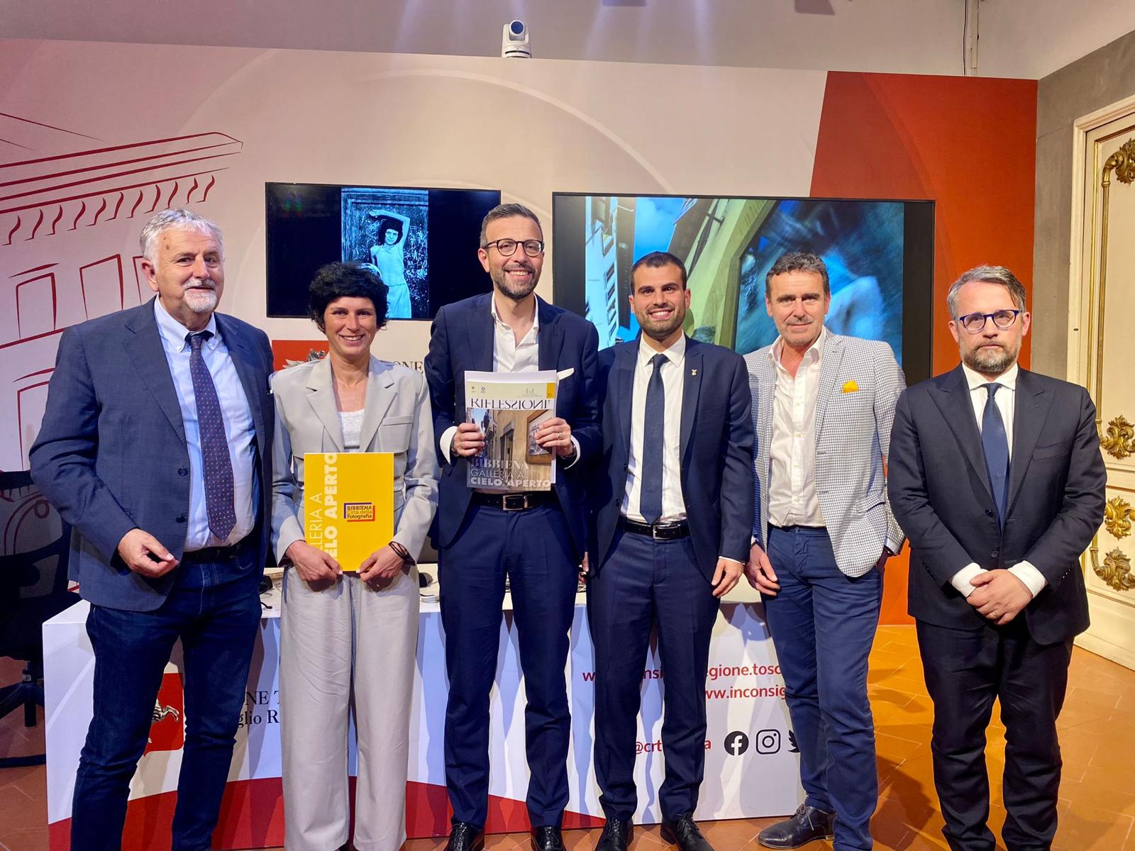 Presentato il programma della prossima edizione di Bibbiena fotografia che inizia sabato 17 giugno. Sono intervenuti Antonio Mazzeo e Marco Casucci, presidente e vicepresidente del Consiglio regionale, Vincenzo Ceccarelli consigliere regionale, Filippo Vagnoli e Francesca Nassini sindaco e assessore alla cultura del comune di Bibbiena, Roberto Rossi presidente FIAF (Federazione italiana associazioni fotografiche)