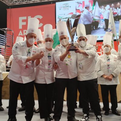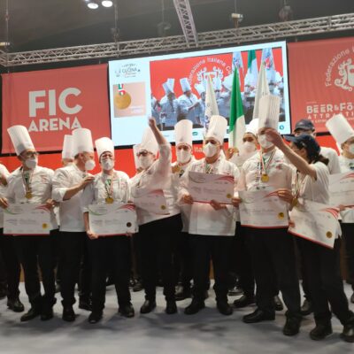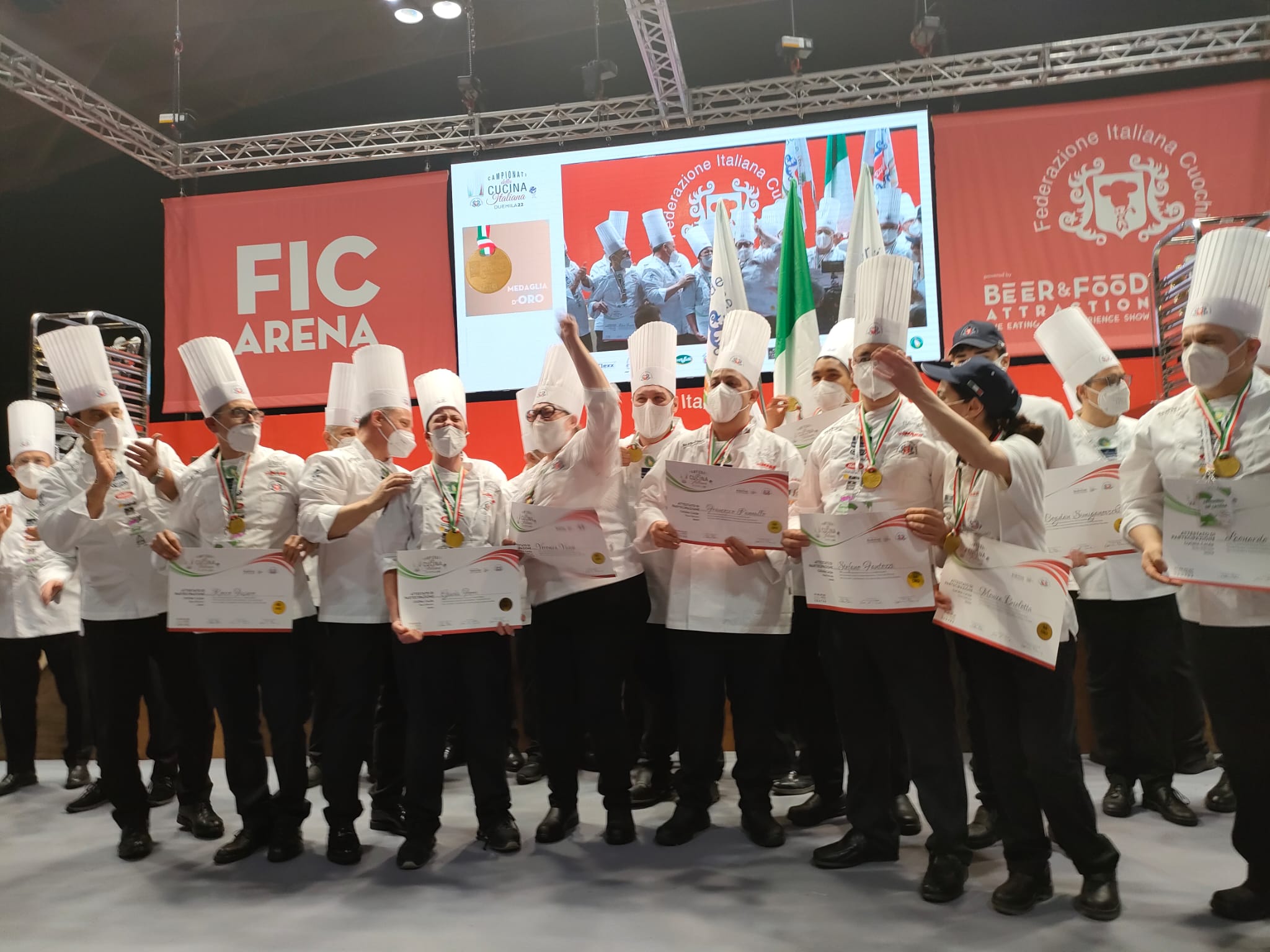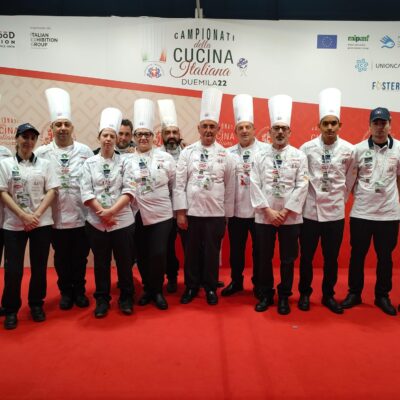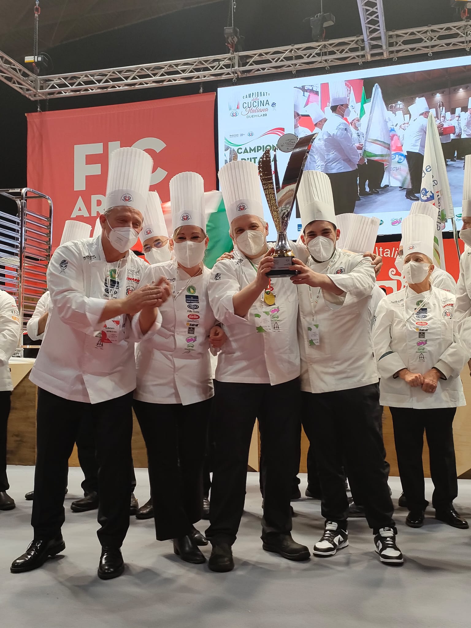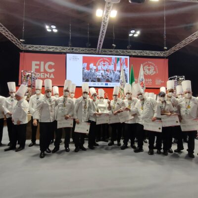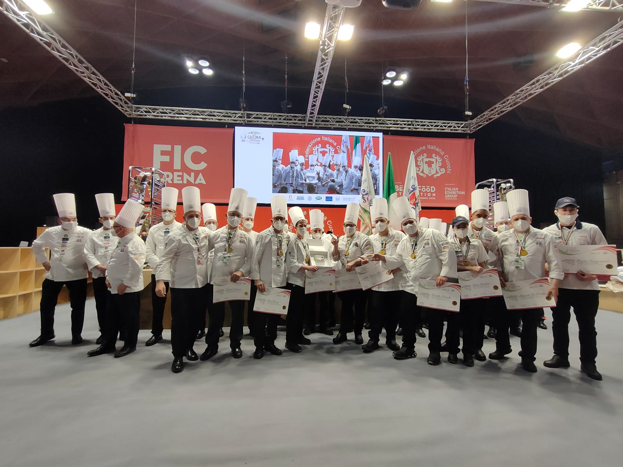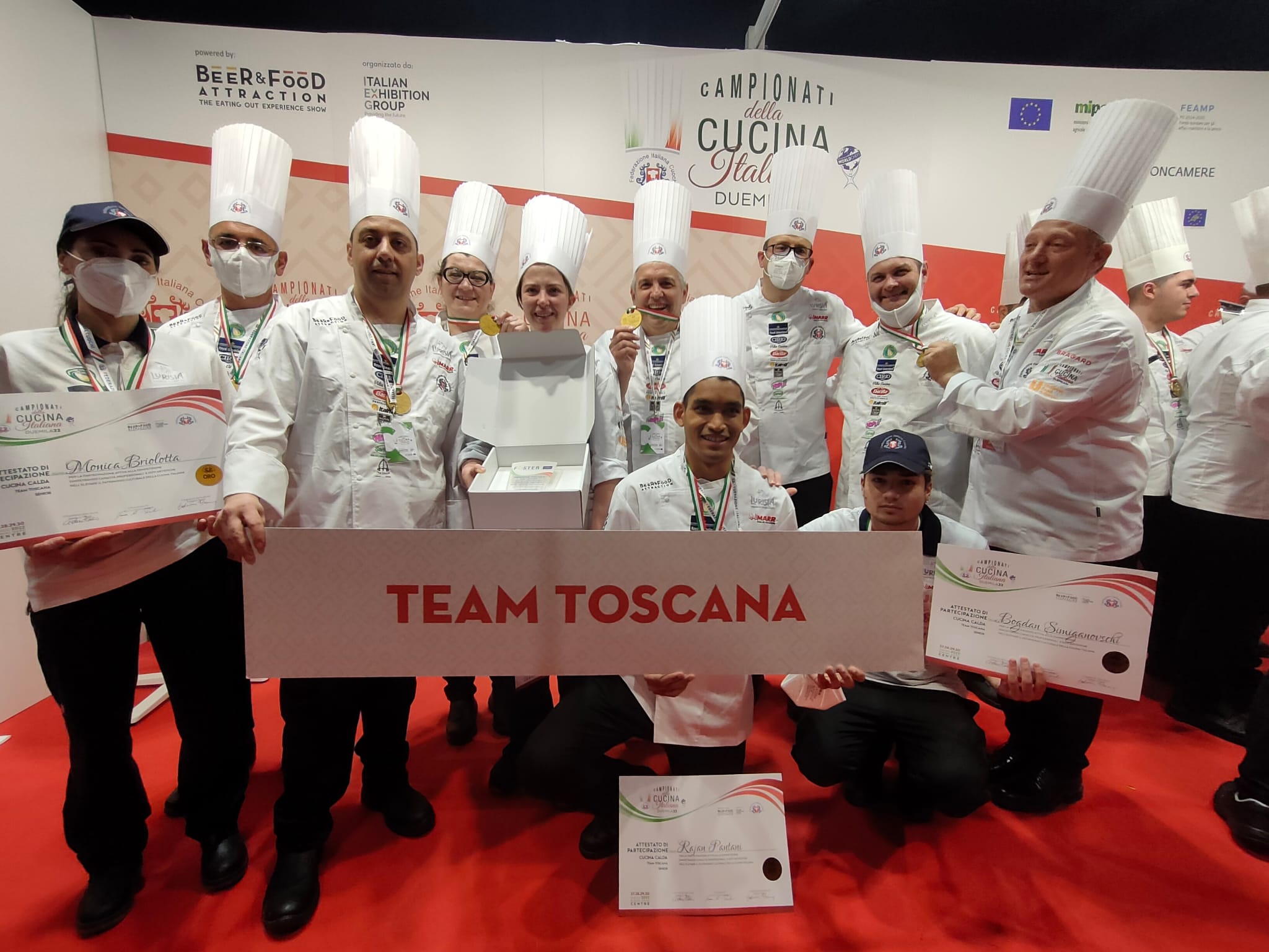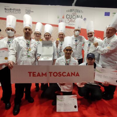 La squadra regionale dei cuochi toscani, composta da Stefano Fantozzi, Veronica Vanni, Giada Ferri, Grazia Monica Briolotta, Leonardo De Candia, Daniele Astarella, Francesco Pannullo, Rocco Fusaro, Rajan Pantani e Bogdan Simiganovchi si è aggiudicata l’Oro nel concorso di cucina calda a squadre.