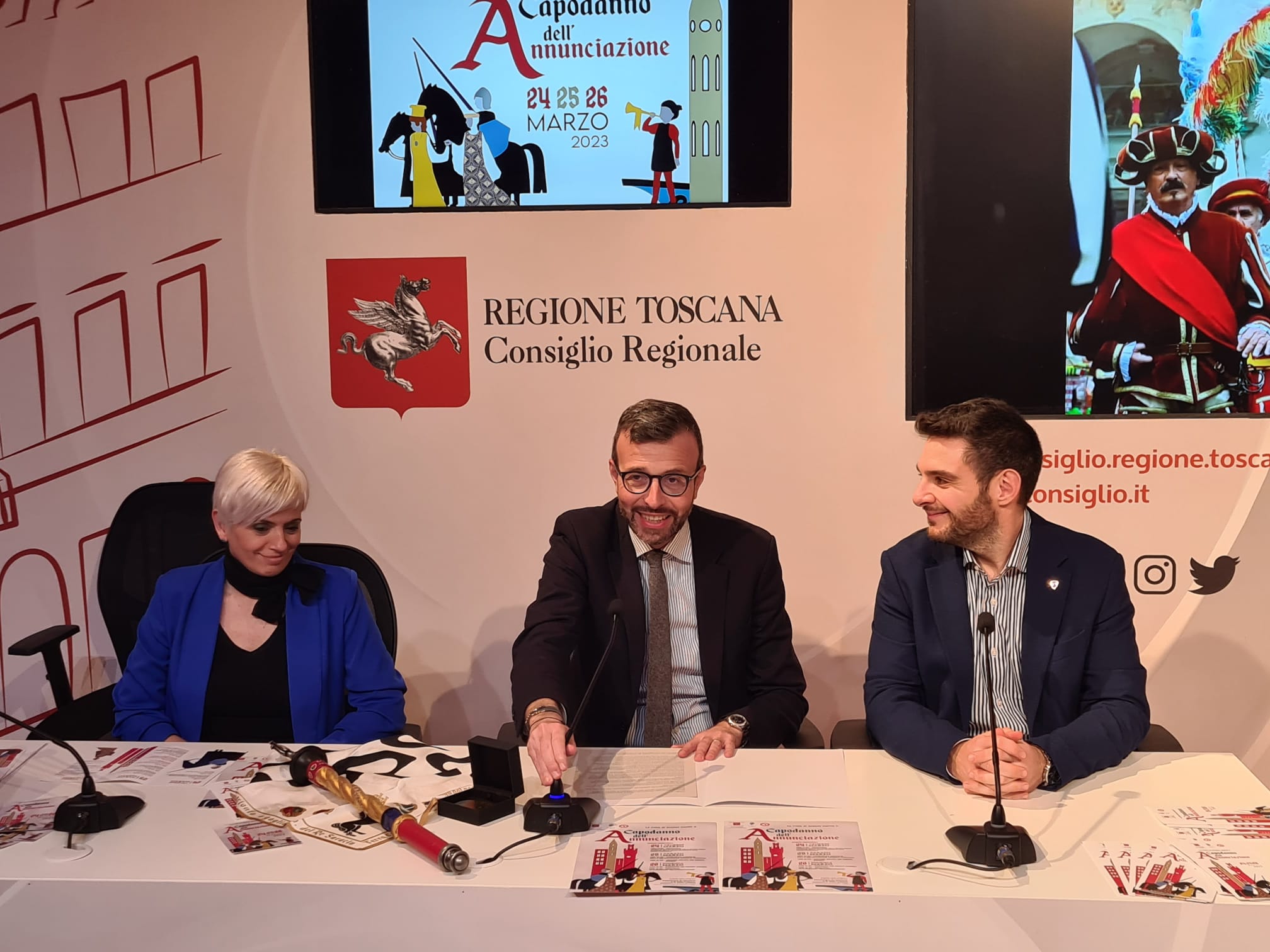 “Ringrazio l’amministrazione comunale di Arezzo per aver partecipato insieme a noi all’organizzazione di questi tre giorni, che ricordano quando il Capodanno iniziava nel giorno dell’Annunciazione”, dice il presidente del Consiglio regionale, Antonio Mazzeo. “In questa legislatura, abbiamo voluto cambiare il nome per dare il senso storico dell’evento. E un grazie di cuore, sentito, va a tutte le associazioni di rievocazioni storiche in Toscana. Sono tante e svolgono un ruolo importantissimo. La Toscana è conosciuta nel mondo per le sue rievocazioni storiche ed è bello sapere che tutti insieme, in questi tre giorni, racconteremo quant’è bella e quanta storia c’è nella nostra regione”. Il presidente in apertura della conferenza stampa, saluta anche i consiglieri che hanno voluto assistere alla presentazione della manifestazione, “il vicepresidente Marco Casucci, i consiglieri Elena Rosignoli e Gabriele Veneri, che fanno parte del comitato regionale delle rievocazioni storiche, il capogruppo Marco Stella. La loro presenza ci dà il senso e il valore del perché le manifestazioni di rievocazione storica devono restare patrimonio di tutti”.