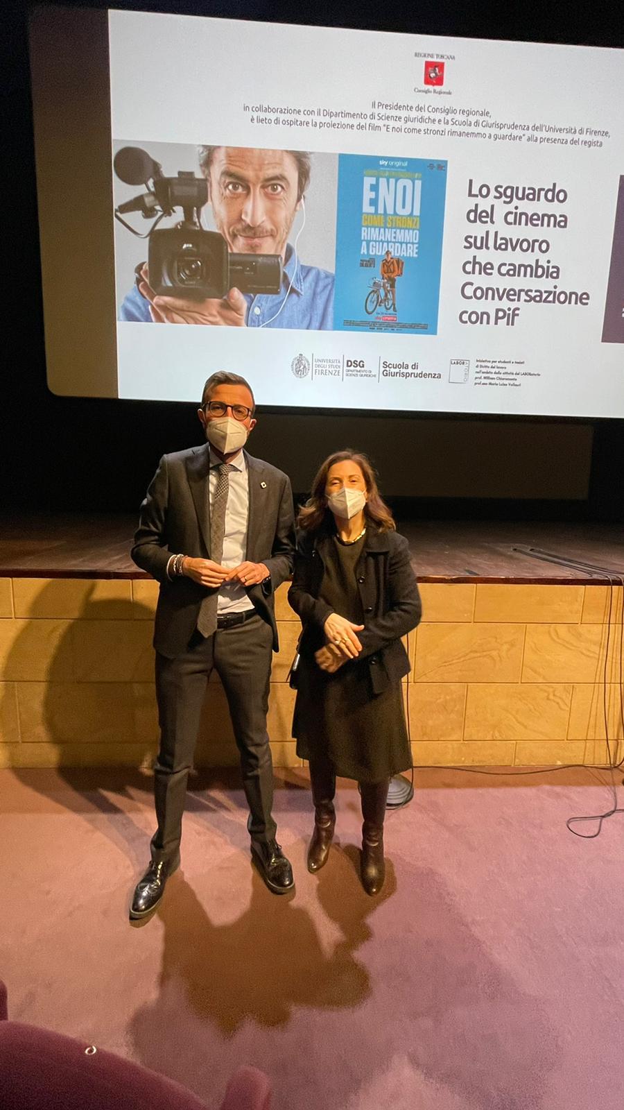 Firenze – “Sembra quasi incredibile ma la pellicola di Pif (al secolo Pierfrancesco Diliberto) ricalca esattamente una delle principali battaglie che abbiamo portato avanti in Consiglio regionale in questo primo anno e mezzo: tutelare i lavoratori e in particolare quelli delle piattaforme digitali”. Così il presidente del Consiglio regionale della Toscana, Antonio Mazzeo, ha accolto gli studenti del dipartimento di Scienze giuridiche e della scuola di Giurisprudenza dell’Università di Firenze al teatro della Compagnia di Firenze poco prima della proiezione del film E noi come stronzi rimanemmo a guardare, diretta dallo stesso Pif e interpretata da Fabio De Luigi e Ilenia Pastorelli.