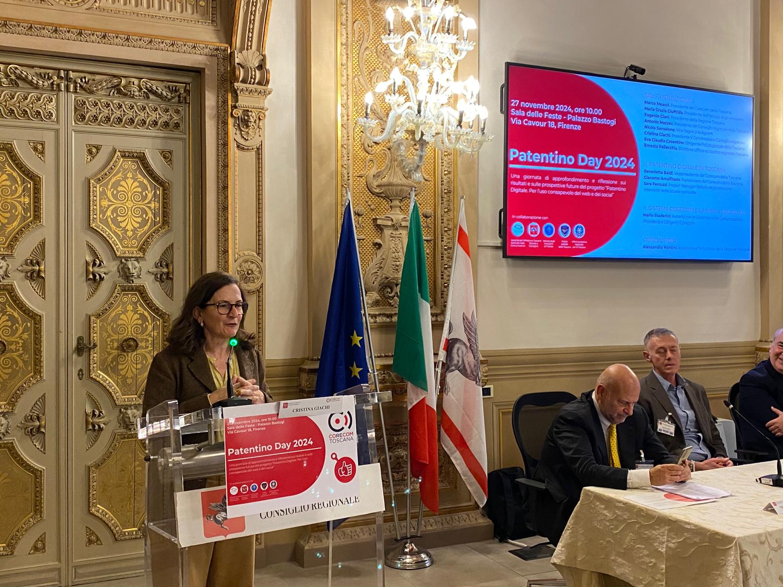 “L’idea che il Corecom interpreta benissimo è quella di insegnare ad avere un rapporto critico con i media digitali, a usarli essendo cauti sugli aspetti condizionanti e che pregiudicano le relazioni – ha affermato la presidente della Commissione Cultura del Consiglio regionale Cristina Giachi – . A testimoniare la sua validità è il successo ottenuto in questi anni, la richiesta continua di allargare l’offerta del Patentino digitale e della formazione che ne consegue per docenti e studenti. Le istituzioni devono aiutare i cittadini a vivere meglio il mondo complesso intorno a loro, non devono limitarsi a vietare senza spiegare e senza insegnare. In questo hanno una funzione educativa fondamentale, che il Corecom Toscana interpreta benissimo”.