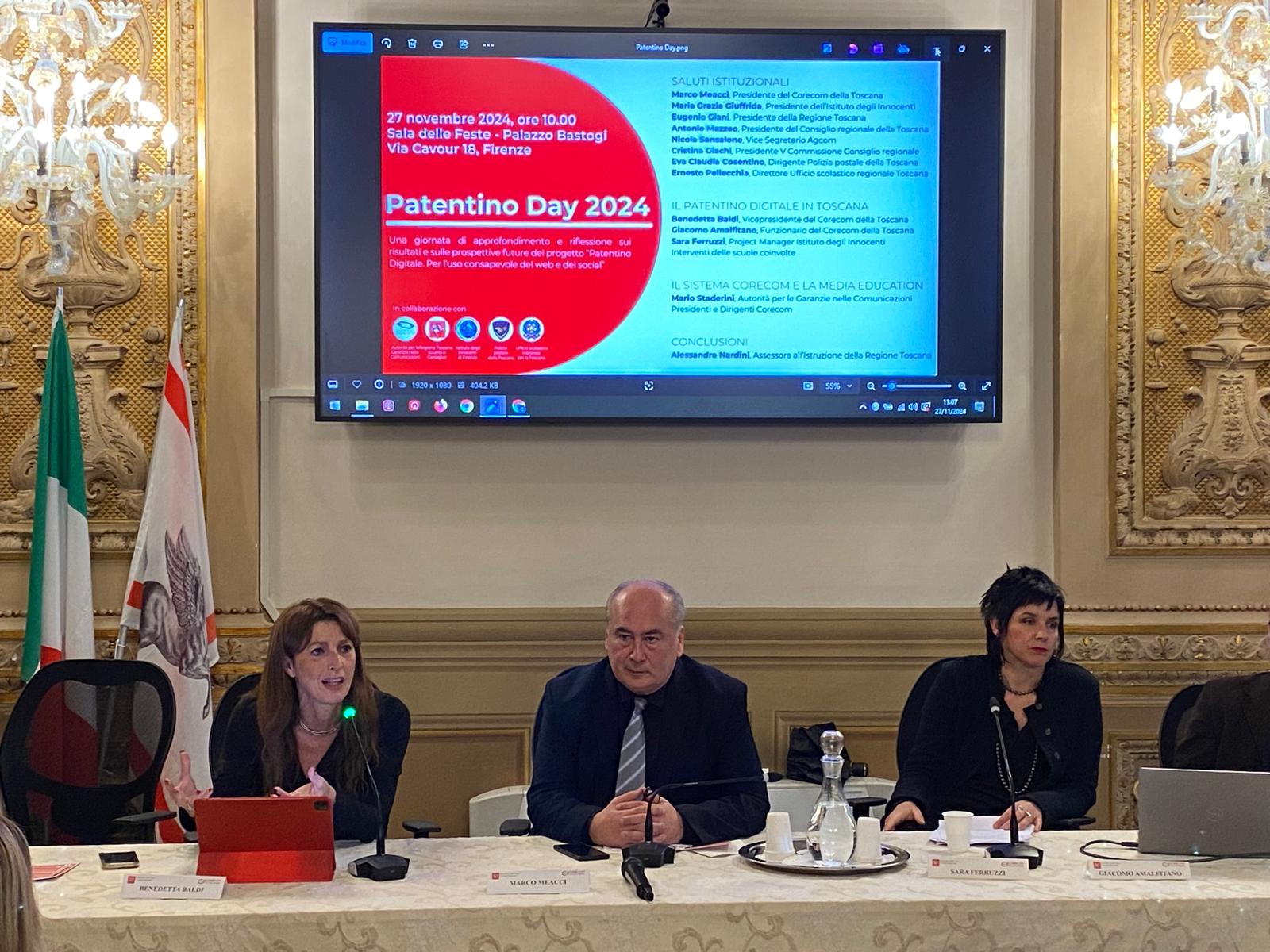 “Il tema della media-education è centrale per la nostra attività e in generale per tutti i Corecom – ha affermato il presidente del Corecom Marco Meacci – . Anno dopo anno cerchiamo di rafforzare il progetto del Patentino Digitale insieme all’Istituto degli innocenti. Questo autunno abbiamo raddoppiato il numero di classi e di scuole e vogliamo rivolgerci ai ragazzi, agli insegnanti e alle famiglie toscani. E’ importante infatti che ci sia un patto intergenerazionale perché si possa essere consapevoli fino in fondo dell’uso di questi strumenti: poterli usare oggi significa essere cittadini a pieno titolo”.