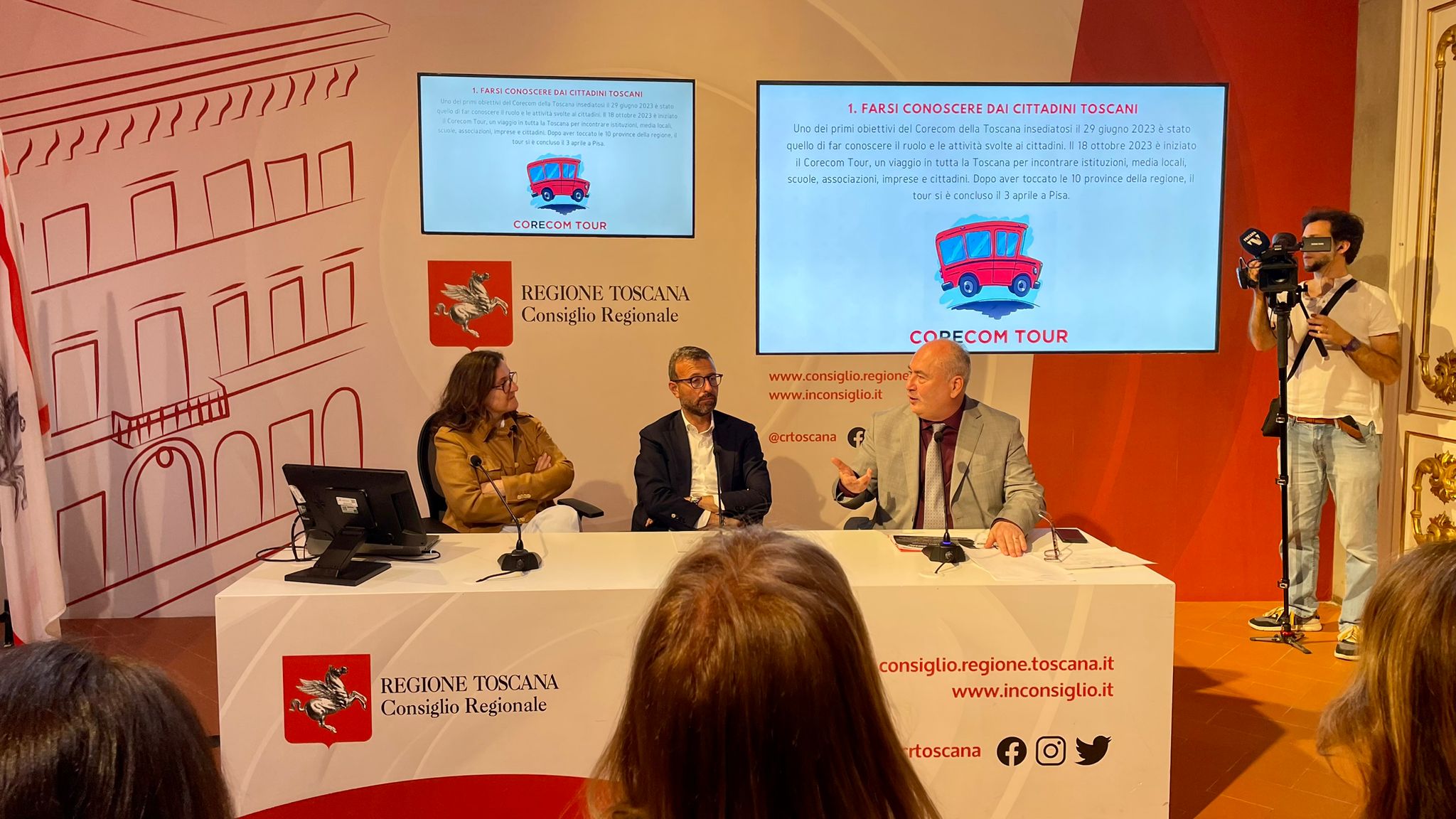 Dal tour nelle province toscane al patentino digitale nelle scuole, dalla vigilanza sulla par condicio alla risoluzione delle controversie. Il presidente del Consiglio regionale Antonio Mazzeo: “Svolto lavoro importante per far conoscere le funzioni del comitato”. Il presidente del Corecom Marco Meacci: “Avviate iniziative frutto di unità di intenti”. La presidente della commissione Cultura Cristina Giachi: “Fondamentali i progetti di media education verso i più giovani”