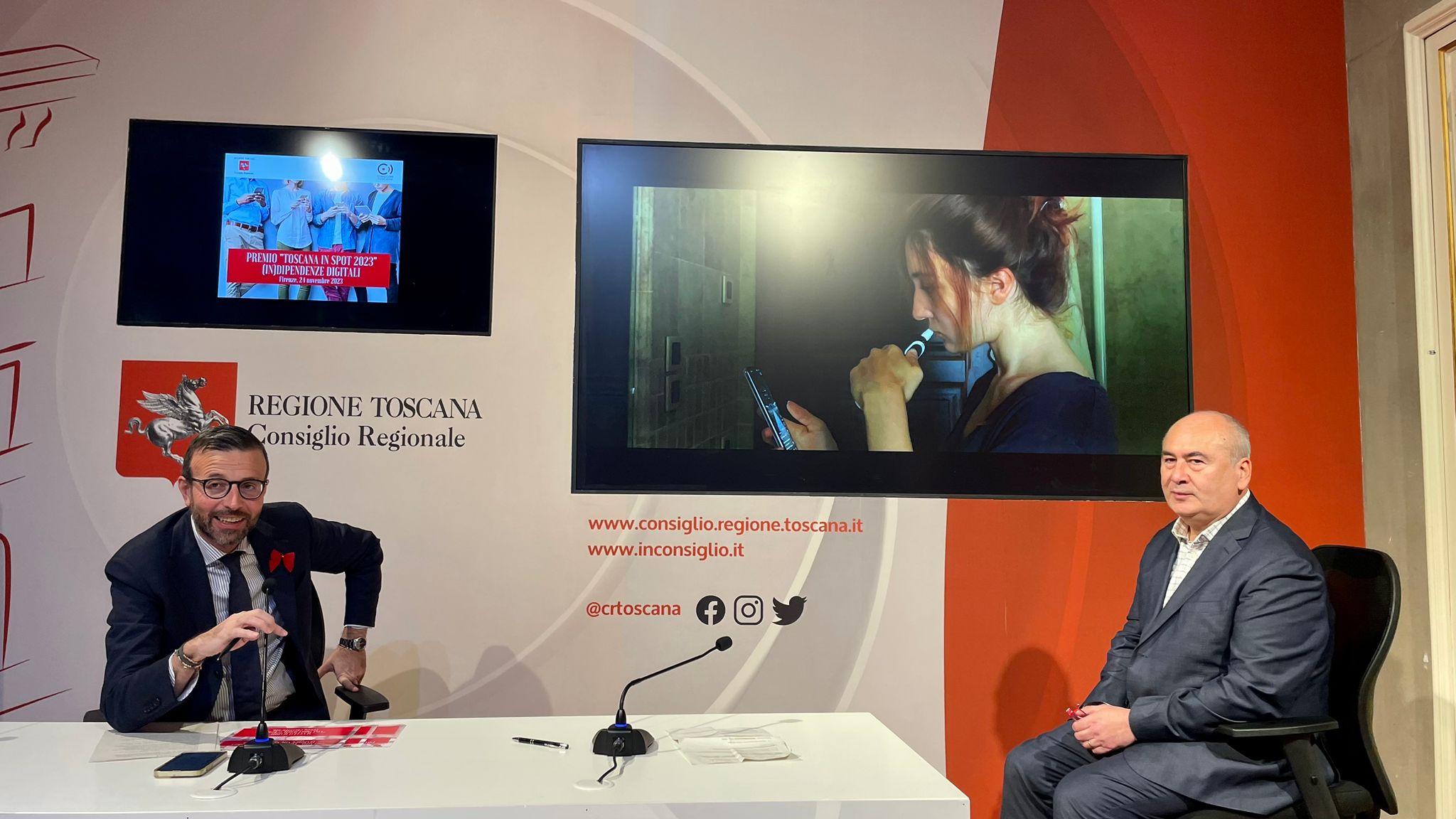 Firenze – ‘Offline’ della ventunenne di Cortona Chiara Rossi è il video vincitore della decima edizione del premio ‘Toscana in Spot 2023. (In)Dipendenze digitali’, promosso dal Comitato regionale per le comunicazioni (Corecom) e dedicato quest’anno al tema del contrasto alle dipendenze dalla rete e dall’universo digitale. Finalità del concorso quella di consentire, in particolare alle nuove generazioni, di esprimere attraverso il linguaggio audiovisivo un messaggio sui pericoli delle dipendenze e dei disturbi psicologici e fisici che i media digitali possono generare. I tre migliori spot audiovisivi, che si sono aggiudicati il montepremi da 10mila euro (5mila allo spot vincitore, 3mila al secondo classificato, 2mila al terzo) sono stati presentati questa mattina, venerdì 24 novembre, nel Media Center Sassoli di palazzo del Pegaso. Intervenuti il presidente del Consiglio regionale, Antonio Mazzeo, e il presidente del Corecom, Marco Meacci. Presenti gli autori: oltre a Chiara Rossi, Brian Vannacci, trentenne di Prato, vincitore del secondo premio con ‘Hai controllato lo smartphone’ e Matteo Daddi, trentacinquenne di Livorno, terzo classificato con Vivi fuori dagli schemi’.