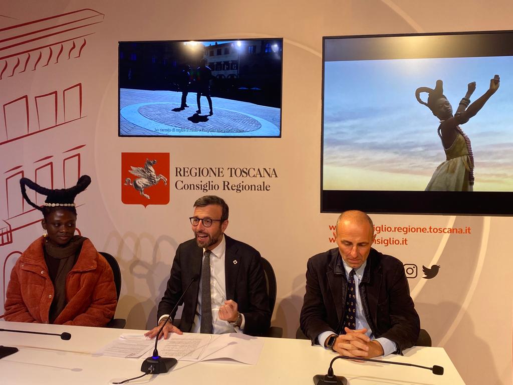 Firenze – Un critico toscano alla Biennale di Venezia: è Alessandro Romanini, docente dell’Accademia di belle arti di Carrara che, insieme al collega Massimo Scaringella, ha ricevuto l’incarico dal Ministero della Cultura, dell’Arte e dello Spettacolo del governo della Repubblica della Costa d’Avorio, di curare il Padiglione Nazionale dello Stato africano alla 59esima Biennale di Venezia. ‘Il sogno di una storia’ è il titolo che i curatori, insieme al Commissario Henri Koffissé N’koumo, hanno scelto per l’esposizione. Un progetto che ha riscosso molta attenzione di critica e di pubblico e che è stato raccontato questo pomeriggio a Palazzo del Pegaso da Romanini stesso e da Laetitia Ky, tra i protagonisti dell’esposizione, seguitissima artista ventiseienne ivoriana e attivista per i diritti delle donne. L’artista, famosa per le straordinarie sculture che crea con la sua capigliatura afro, che si ricollegano alle acconciature pre-coloniali delle donne della Costa d’Avorio, ha ricevuto dal presidente del Consiglio regionale Toscano Antonio Mazzeo il Pegaso d’argento.