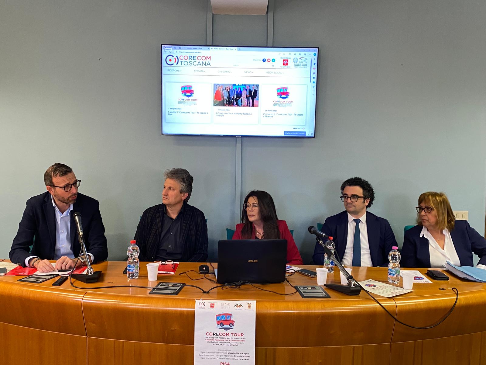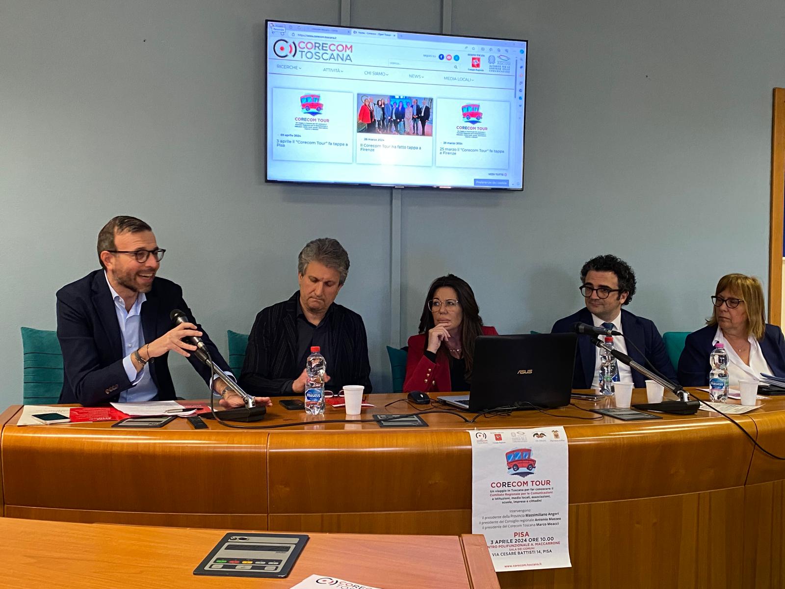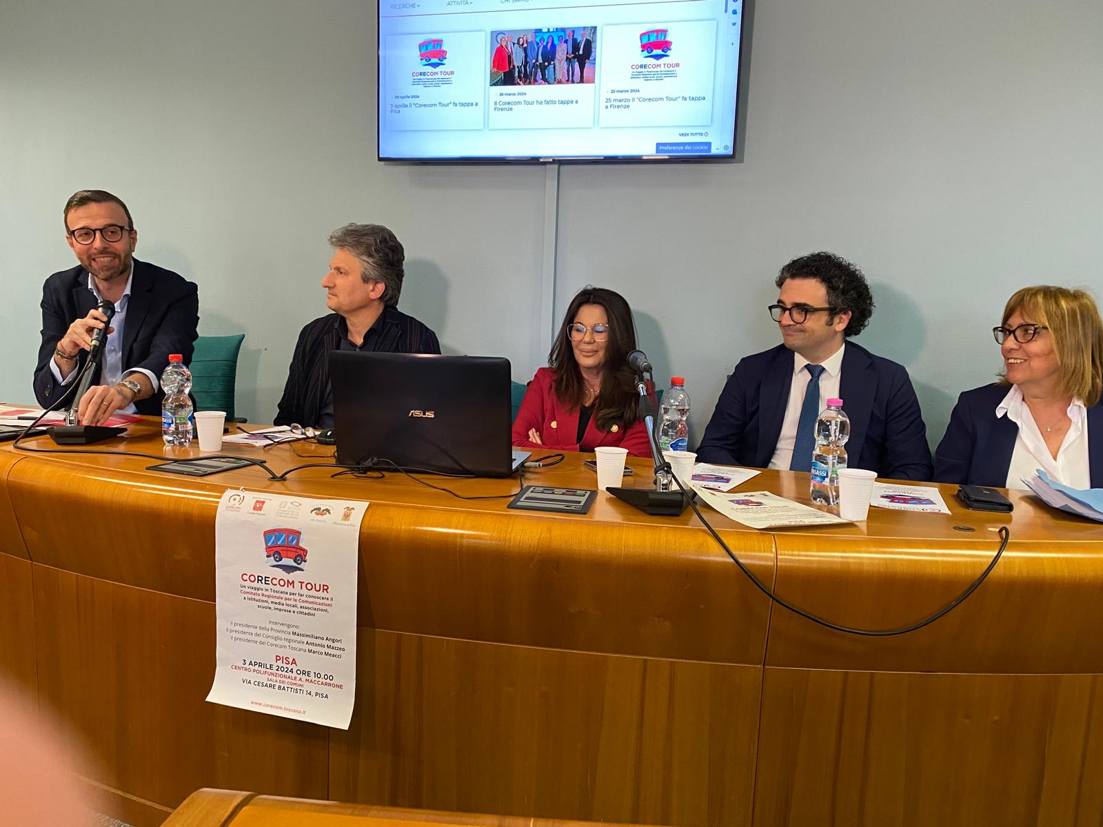 Intervenuti all’incontro, che si è svolto nel Centro Polifunzionale Maccarrone a Pisa, il presidente del Consiglio regionale Antonio Mazzeo, il presidente del Corecom Toscana Marco Meacci, i componenti del Comitato Biagio Depresbiteris, Carlotta Agostini, Bianca Maria Giocoli, e il presidente della Provincia di Pisa Massimiliano Angori.