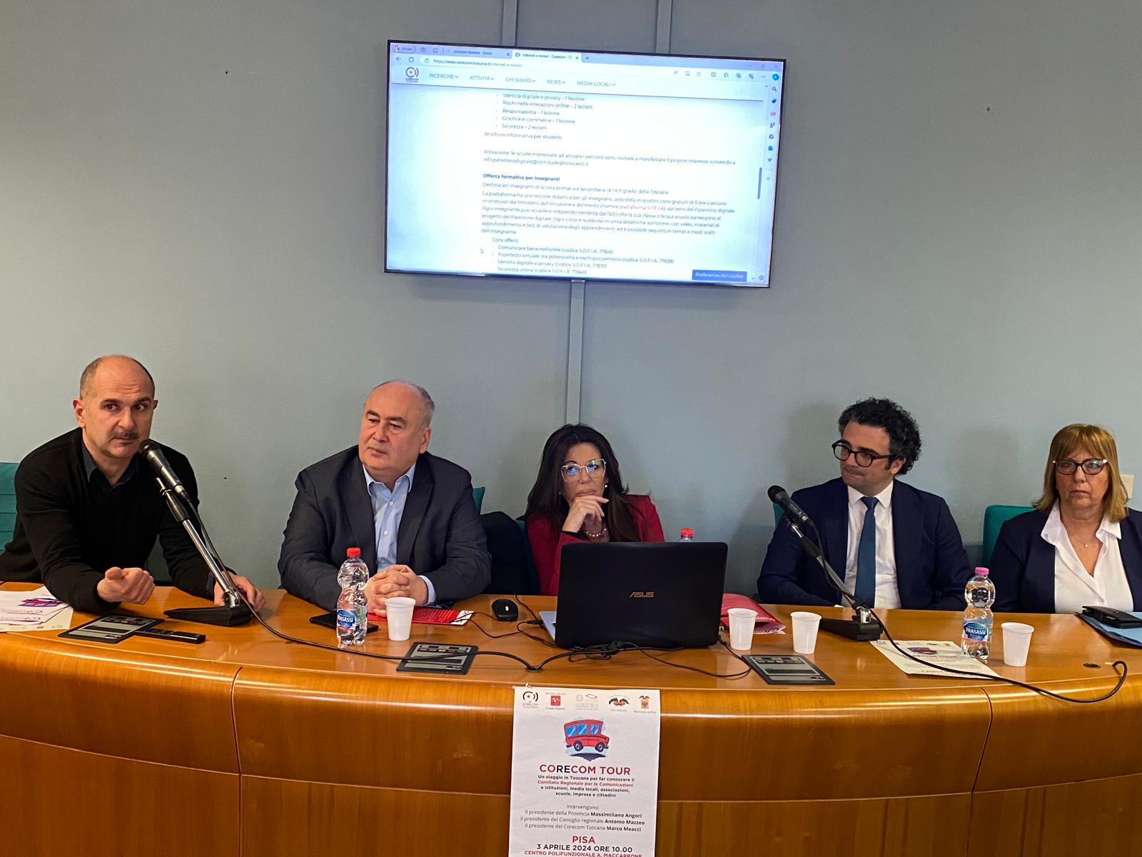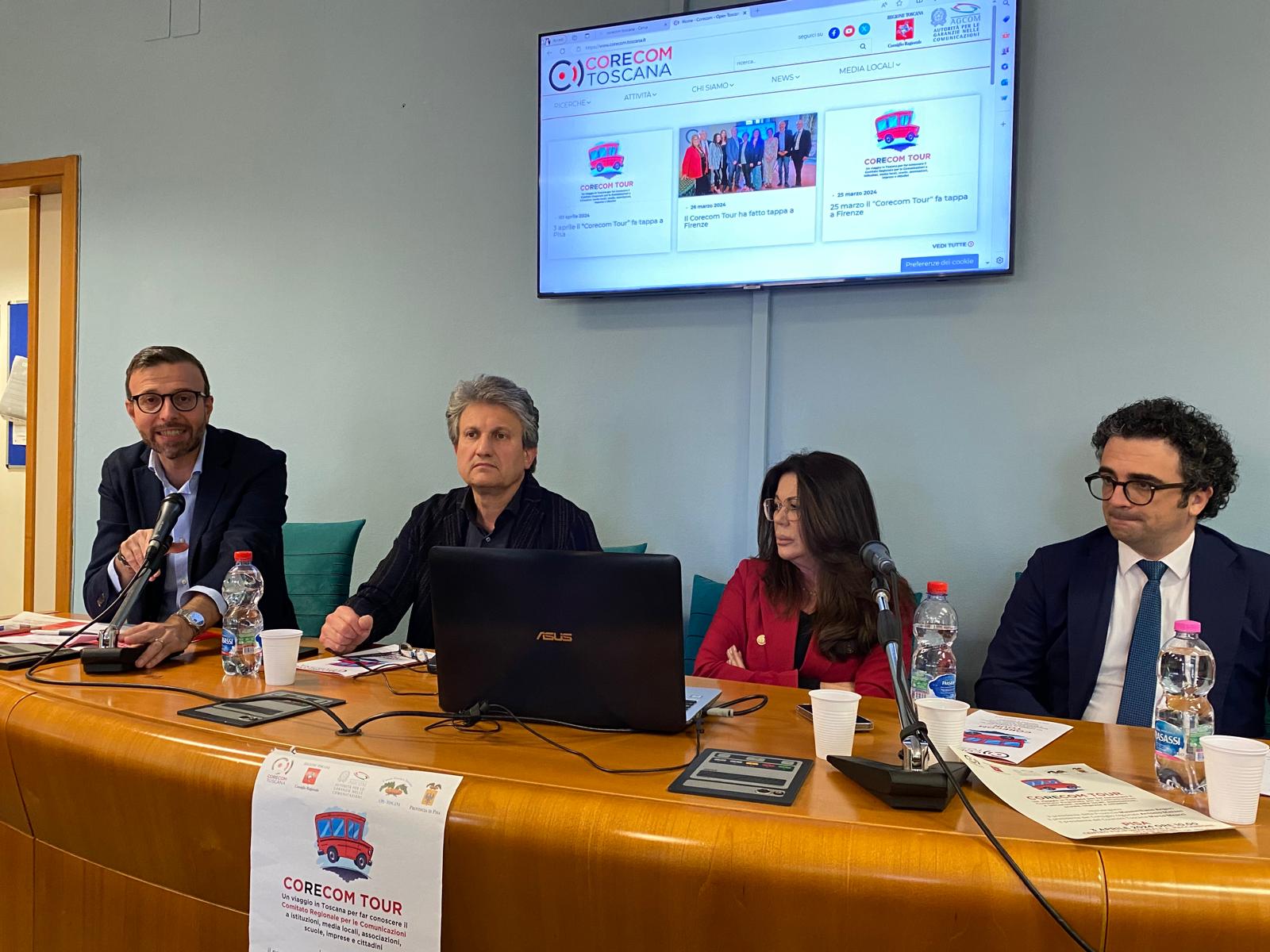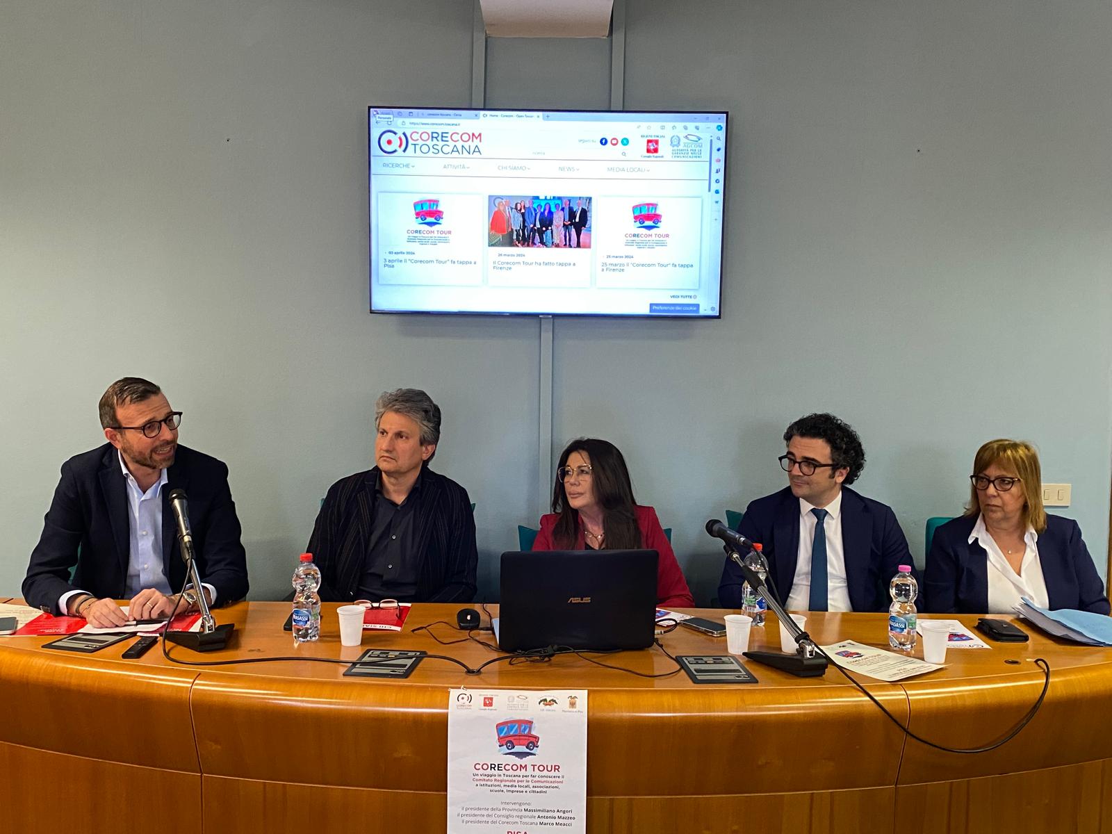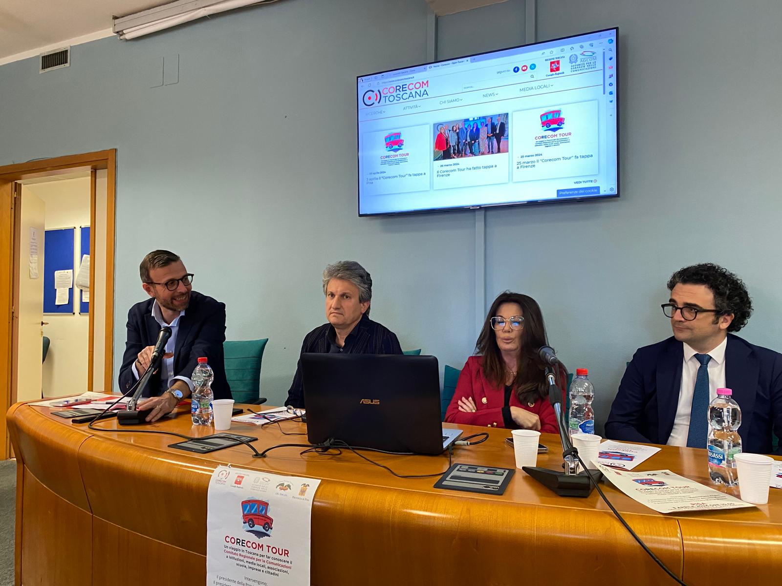 Intervenuti all’incontro, che si è svolto nel Centro Polifunzionale Maccarrone a Pisa, il presidente del Consiglio regionale Antonio Mazzeo, il presidente del Corecom Toscana Marco Meacci, i componenti del Comitato Biagio Depresbiteris, Carlotta Agostini, Bianca Maria Giocoli, e il presidente della Provincia di Pisa Massimiliano Angori.