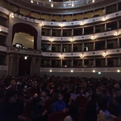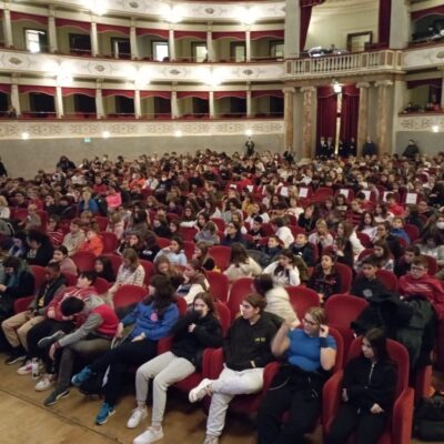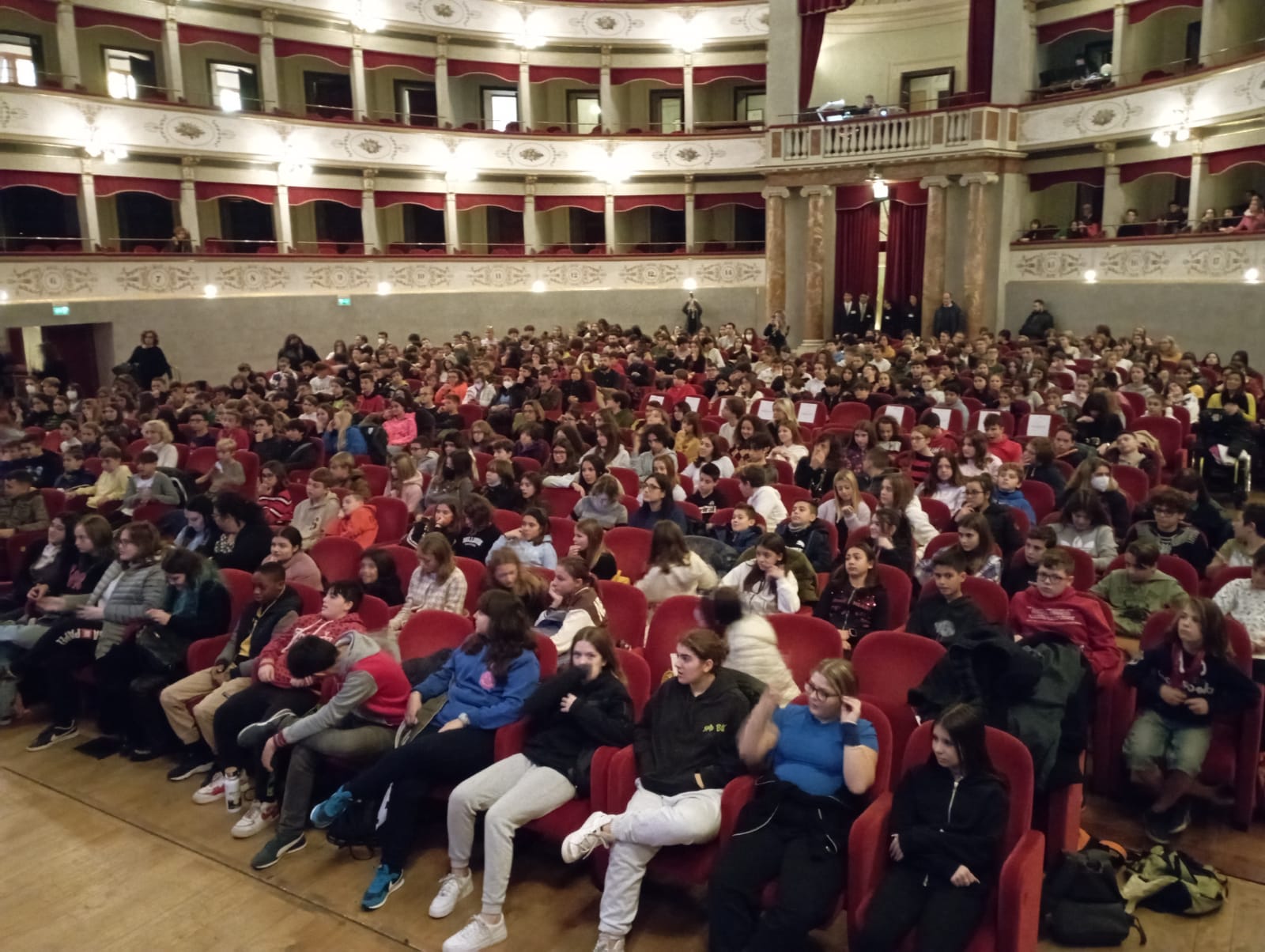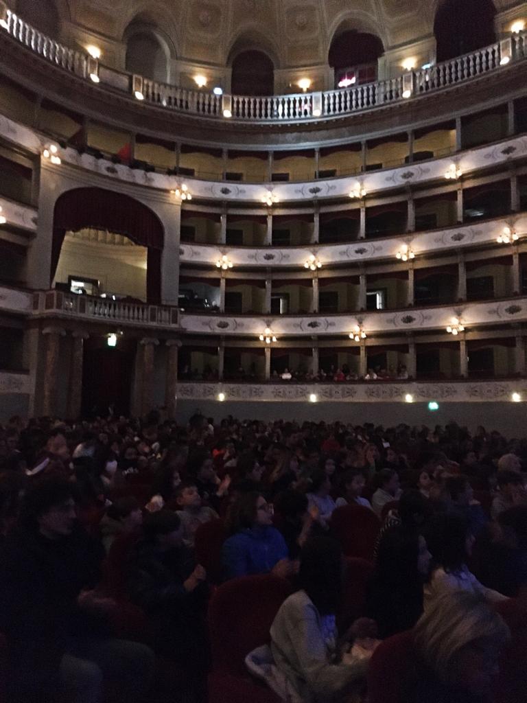 Al Teatro Goldini erano presenti studenti degli Istituti comprensivi Roberto Angeli, Micheli Bolognesi, Benci Borsi, Brin, Carducci, Micali, Bartolena, De Amicis e Galilei.