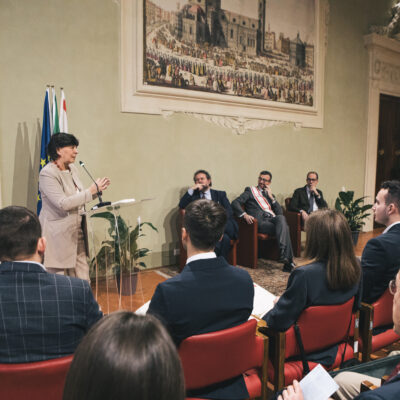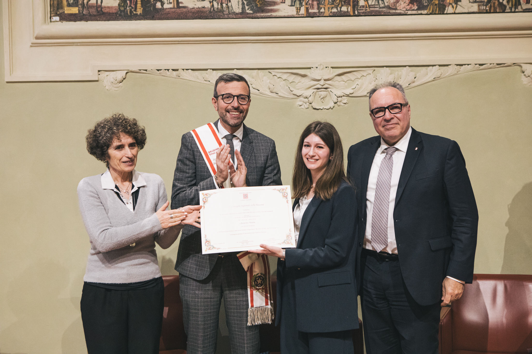 Ha inviato un videomessaggio da Bruxelles Pina Picerno, vicepresidente del Parlamento europeo, in cui si è complimentata con i vincitori. “Scegliere di dedicare questo premio a David Sassoli è particolarmente significativo – ha detto –. La sua esperienza umana e politica continua ad accompagnarci nelle Istituzioni. Il tempo che stiamo attraversando necessita di tutta la capacità di studio e di innovazione di cui siamo capaci. Per l’avanzamento del processo di integrazione europeo occorrono coraggio, passione e intelligenza, la stessa che ha ispirato le tesi che oggi vengono premiate”.