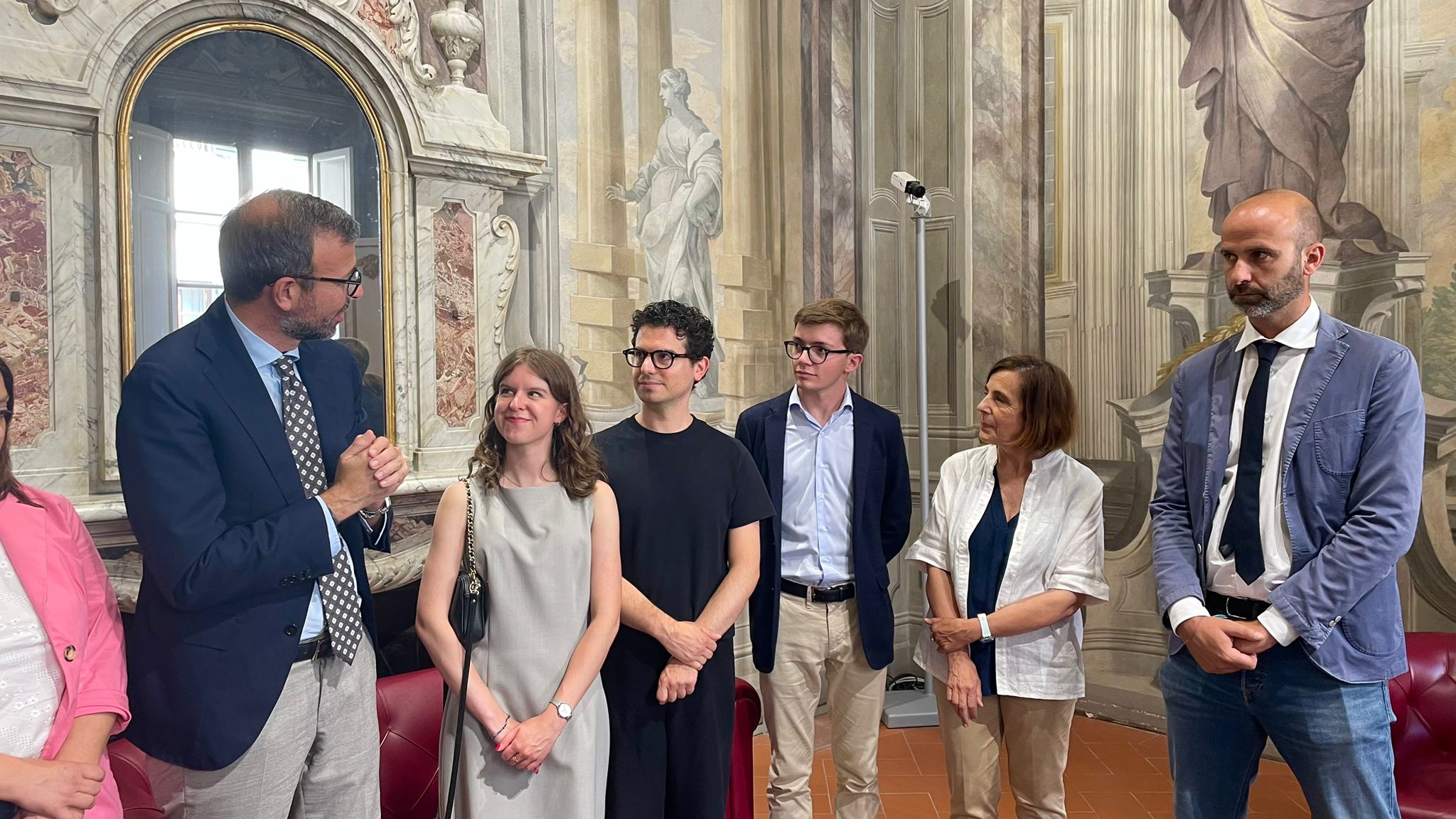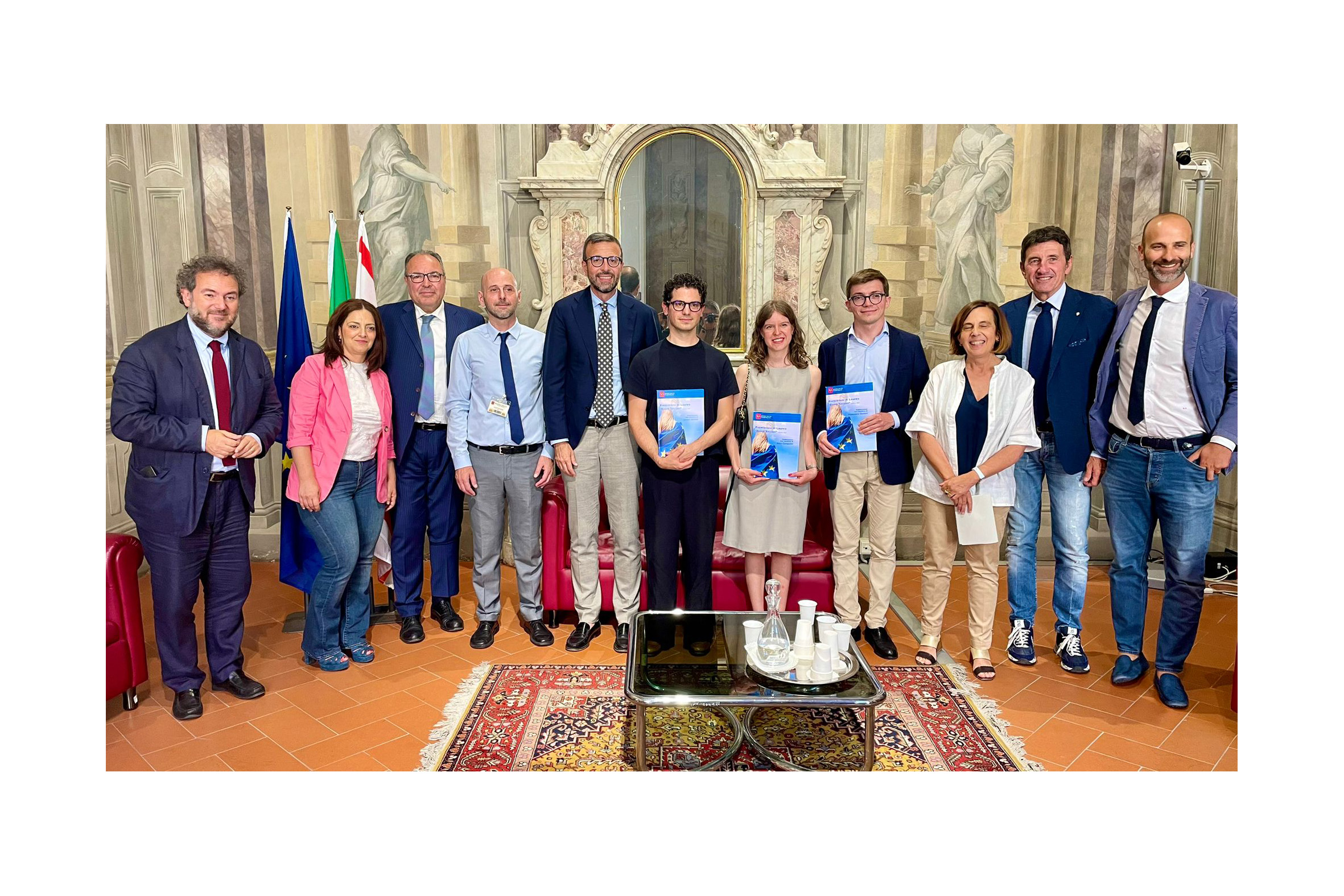 Firenze – Il presidente del Consiglio regionale Antonio Mazzeo e il presidente della commissione Politiche europee Francesco Gazzetti, insieme ai membri della commissione, il vicepresidente Giovanni Galli, la vicepresidente segretaria Anna Paris e i consiglieri regionali Valentina Mercanti, Fausto Merlotti e Andrea Vannucci hanno accolto a palazzo del Pegaso i vincitori delle passate edizioni del ‘Premio Miglior Tesi di Laurea David Sassoli’ per un appuntamento speciale la consegna delle pubblicazioni degli elaborati vincitori. Con loro il professor Luca Paladini protagonista come membro della commissione e docente all’Università per Stranieri di Siena.
