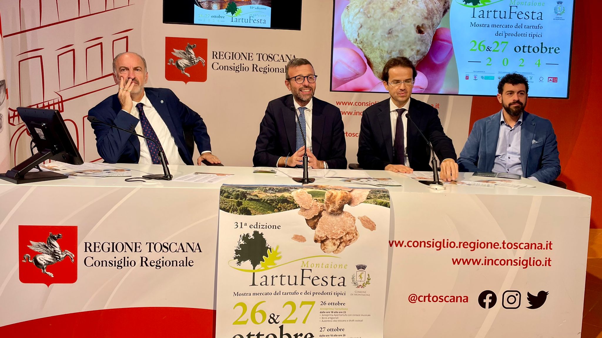 Firenze – Si avvicina l’inaugurazione della 31ª edizione della TartuFesta, Mostra mercato del tartufo e dei prodotti tipici, l’appuntamento imperdibile per gli amanti della buona tavola e delle eccellenze toscane. Il 26 e 27 ottobre, il suggestivo centro storico di Montaione si trasformerà in una vetrina a cielo aperto delle migliori specialità enogastronomiche della regione, con il tartufo bianco come protagonista indiscusso. L’edizione 2024 di ‘Tartufesta’ è stata presentata al Media Center Sassoli di palazzo del Pegaso. Sono intervenuti il presidente del Consiglio regionale Antonio Mazzeo, il consigliere Enrico Sostegni, il sindaco di Montaione Paolo Pomponi e il vice sindaco Luca Belcari.