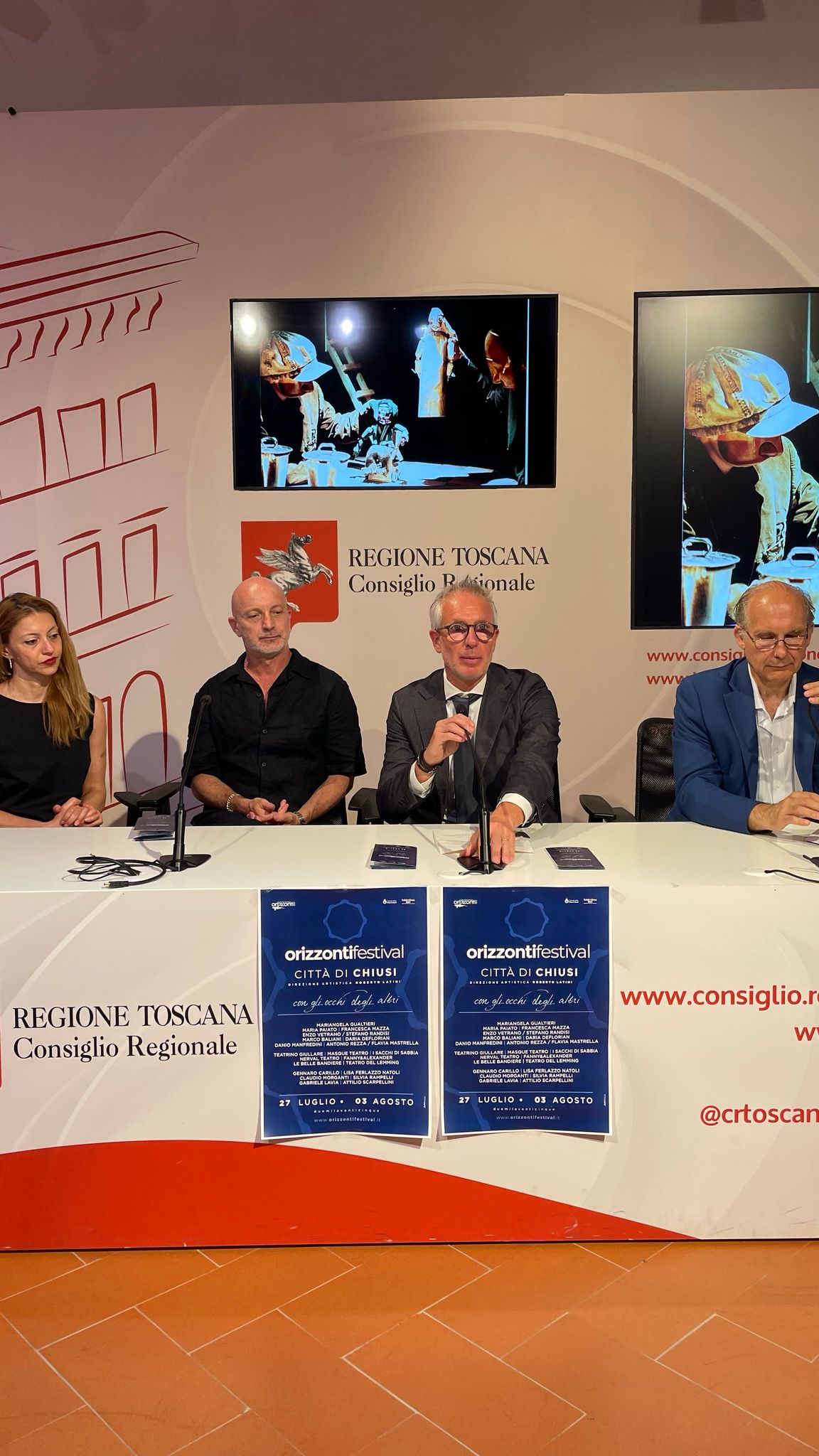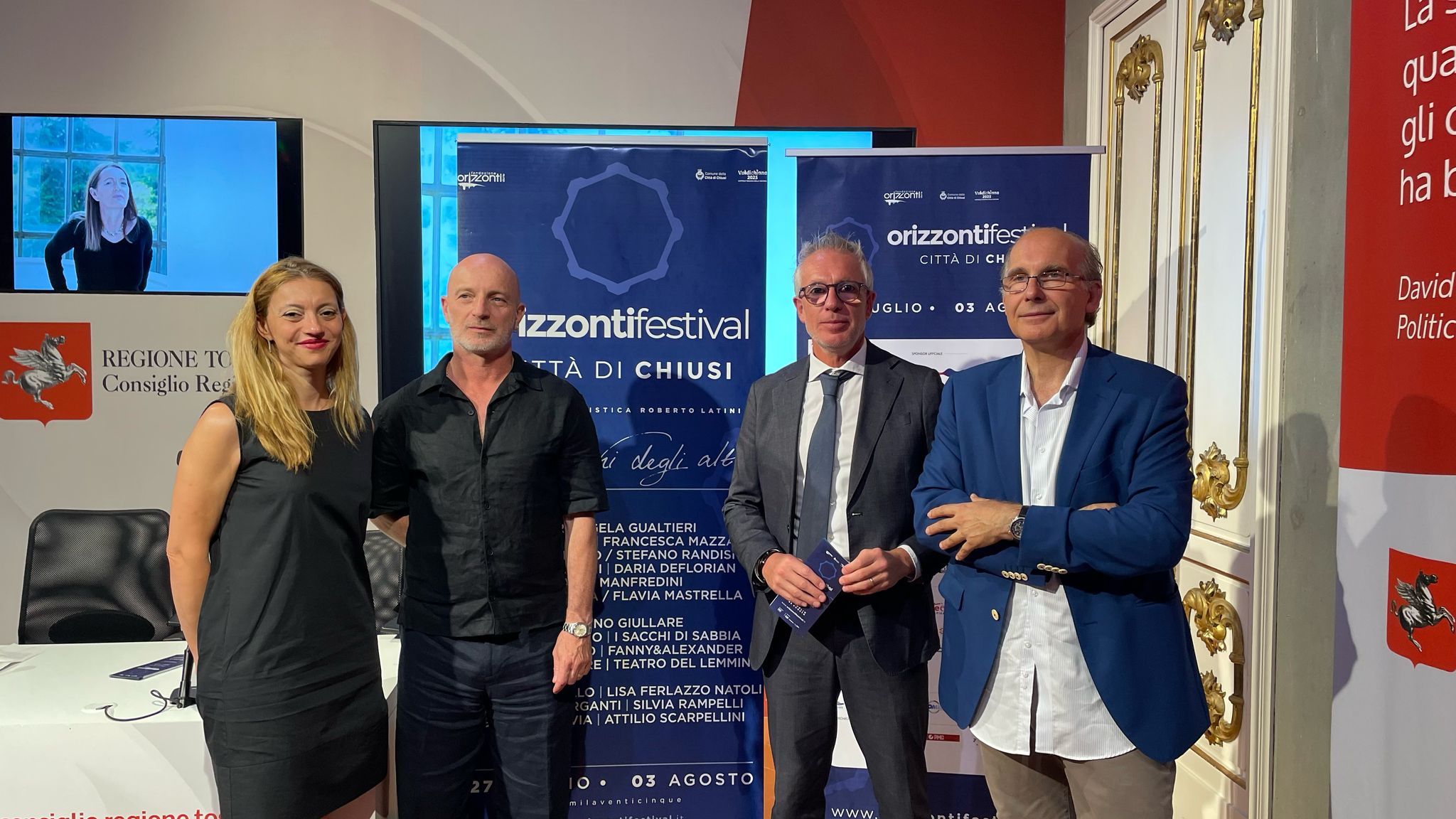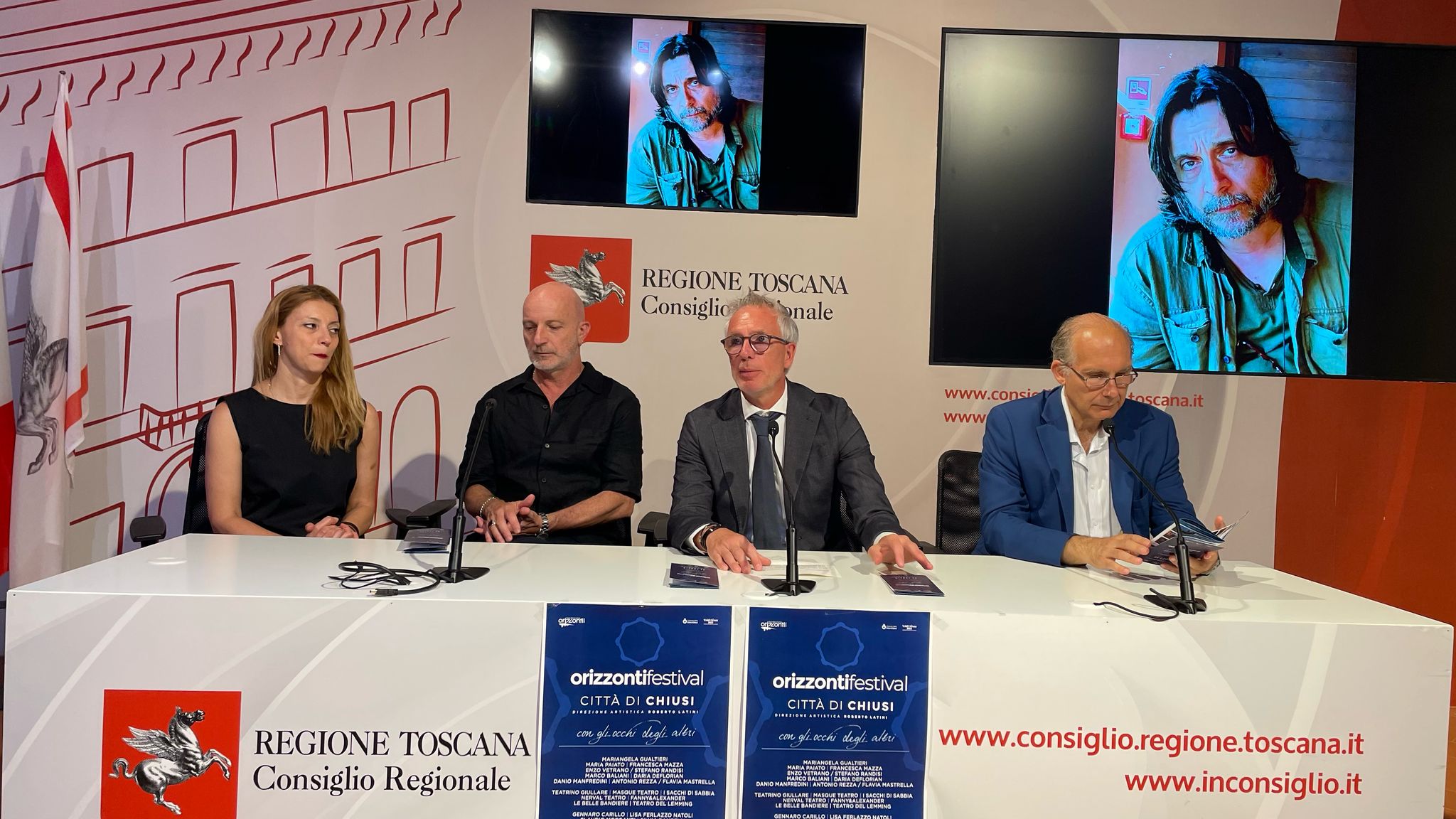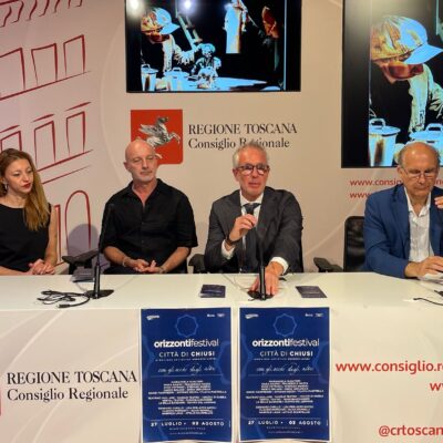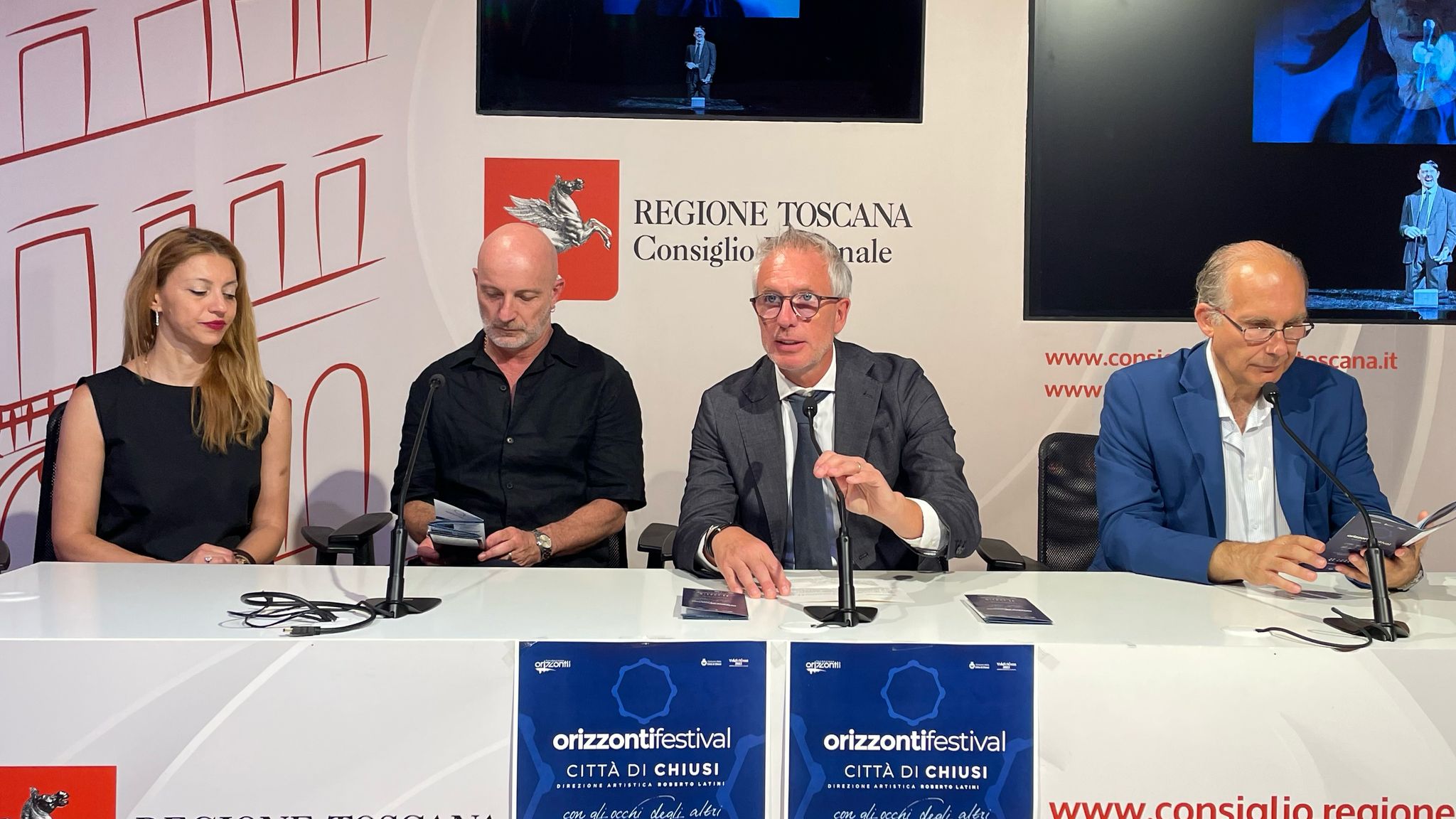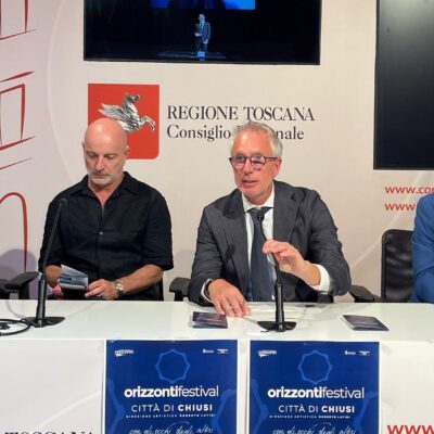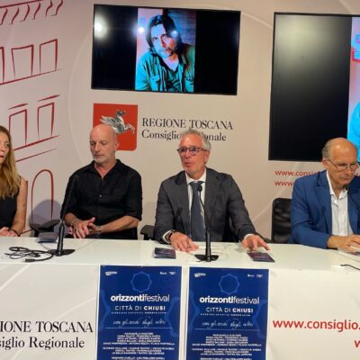 A dare il “la” alla conferenza stampa di presentazione della ventitreesima edizione, a palazzo del Pegaso, il vicepresidente del Consiglio regionale Stefano Scaramelli: “la città di Chiusi vive il suo splendore durante le giornate del Festival, la Fondazione Orizzonti si rinnova ed ogni anno propone un festival che cresce, che si migliora, che presenta una proposta culturale di altissimo livello e valore – ha affermato – e personalmente c’è anche un pezzo di cuore, poiché ho avuto modo di far nascere questa Fondazione quando ero Sindaco e vederla proseguire la propria attività, promuoversi ed avere anche il lustro di essere oggi presentata a livello regionale e nazionale, è davvero anche una grande soddisfazione per chi ha creduto in questa iniziativa in tempi non sospetti”.