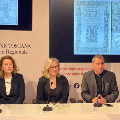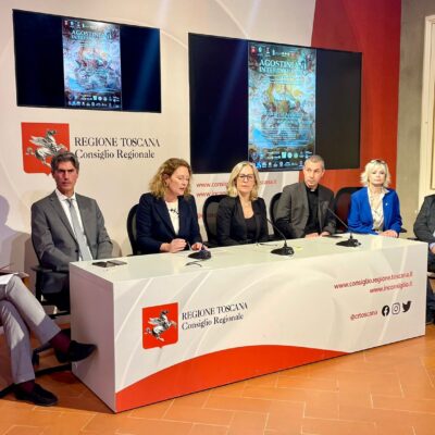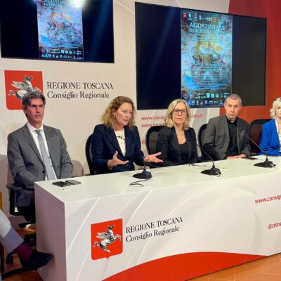Firenze – In una conferenza stampa al Media Center Sassoli è stata presentata ‘Agostiniani in terra di Siena’, mostra di incisioni, libri antichi e acquerelli. Sono intervenuti Federica Fratoni consigliera regionale e membro dell’Ufficio di Presidenza, Elena Rosignoli consigliera regionale, i sindaci Michele Angiolini (Montepulciano) e Giacomo Grazi (Torrita di Siena), la vicesindaca di Asciano Lucia Angelini, Don Domenico Zafarana presidente Istituto valorizzazione abazie storiche della Toscana, Fausto Rossi presidente Società bibliografica toscana, Stefano Selleri presidente del Rotary.