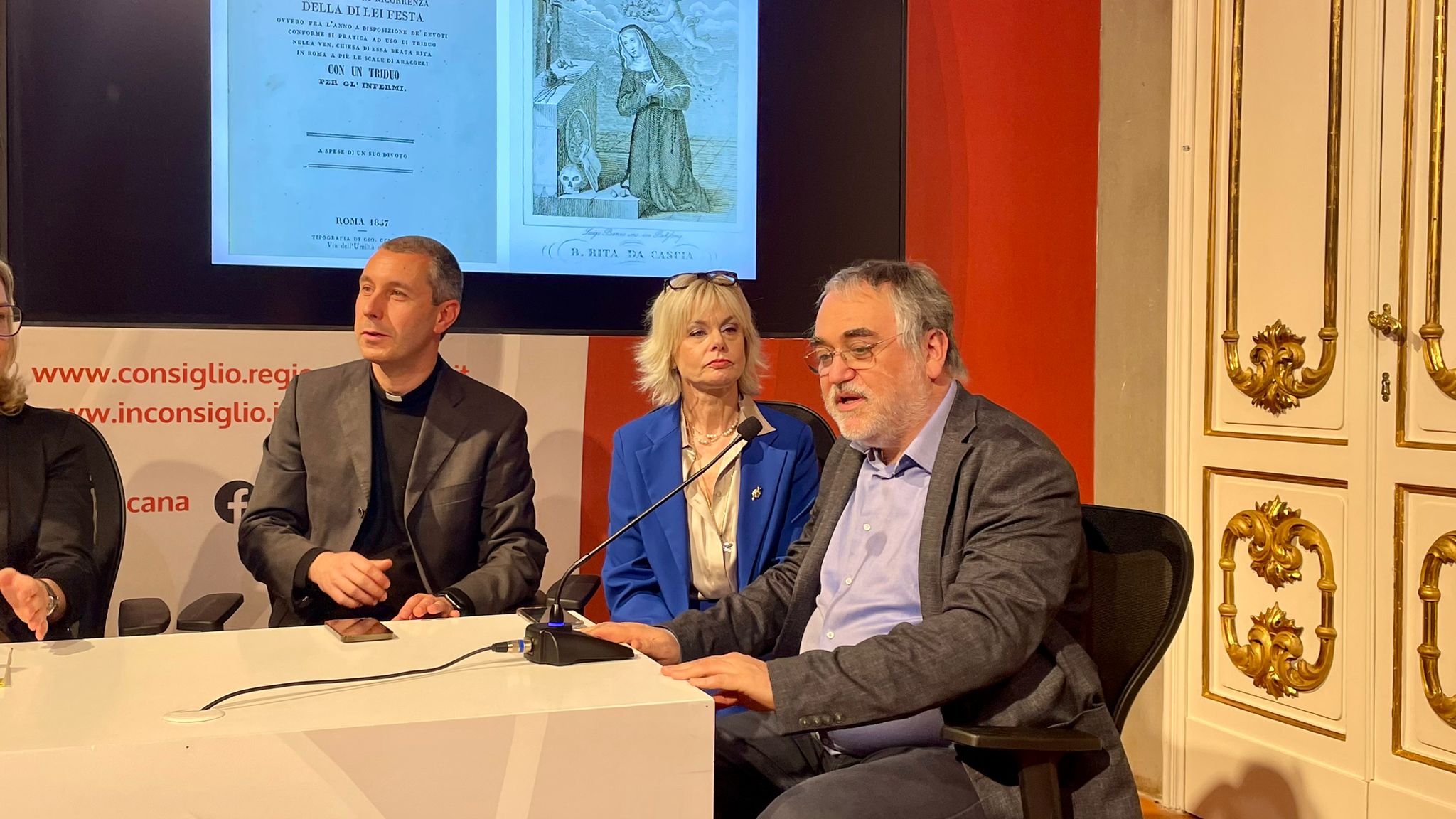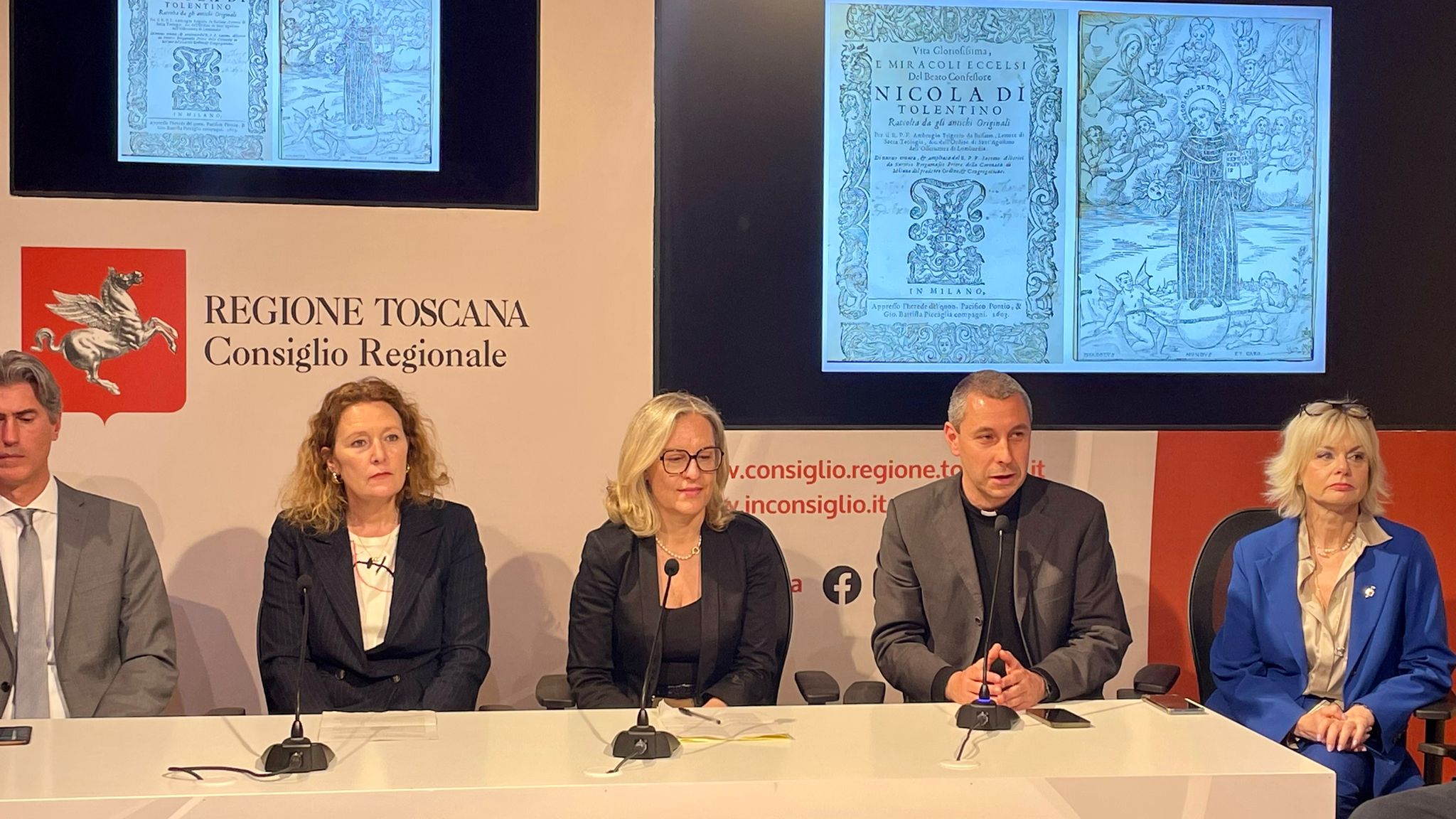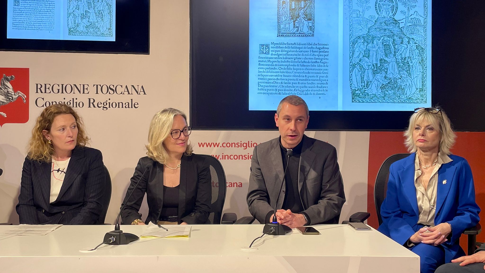 Firenze – In una conferenza stampa al Media Center Sassoli è stata presentata ‘Agostiniani in terra di Siena’, mostra di incisioni, libri antichi e acquerelli. Sono intervenuti Federica Fratoni consigliera regionale e membro dell’Ufficio di Presidenza, Elena Rosignoli consigliera regionale, i sindaci Michele Angiolini (Montepulciano) e Giacomo Grazi (Torrita di Siena), la vicesindaca di Asciano Lucia Angelini, Don Domenico Zafarana presidente Istituto valorizzazione abazie storiche della Toscana, Fausto Rossi presidente Società bibliografica toscana, Stefano Selleri presidente del Rotary.