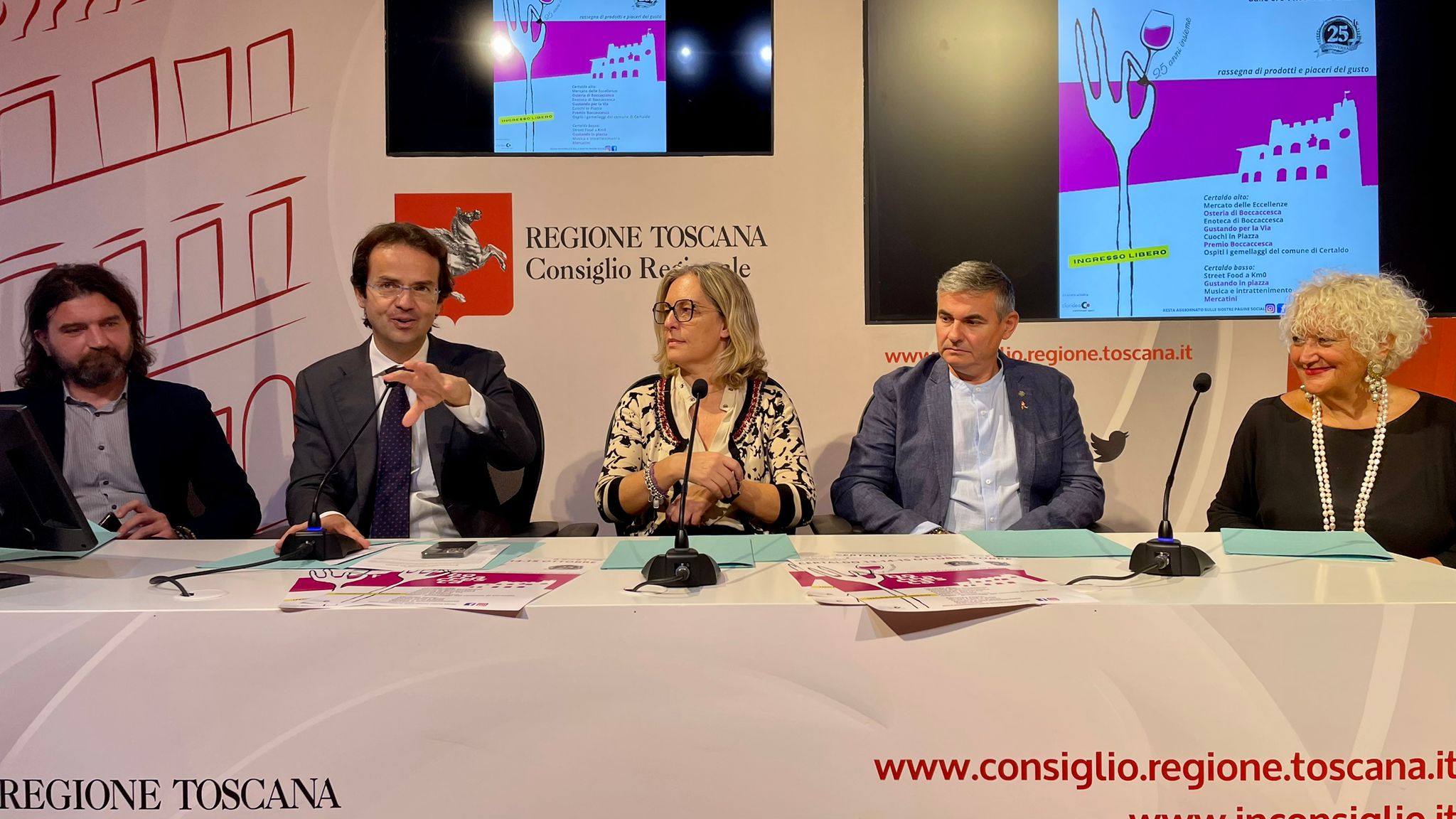 “Devo dire come Consiglio regionale che è un piacere ospitare la conferenza stampa di presentazione della 25esima edizione di Boccaccesca – ha detto Federica Fratoni consigliera regionale – che rappresenta al meglio la nostra regione con i suoi borghi straordinari e le nostre eccellenze enogastronomiche. Certaldo propone sempre iniziative di grande livello qualitativo ed è un territorio molto legato alla nostra storia, alle tradizioni, alla Toscana diffusa che andiamo a promuovere in Italia e all’estero. Spero che anche questa edizione abbia il successo di pubblico e turisti che merita.”