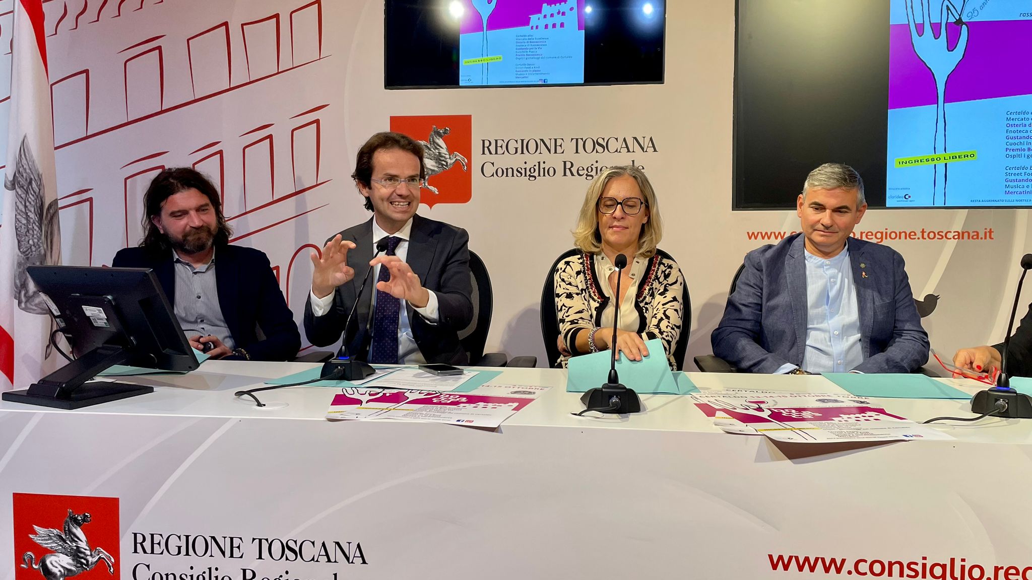 In una conferenza stampa presenta la rassegna dedicata alle eccellenze enogastronomiche e artigianali italiane con gli interventi di Federica Fratoni consigliera regionale dell’Ufficio di presidenza e Enrico Sostegni consigliere regionale