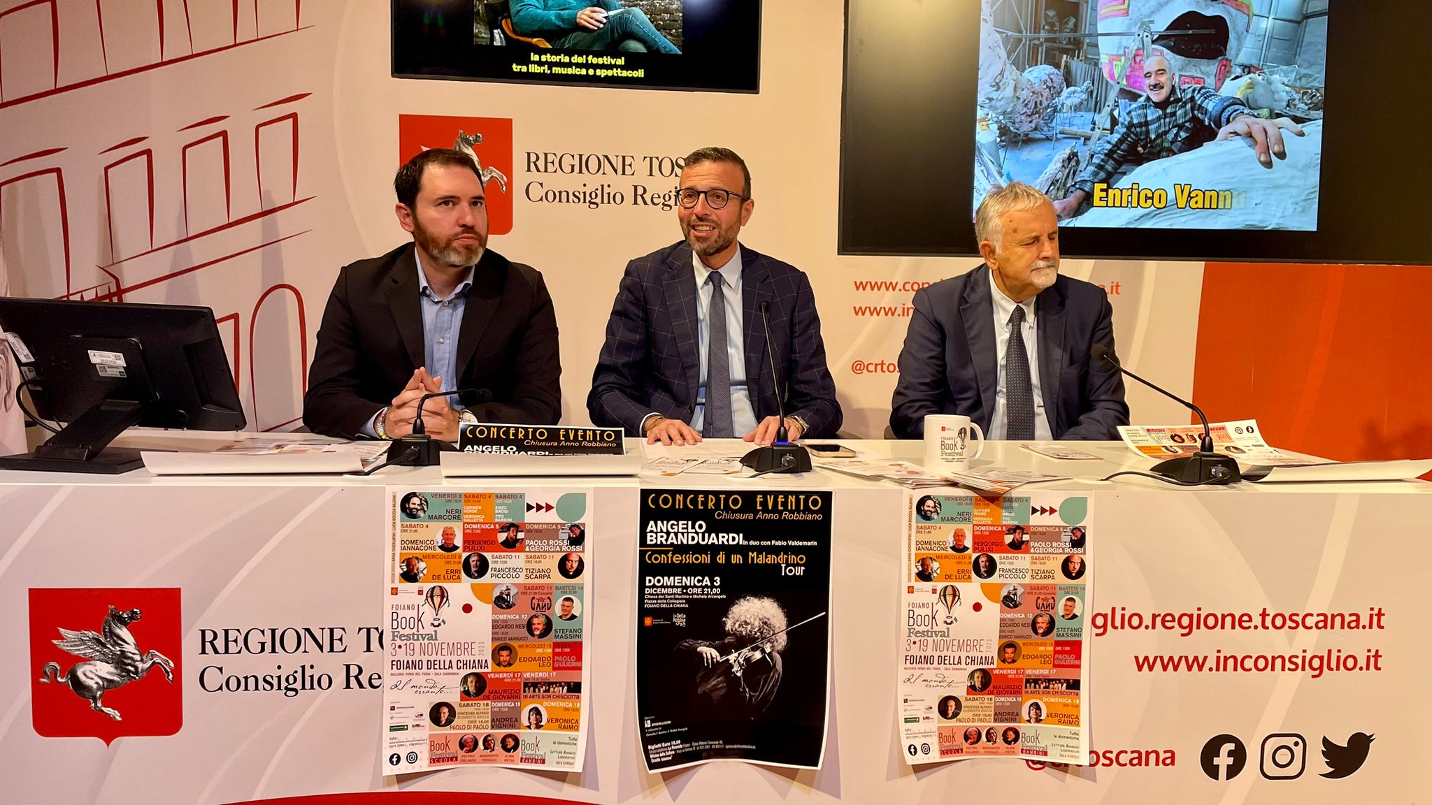 Alla conferenza stampa sono intervenuti il presidente dell’Assemblea legislativa Antonio Mazzeo, il consigliere regionale Vincenzo Ceccarelli, il vicesindaco di Foiano Jacopo Franci, i direttori artistici del Festival Anna Cherubini e Luca Roccia Baldini.