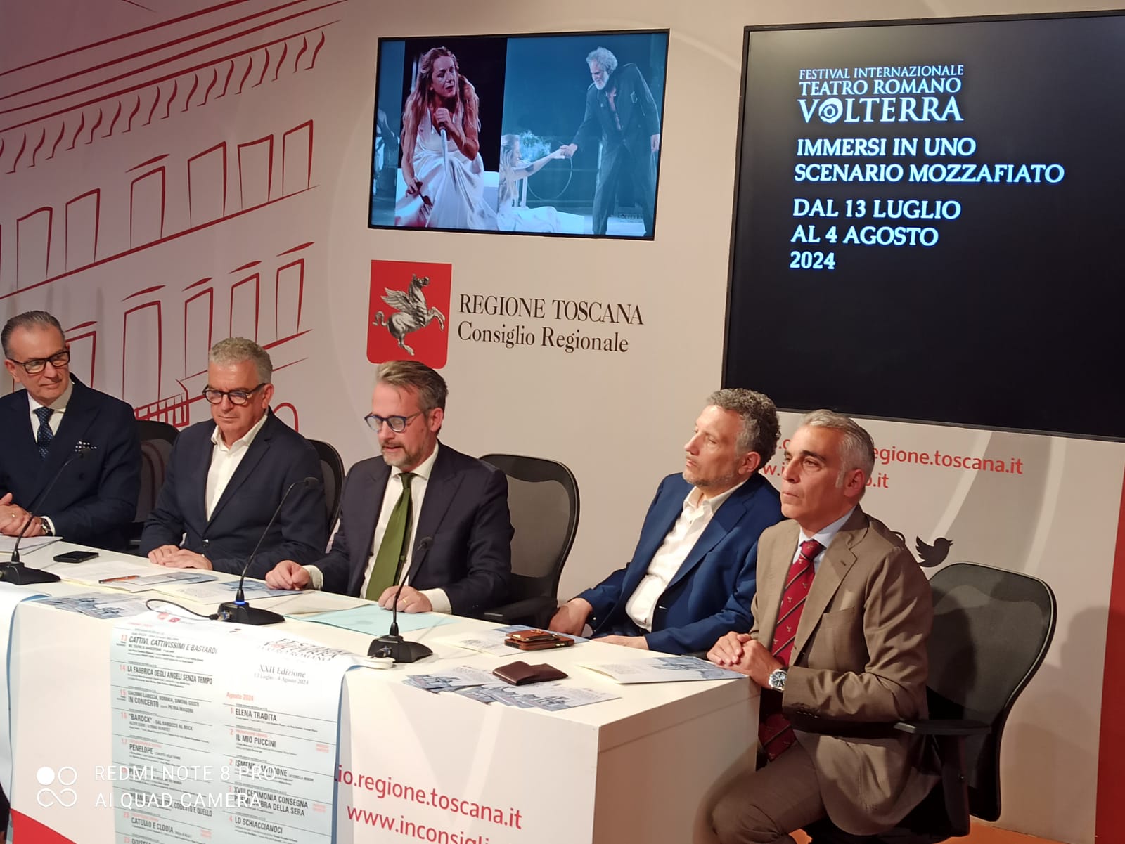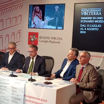 Firenze – È stato presentato al Media Center Sassoli, in una conferenza stampa, il  Festival internazionale Teatro Romano di Volterra. Il programma della XXII edizione, ricco e variegato di spettacoli, concerti, presentazioni di libri e incontri, ambientati in una cornice archeologica unica nel suo genere, è in calendario dal 13 luglio al 4 agosto. All’incontro è intervenuto il vicepresidente del Consiglio regionale Marco Casucci, il consigliere regionale Diego Petrucci, segretario dell’Ufficio di presidenza dell’Assemblea toscana; il sindaco di Volterra, Giacomo Santi; il consigliere della Fondazione Cassa di risparmio di Volterra, Alessandro Salvini e il direttore artistico del Festival Simon Domenico Migliorini.
