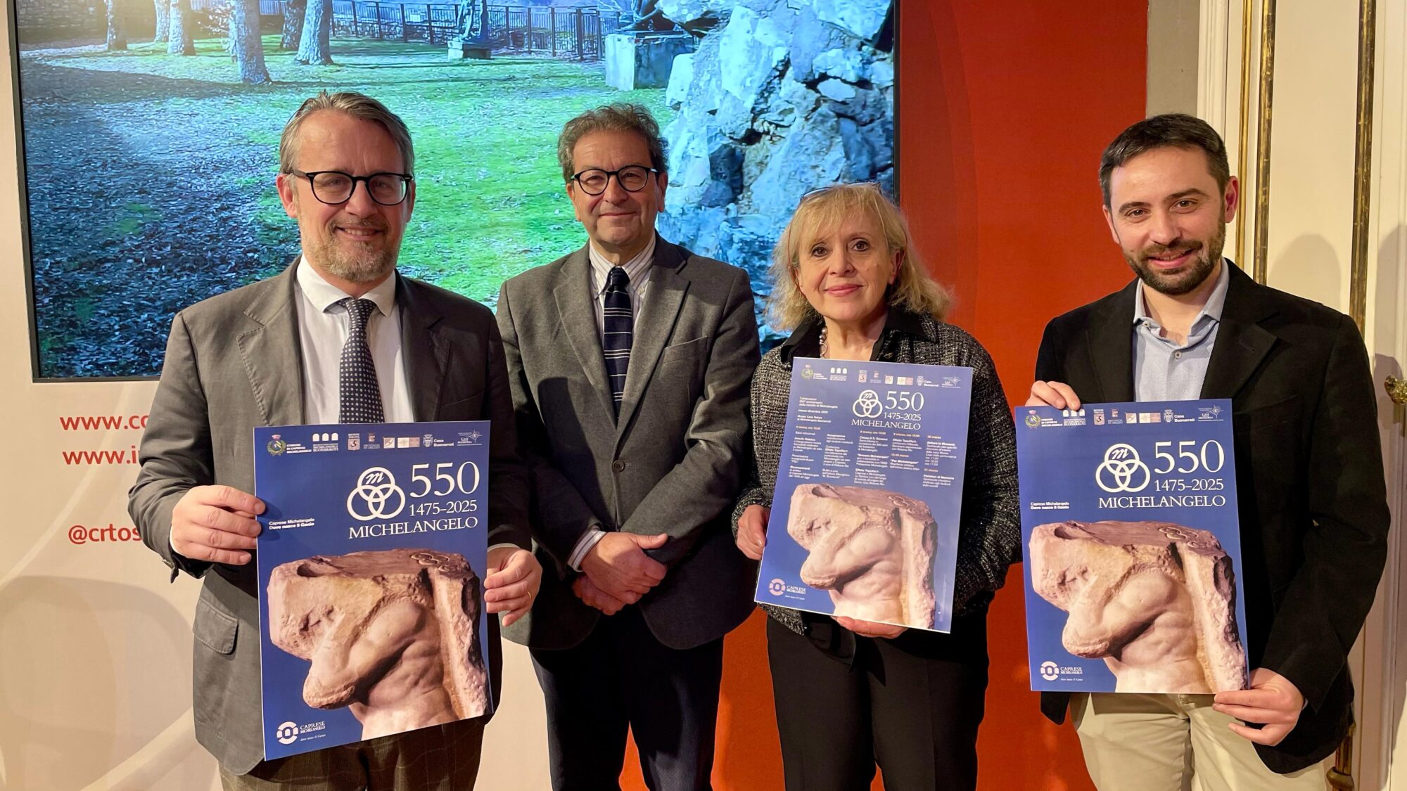 A partire dalle nuove generazioni, come evidenziato da Marco Capaccioli, vicepresidente dell’associazione nazionale Case della Memoria: “Abbiamo dato il nostro contributo con due iniziative particolari, il 30 e 31 marzo, la prima ‘Abitare la Memoria’, uno spettacolo itinerante all’interno della casa Museo, l’altra con uno spettacolo interattivo dedicato agli studenti delle scuole, primi portatori di memoria con sguardo al futuro, che saranno poi loro ad accompagnare i genitori al museo, facendo da guida”. “Con questi eventi diamo anche fiato al turismo del terzo millennio, riusciamo a far scoprire destinazioni diverse dalle grandi città – ha sottolineato – e per questo importante anniversario abbiamo anche preparato un logo: tre cerchi incrociati con una M, simbolo che Michelangelo lasciava impresso sul marmo”.