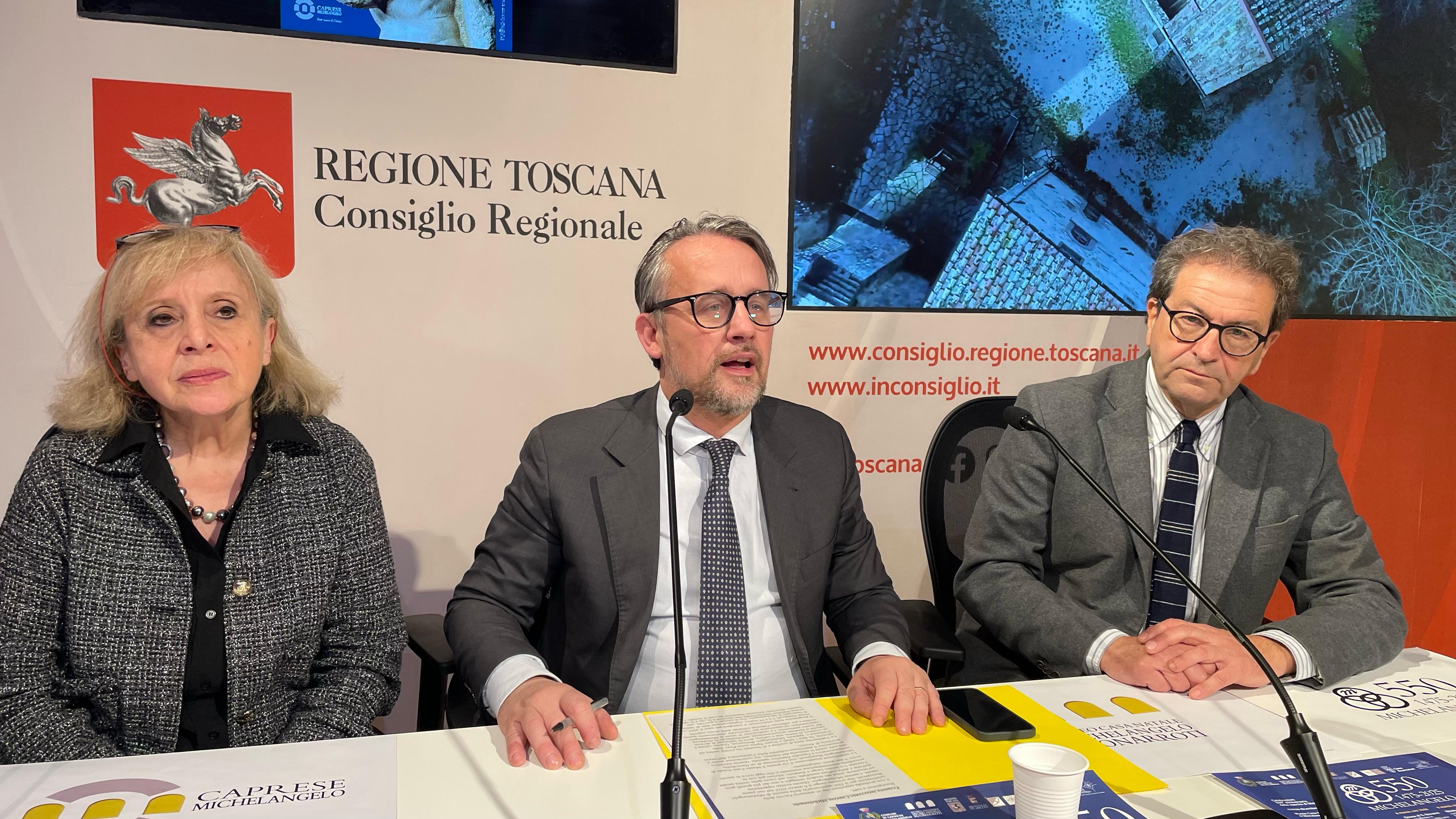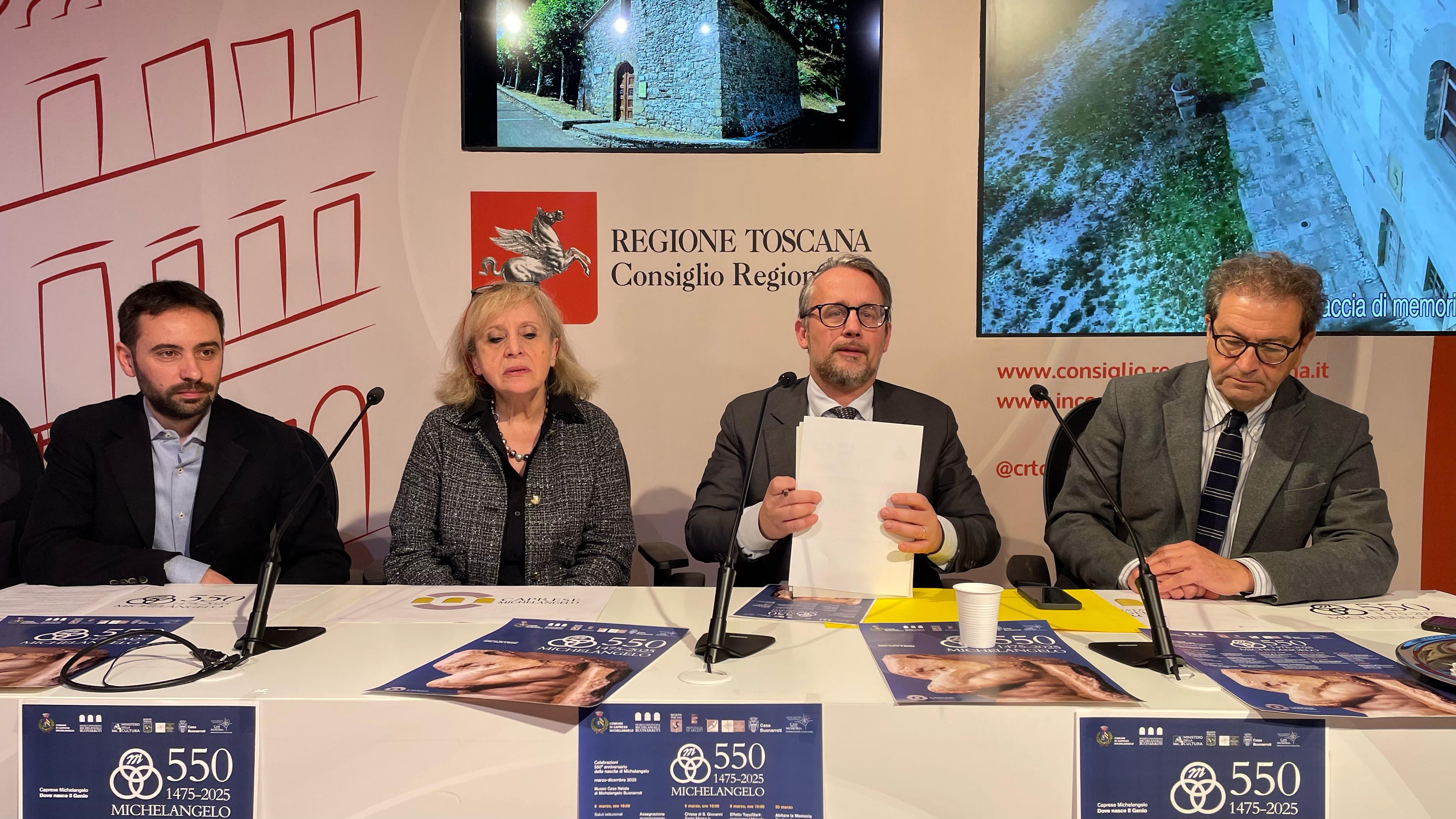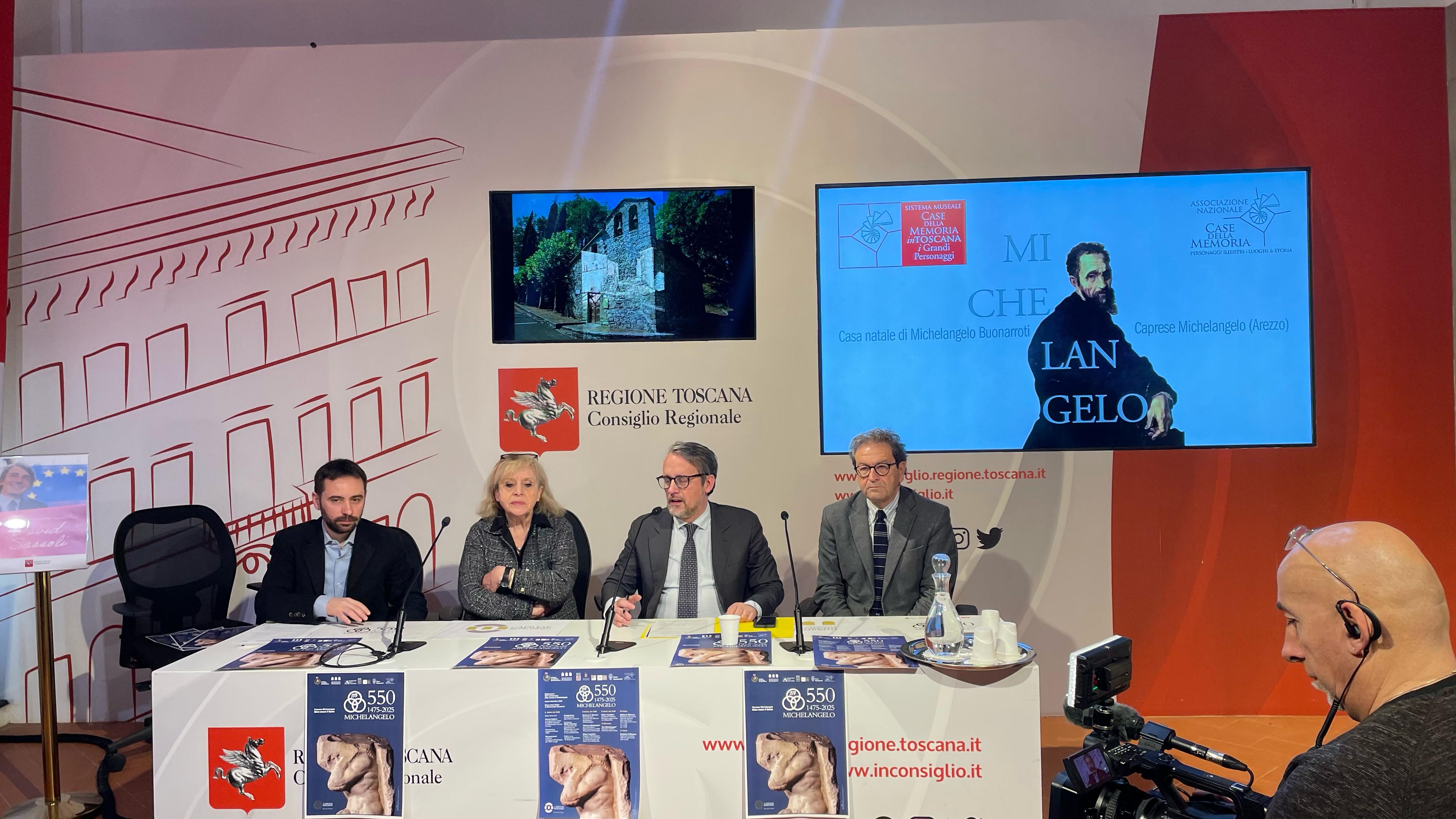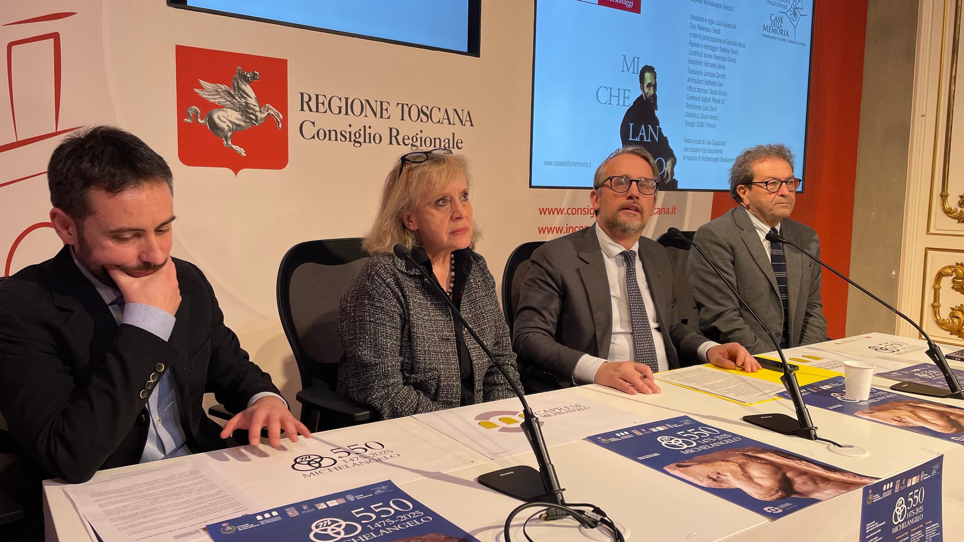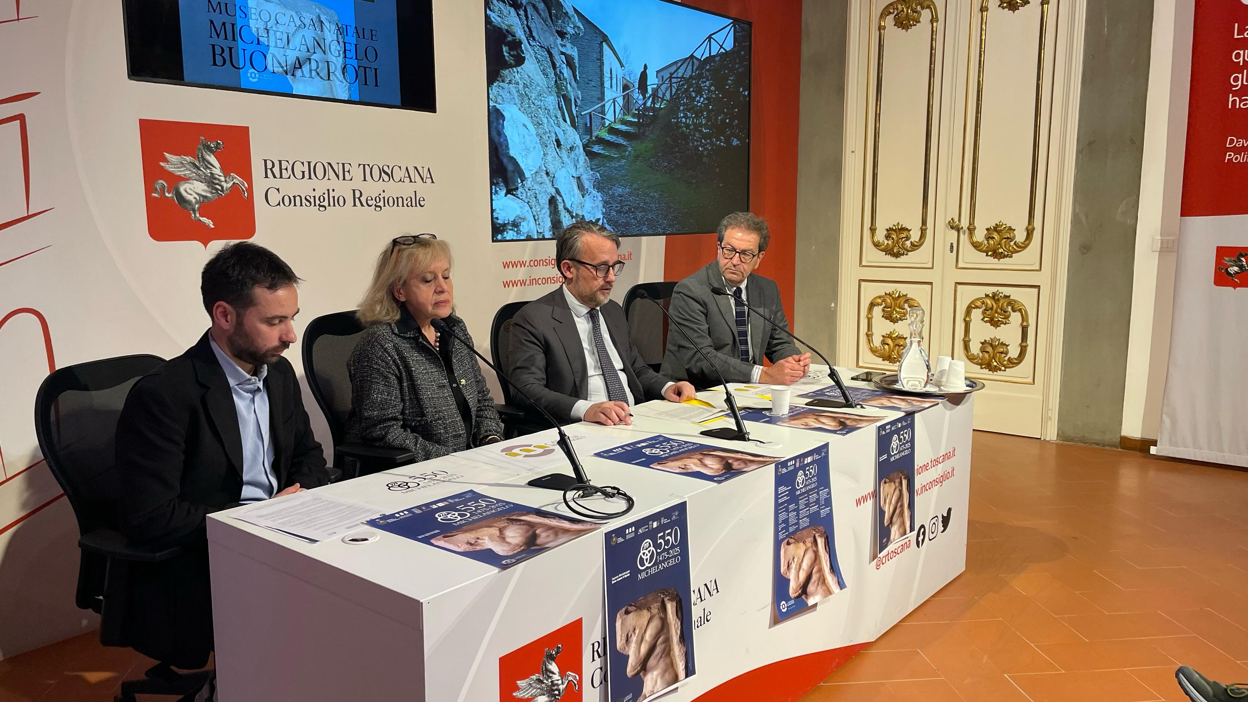 Presentate le iniziative a palazzo del Pegaso. Il vicepresidente del Consiglio Marco Casucci: “Invito a partecipare attivamente alle celebrazioni e a diffondere l’importanza di questo anniversario, affinché il ricordo di Michelangelo Buonarroti continui a ispirare le future generazioni e a testimoniare l’eccellenza della nostra terra”