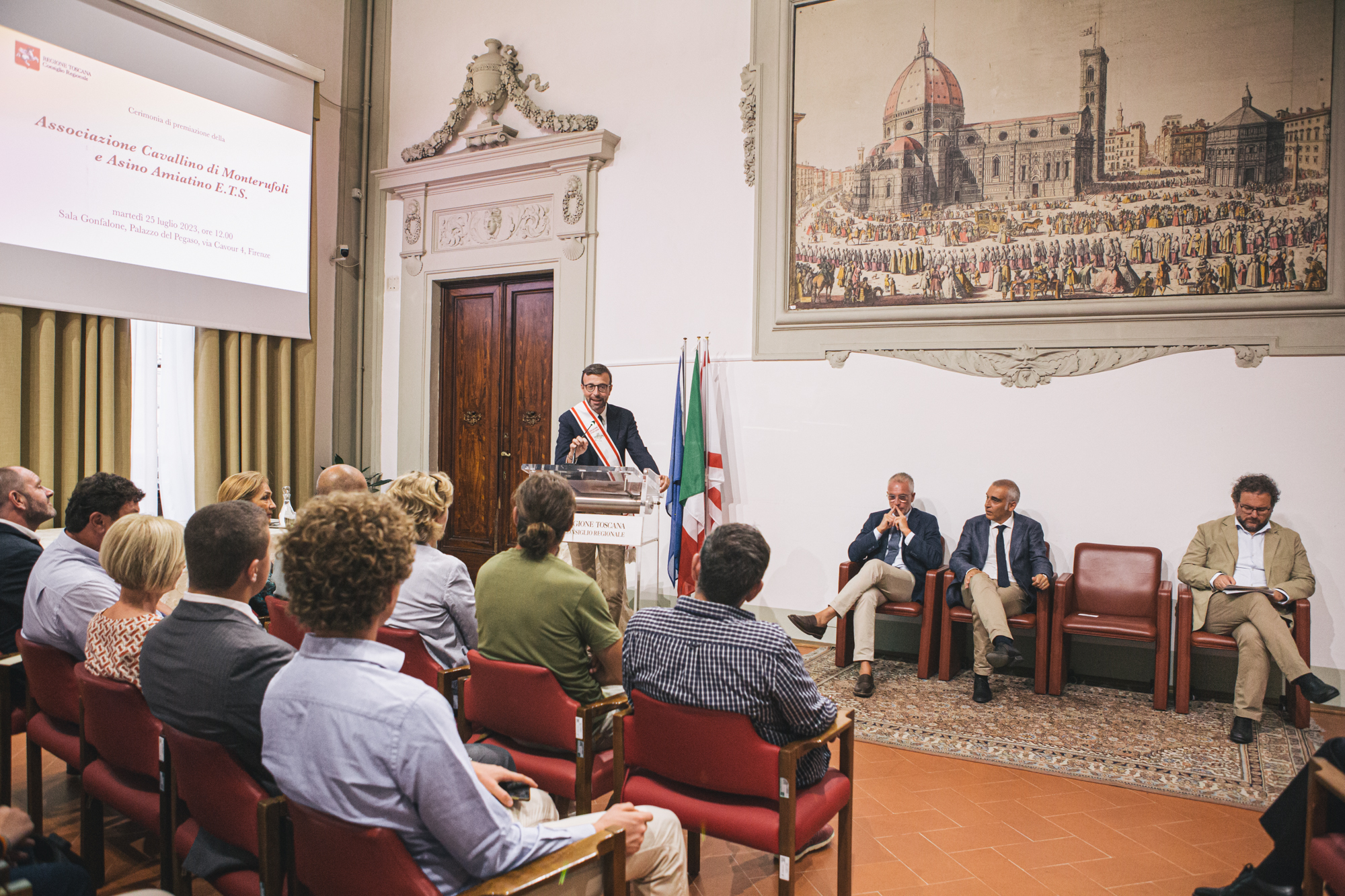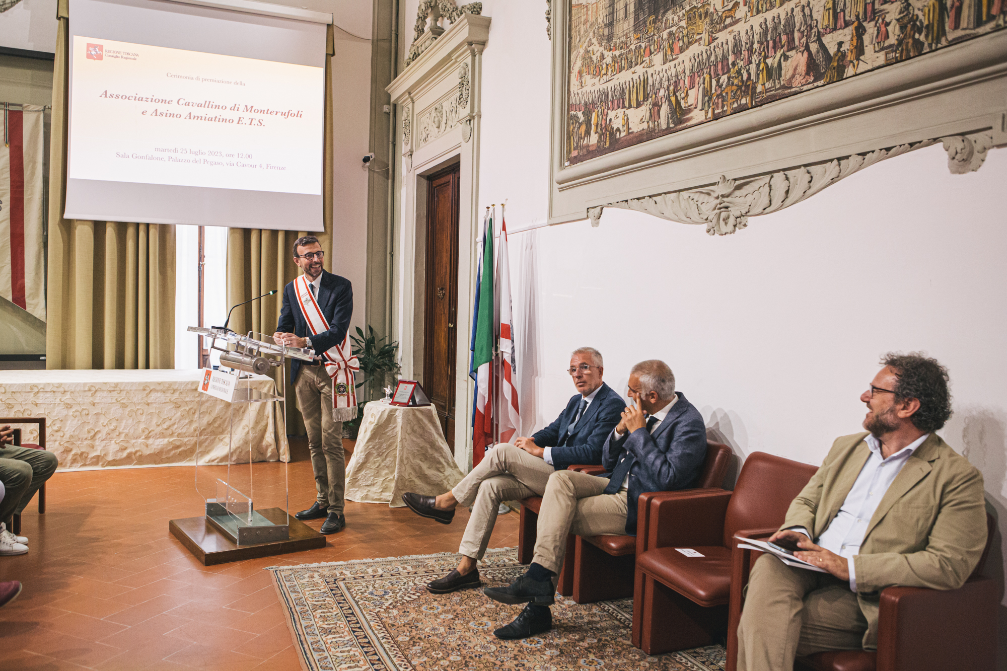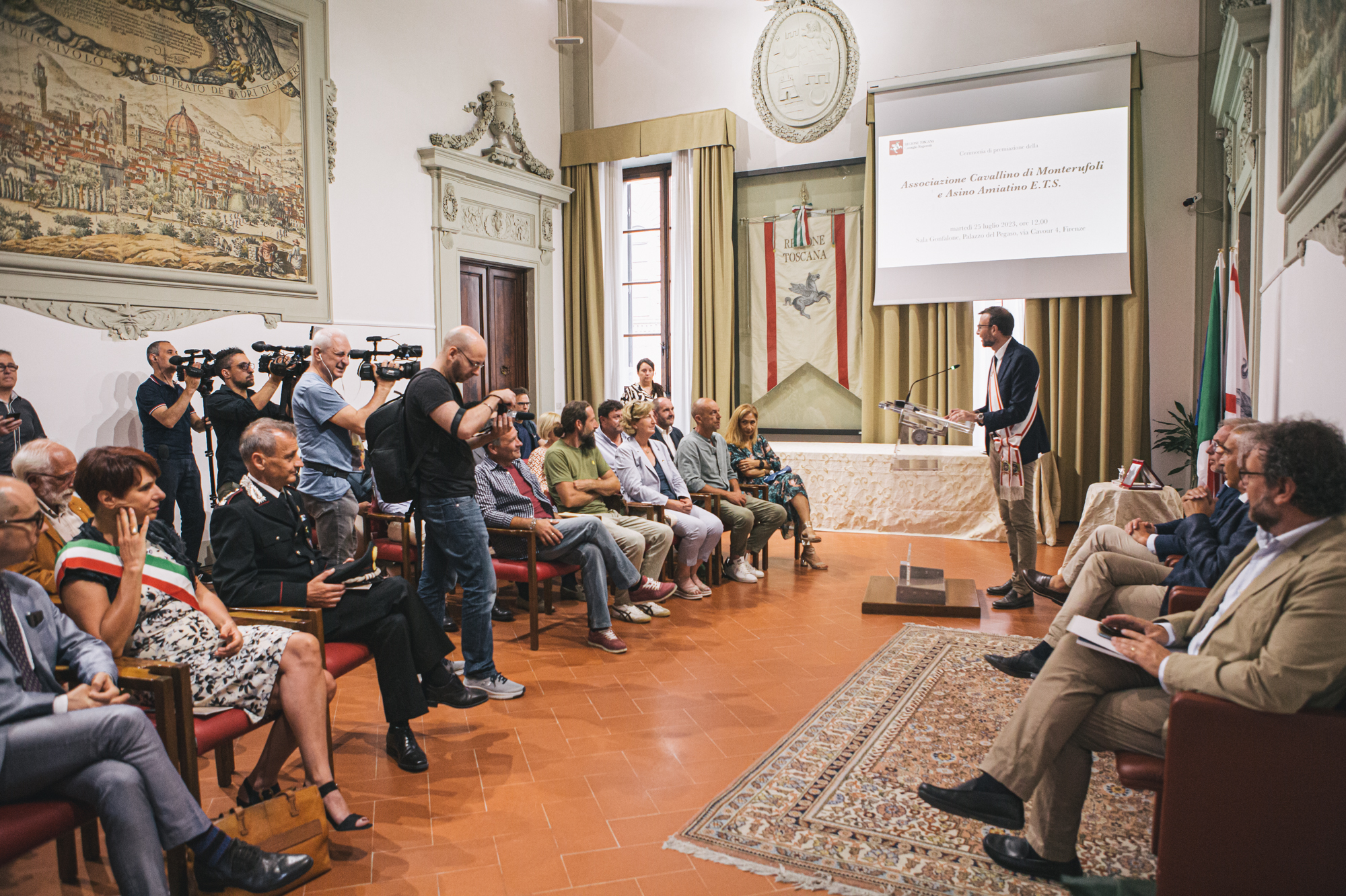 “Oggi siamo qui per applaudire, per riconoscere l’impegno di un gruppo di persone che si sono riunite all’interno dell’associazione dedicata al Cavallino di Monterufoli e all’Asino amiatino”, ha dichiarato il presidente Antonio Mazzeo in apertura della cerimonia. “Voglio raccontare perché stiamo premiando chi lavora per salvaguardare, incrementare e far conoscere questa razza equina. A Pomarance, al Centro ippico comunale Santa Barbara, c’è un nucleo di persone che ha letteralmente salvato il cavallino di Monterufoli, adottando un ultimo gruppo di fattrici che vivevano allo stato brado nel bosco di Monterufoli, per far continuare a vivere l’ultimo ceppo nella sua terra di origine. È una cosa bellissima, affascinante – ha aggiunto Mazzeo –, una cosa di cui la Toscana deve andare orgogliosa. Il nostro è anche un premio alla Toscana diffusa, che s’impegna nel sostenere e riconoscere tante realtà, sostiene la biodiversità. Un premio alle nostre radici e alle nostre tradizioni”.