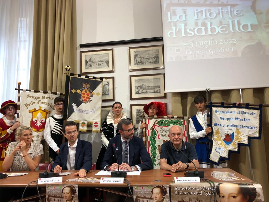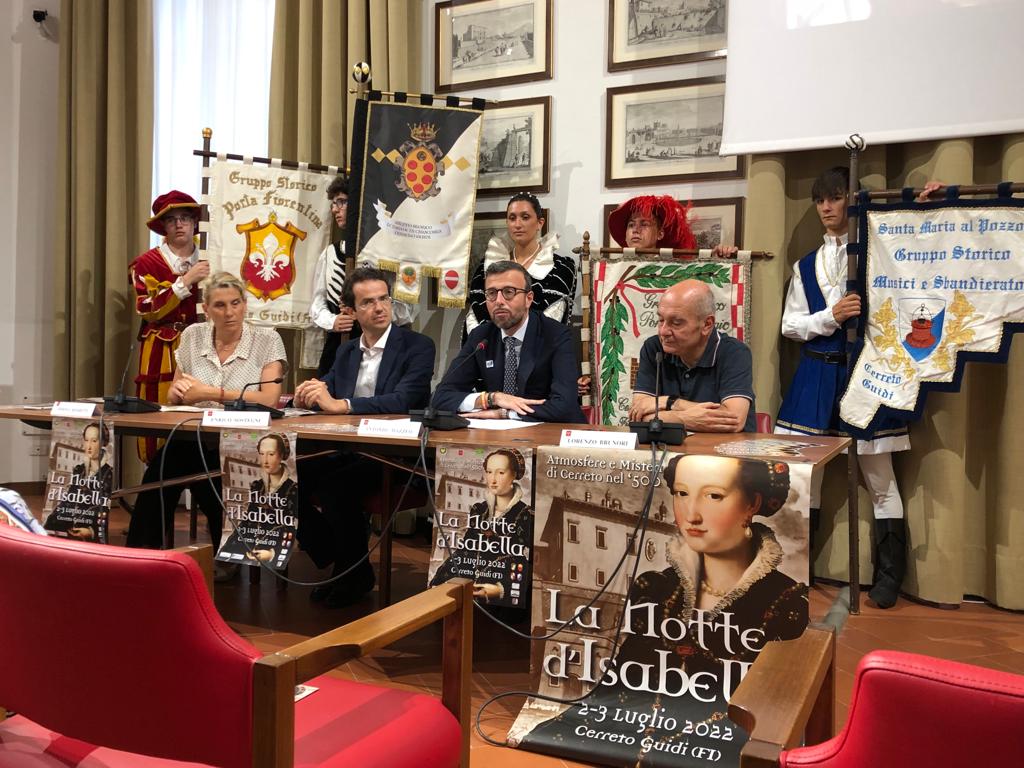 Chi visiterà il borgo mediceo in quei giorni si risveglierà nel luglio 1576 e sarà trasportato dal gran fermento del popolo intento a far festa per l’arrivo alla Villa Medicea di Isabella, figlia prediletta del Granduca Cosimo I. La rievocazione storica è organizzata dal comune di Cerreto Guidi e dall’associazione turistica Pro Loco, in collaborazione con l’associazione CCN ‘Buontalenti’, le contrade del Palio del Cerro, il polo museale della Toscana, la parrocchia di San Leonardo con il patrocinio della Regione Toscana, “ed è frutto di un grande lavoro di allestimento, di studio sui costumi, sugli spettacoli, sulla musica”, come ha ricordato Lorenzo Brunori, presidente della stessa Pro Loco Cerreto Guidi.