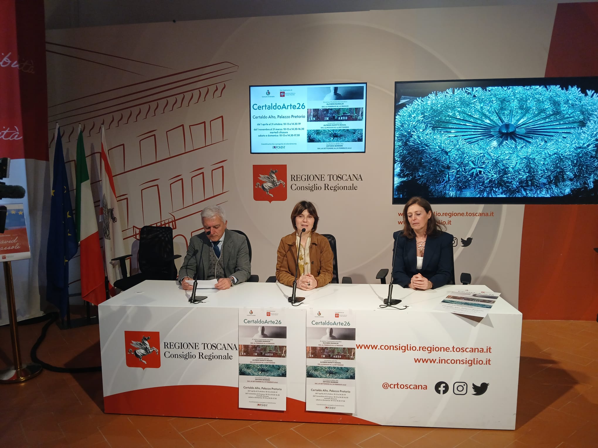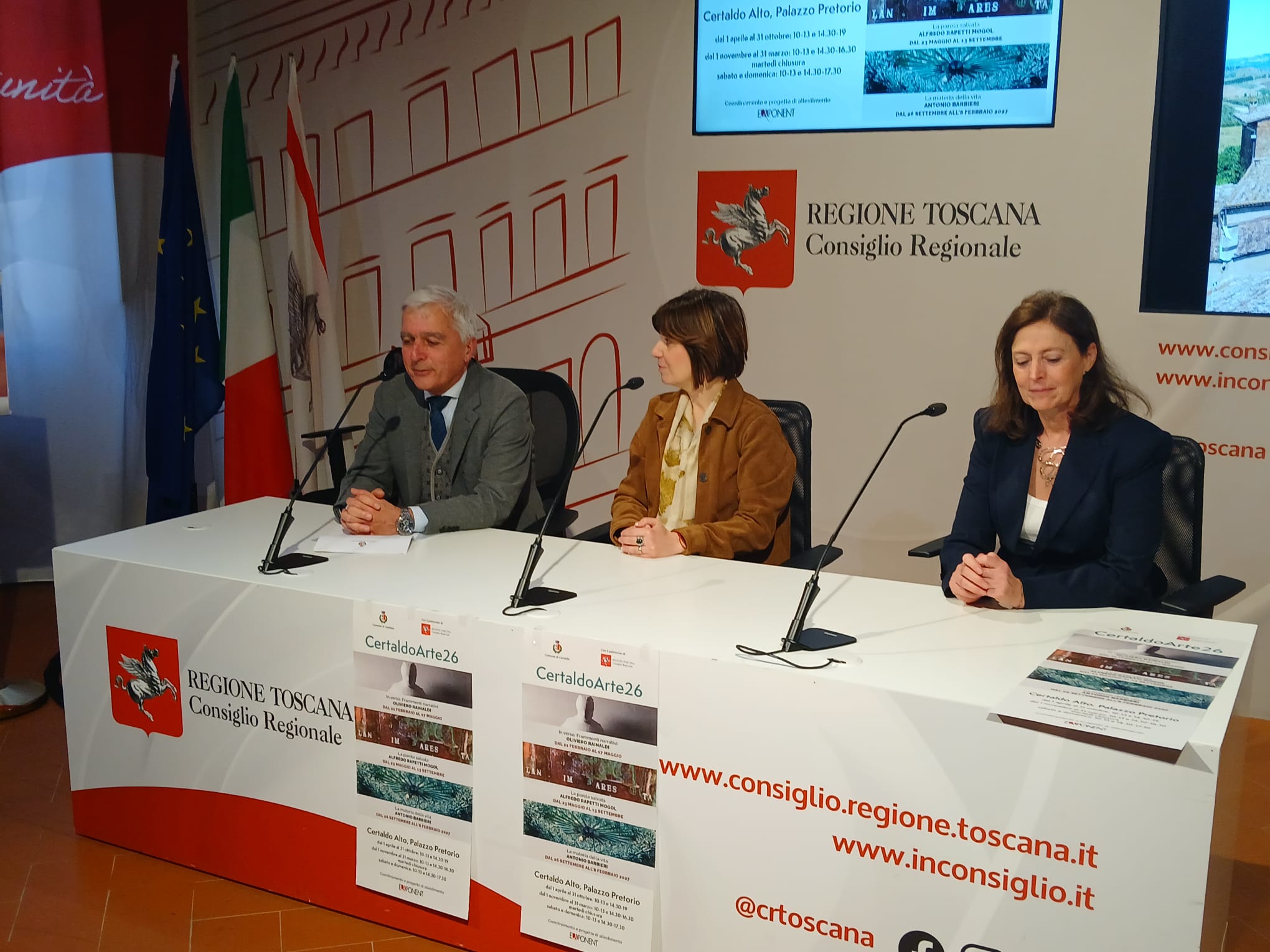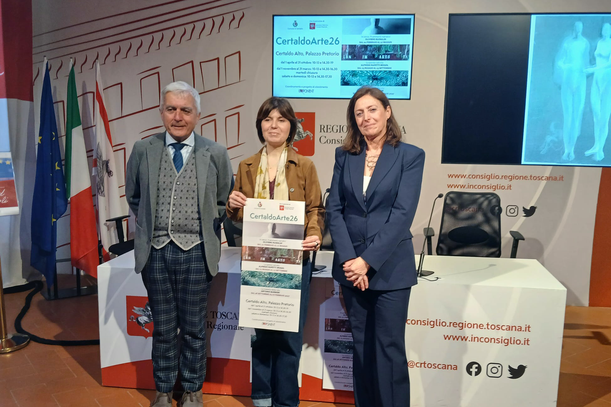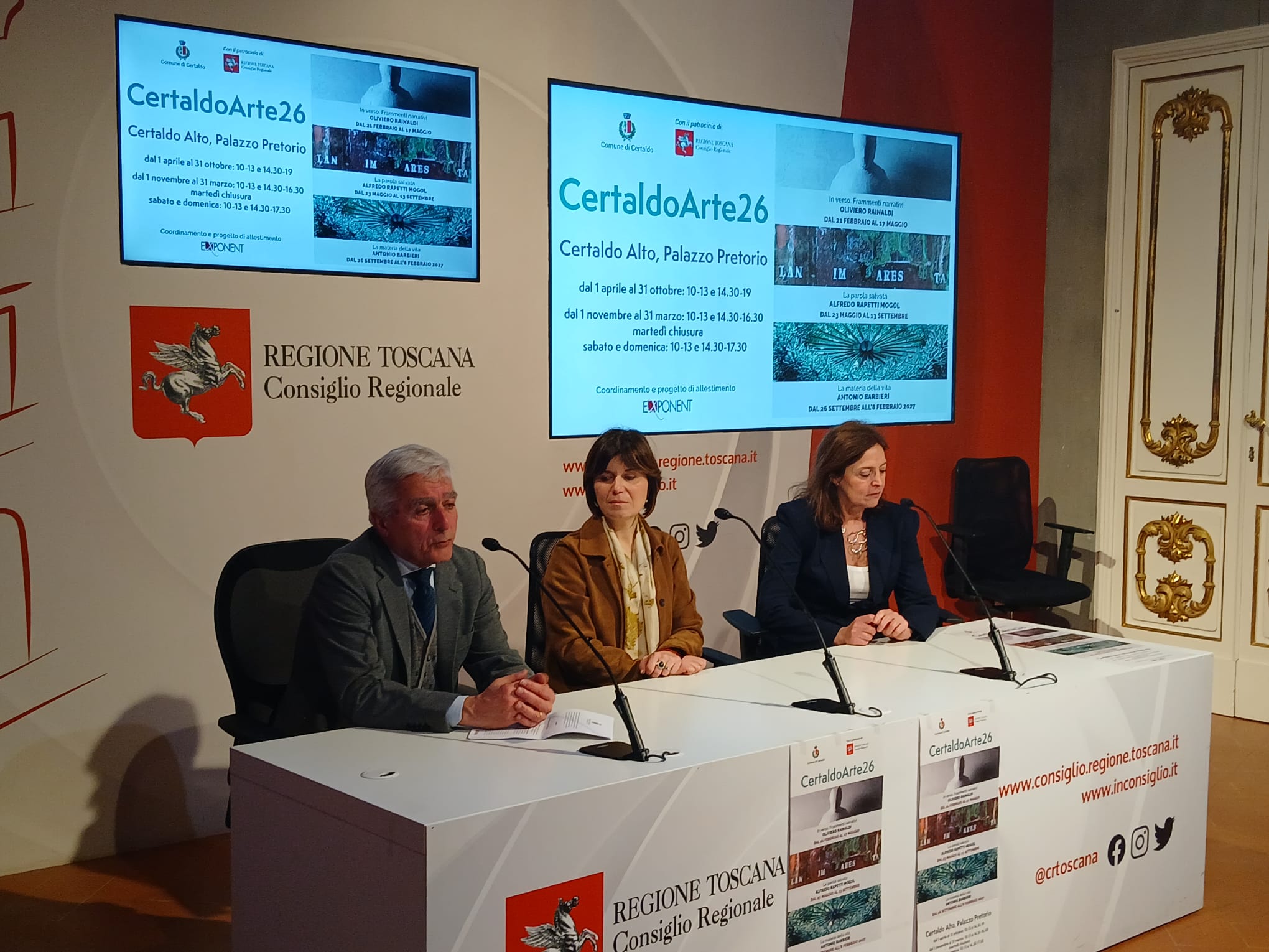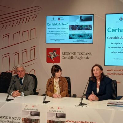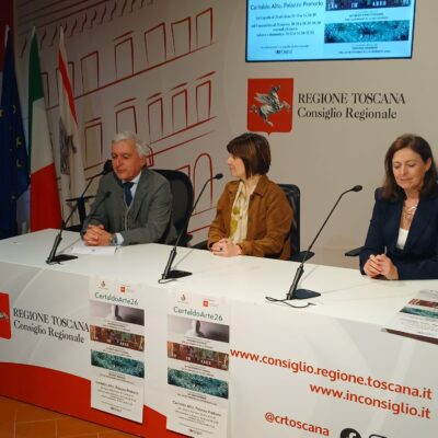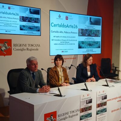Firenze – Dal 21 febbraio prossimo e fino all’8 febbraio 2027, tre mostre di arte contemporanea accoglieranno i visitatori del Palazzo Pretorio di Certaldo Alto. Si è tenuta questa mattina, venerdì 13 febbraio 2026 a palazzo del Pegaso, la conferenza stampa di presentazione di ‘CertaldoArte26’, l’evento espositivo che presenterà al pubblico le opere di tre artisti: Oliviero Rainaldi, Alfredo Rapetti Mogol e Antonio Barbieri. Sono intervenuti la consigliera regionale Brenda Barnini, il sindaco di Certaldo, Giovanni Campatelli e Francesca Parri, organizzatrice e coordinatrice del progetto espositivo per Exponent. La presidente del Consiglio regionale, Stefania Saccardi, ha inviato un messaggio di saluto.