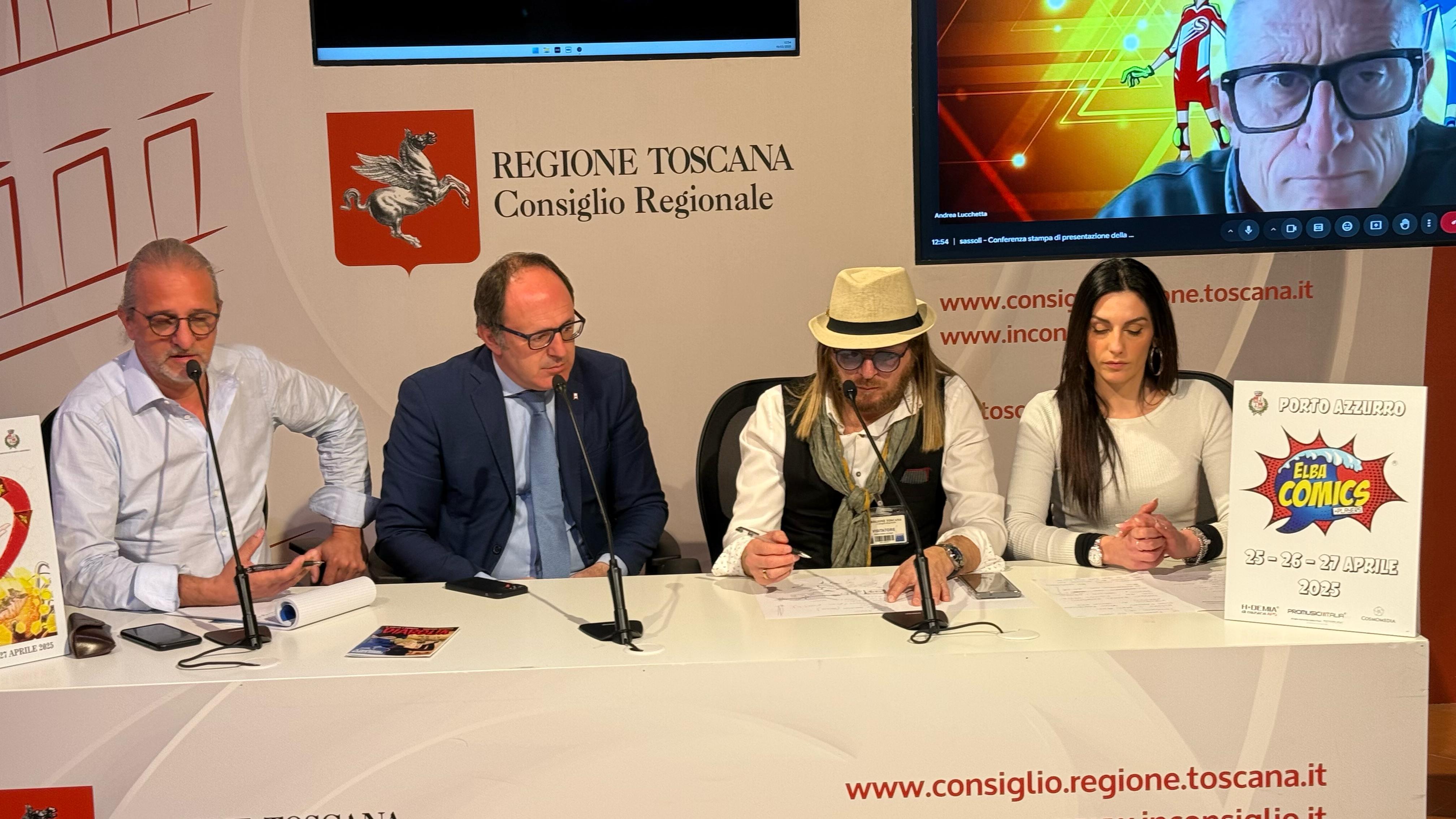 Presentata a palazzo del Pegaso la prima edizione del format, in programma a Porto Azzurro dal 25 al 27 aprile 2025. Il consigliere regionale Marco Landi: “Format basato sulla condivisione e la passione per il fumetto dove possiamo ritrovare lo spirito dell’isola ma anche la sua storia”