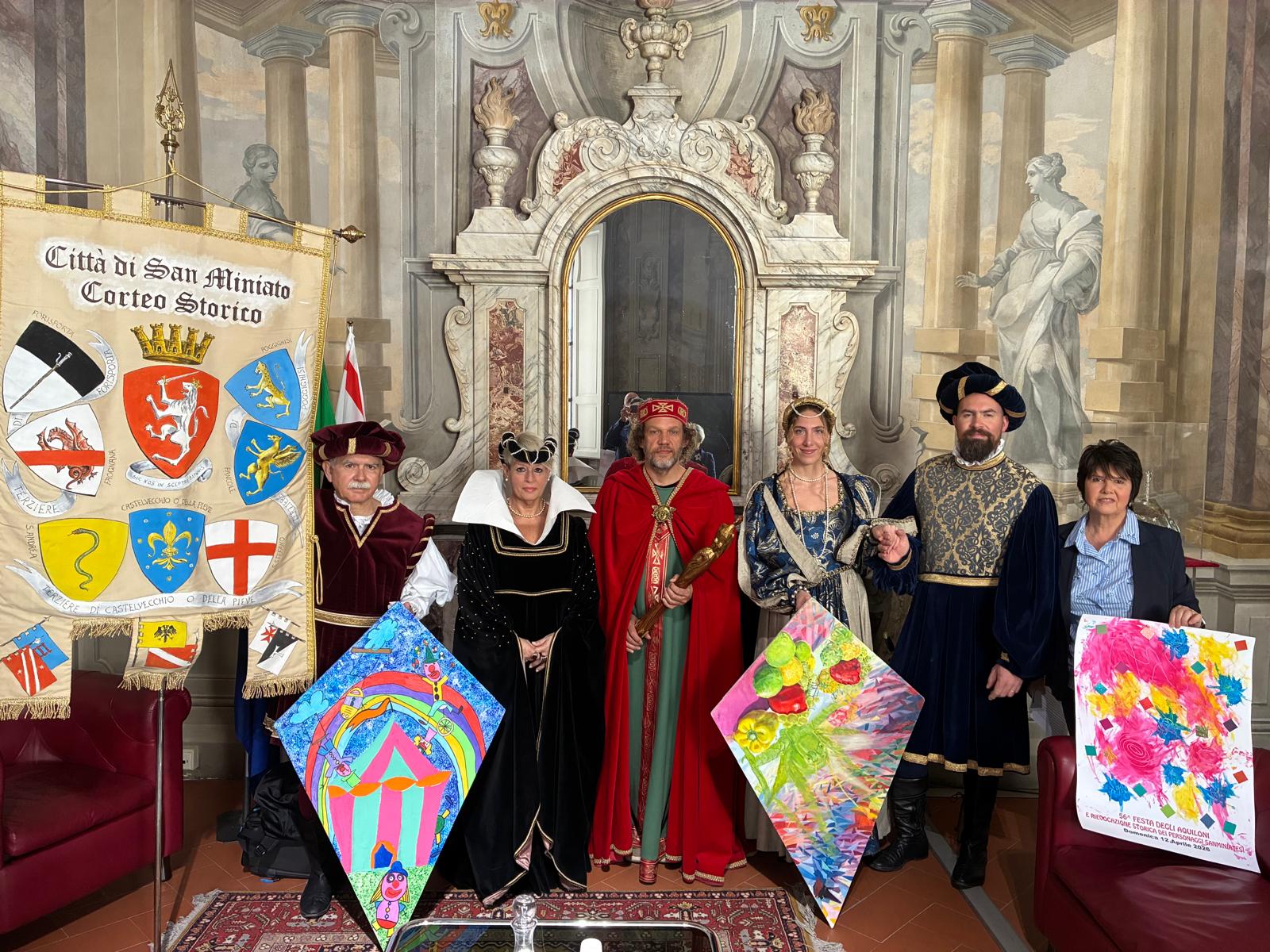 “La nostra – ha spiegato Siriana Giantini, presidente del Comitato Manifestazioni Popolari di San Miniato – è un’associazione che ormai ha quasi sessant’anni. Il momento più importante di questa festa è sicuramente l’uscita del Corteo storico. Corteo che ha la prerogativa di far rivivere per le vie e le piazze che portano i loro nomi i personaggi che nel corso della storia hanno vissuto o hanno avuto a che fare in qualche maniera con San Miniato. Si va dal Medioevo fino ad arrivare a Napoleone. Gli aquiloni saranno poi protagonisti per tutta la giornata e sono fatti rispettando le vecchie tradizioni”.