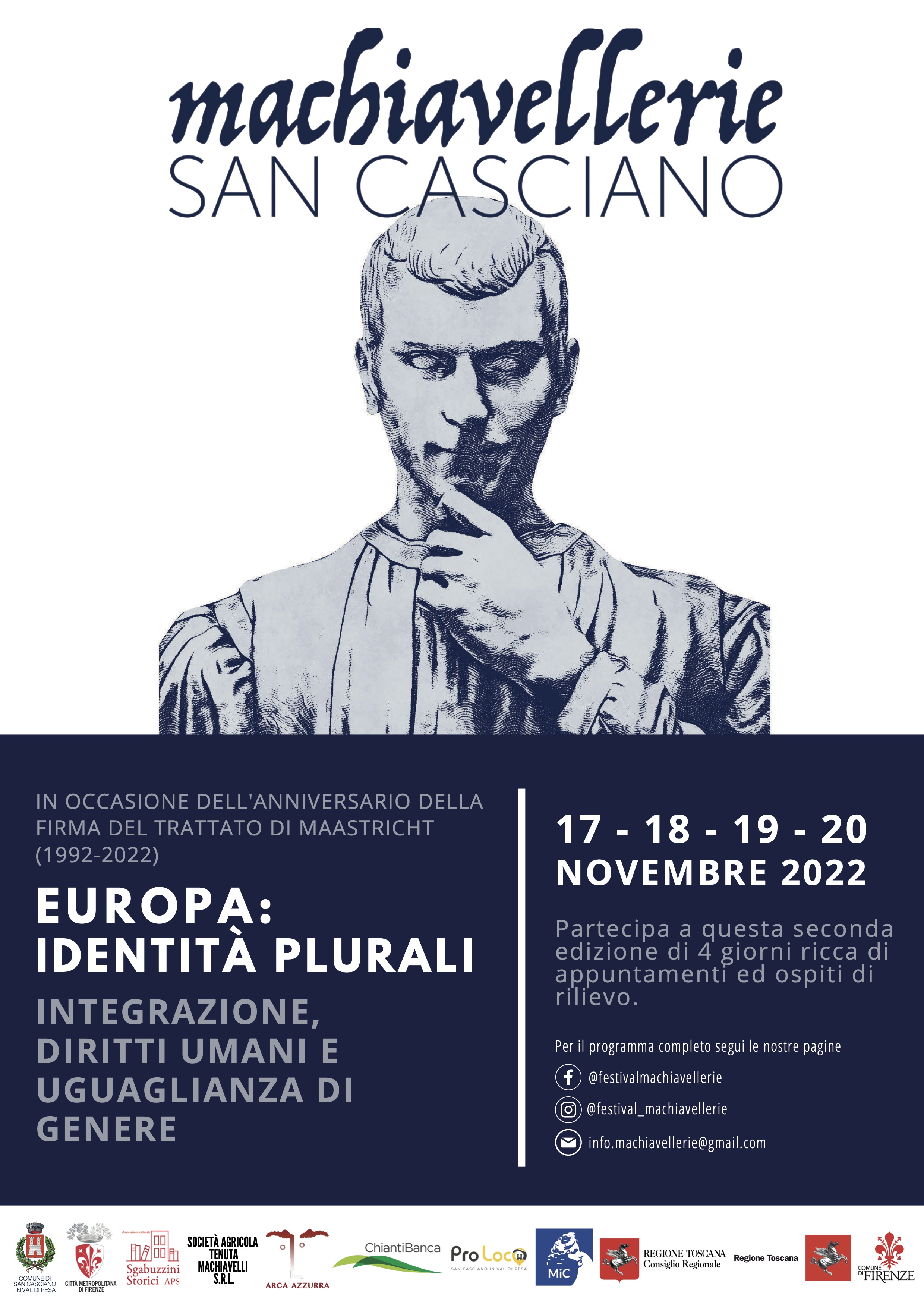 Firenze – Il pensiero politico di Niccolò Machiavelli come chiave per parlare di Europa, di contemporaneità e dei grandi temi del presente. Torna, per la sua seconda edizione, il festival ‘Machiavellerie’, in scena dal 17 al 20 novembre tra Firenze e San Casciano in Val di Pesa. ‘Europa: identità plurali. Integrazione, diritti umani e uguaglianza di genere’ è il focus della rassegna, che rende omaggio al trattato di Maastricht nel trentennale della firma. Quattro giorni per spaziare tra lectio magistralis, conferenze, tavole rotonde, mostre, spettacoli teatrali, percorsi nella natura e visite guidate, con la partecipazione di protagonisti del panorama culturale nazionale.