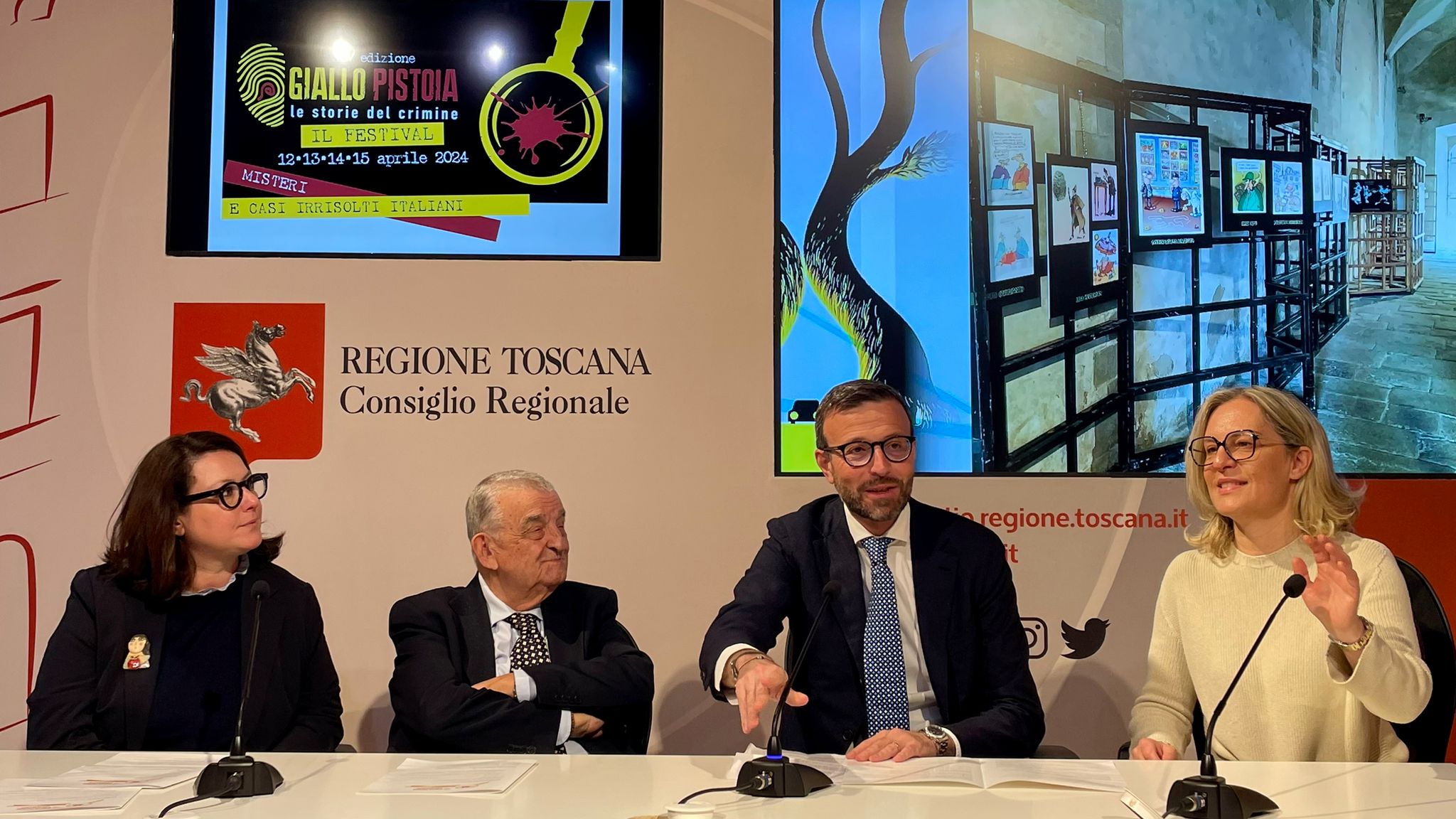 Firenze – ‘Misteri e casi irrisolti italiani’ è il tema della XIV° edizione del Festival del Giallo che, sotto la direzione artistica di Giuseppe Previti, si terrà a Pistoia dal 12 al 15 aprile. La manifestazione organizzata dall’Associazione Giallo Pistoia, in collaborazione con il Comune di Pistoia, con il patrocinio e contributo del Consiglio regionale e della Giunta regionale, è stata presentata nel Media Center ‘Sassoli’ di palazzo del Pegaso.