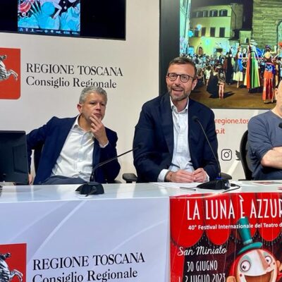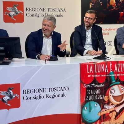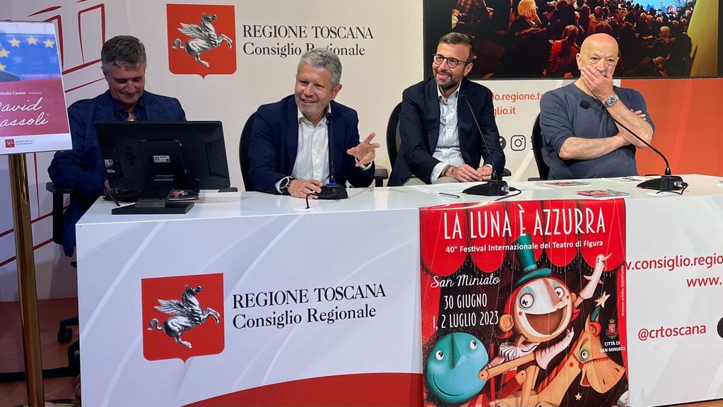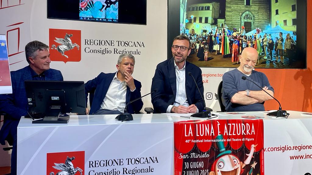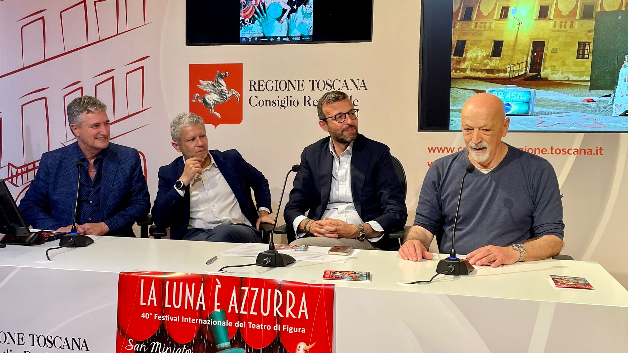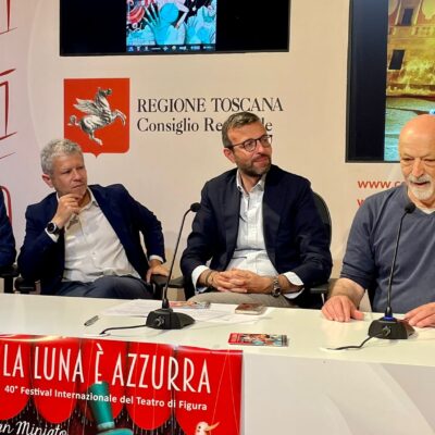 Firenze – Presentato alla stampa nel Media Center David Sassoli da Antonio Mazzeo presidente del Consiglio regionale, da Simone Giglioli e Loredano Arzilli sindaco e assessore alla cultura del Comune di San Miniato, da Alberto Masoni di Terzostudio il Festival che compie 40 anni La Luna è Azzurra. Il festival del teatro di figura che, con le sue baracche, occupa l’intero centro storico di San Miniato, trasformandolo in un unico grande palcoscenico in grado di accogliere migliaia di spettatori (10.000 presenze ogni anno).