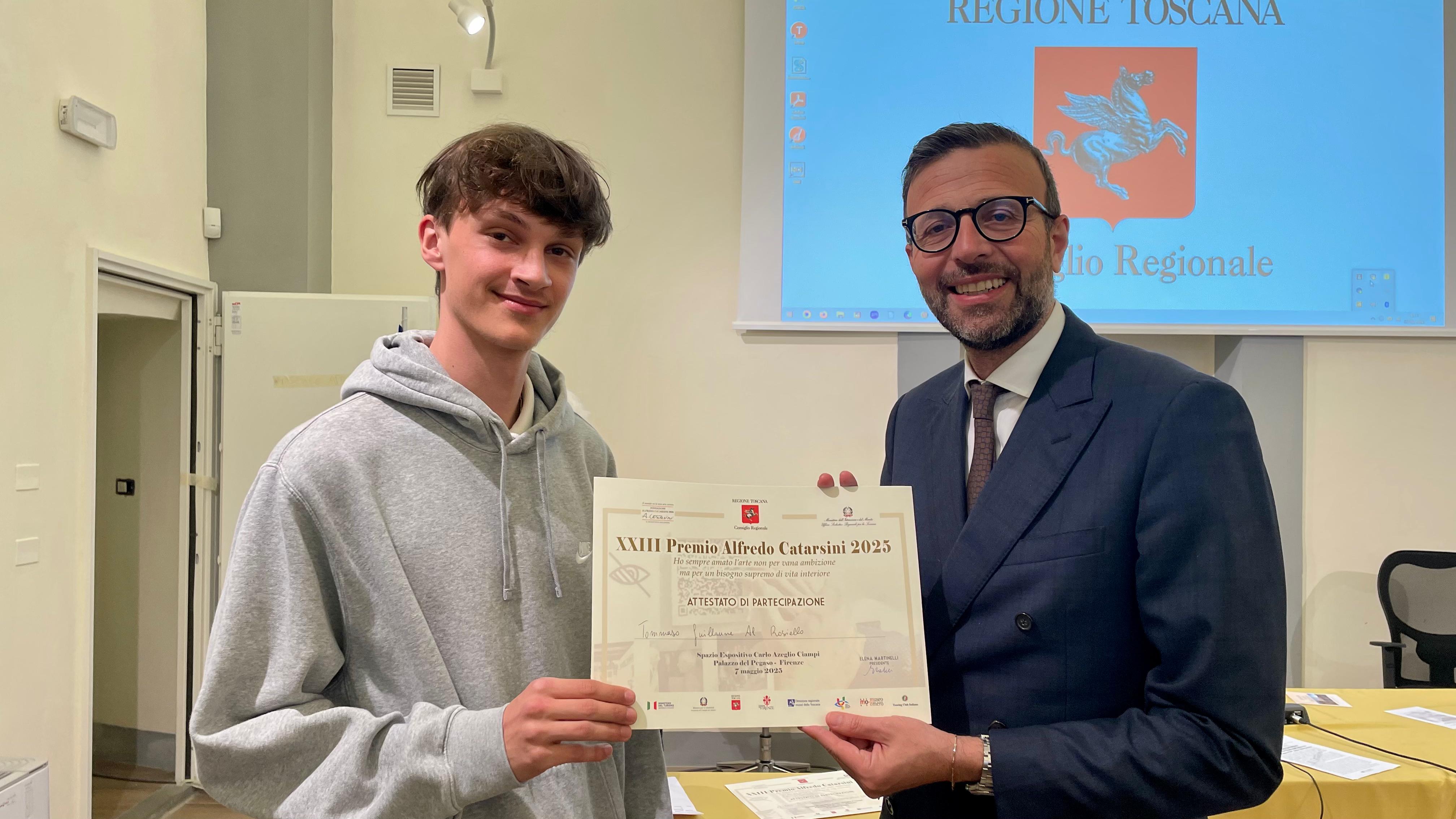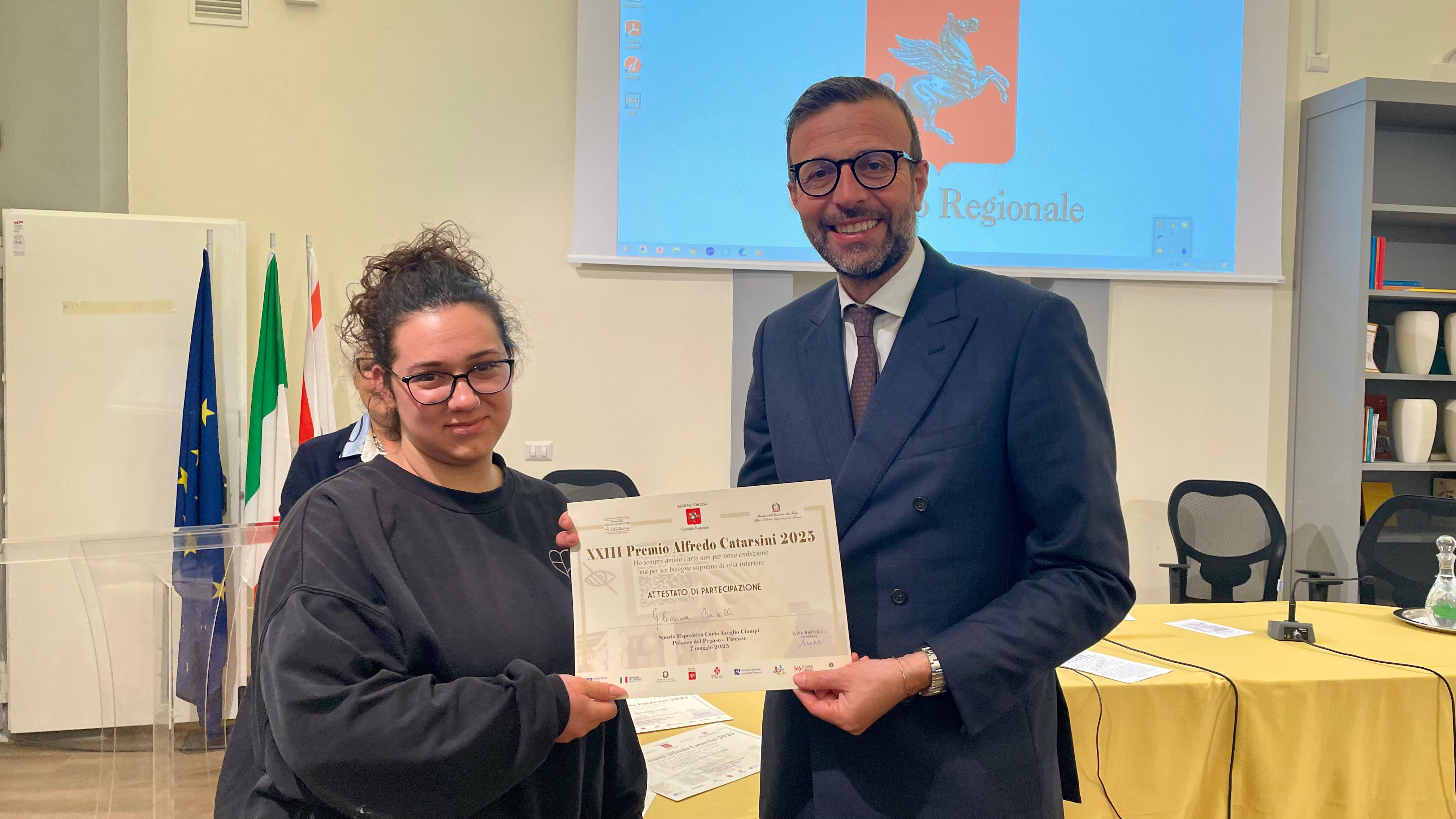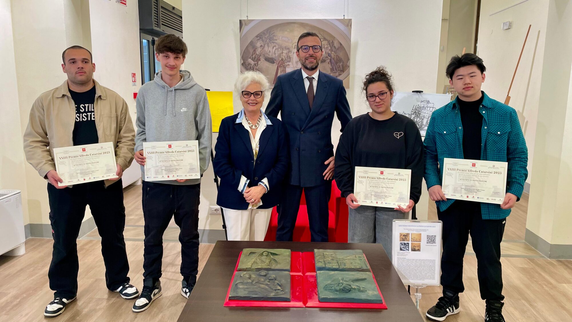 Firenze – Si è conclusa la 23° edizione del Premio Catarsini con la premiazione degli studenti vincitori nello spazio espositivo Ciampi di palazzo del Pegaso. Il premio è stato consegnato dal presidente del Consiglio regionale Antonio Mazzeo, alla presenza di Elena Martinelli presidente della Fondazione, agli studenti del Liceo Artistico di Sansepolcro: Gledonia Bazelli, Tommaso Gnoni, Emanuele Raspini, Al Riosello, e Antoni Zhou. Le opere premiate sono tattilmente esplorabili e accessibili a persone cieche e ipovedenti, realizzate da studenti delle scuole superiori ad indirizzo artistico e turistico.