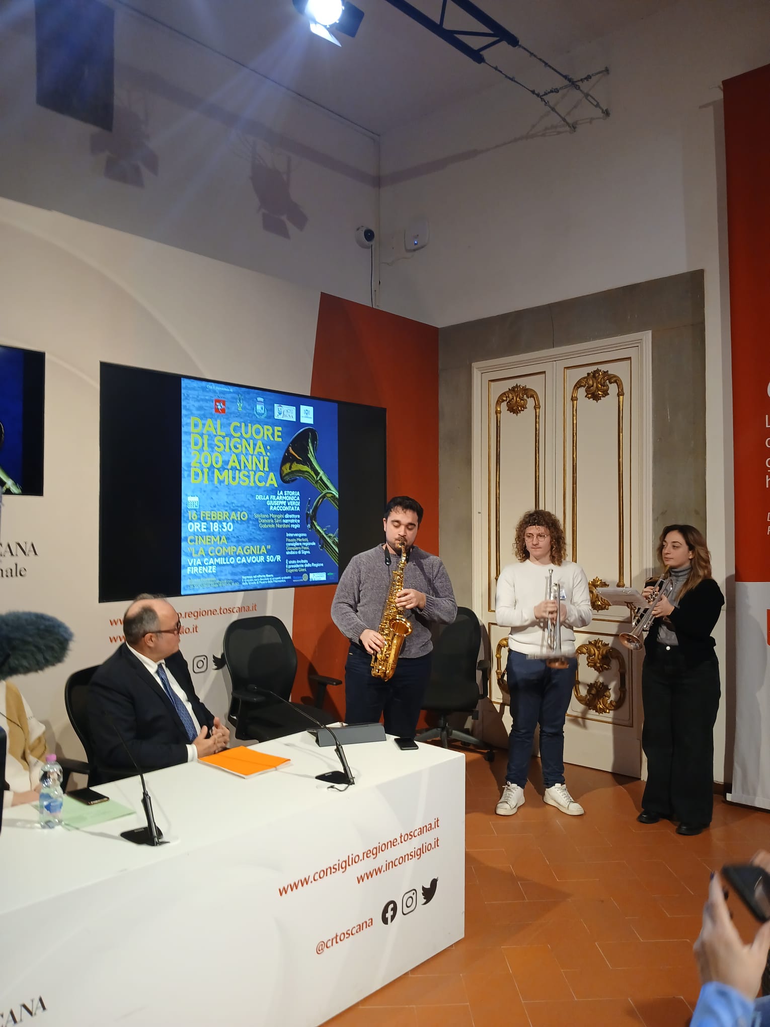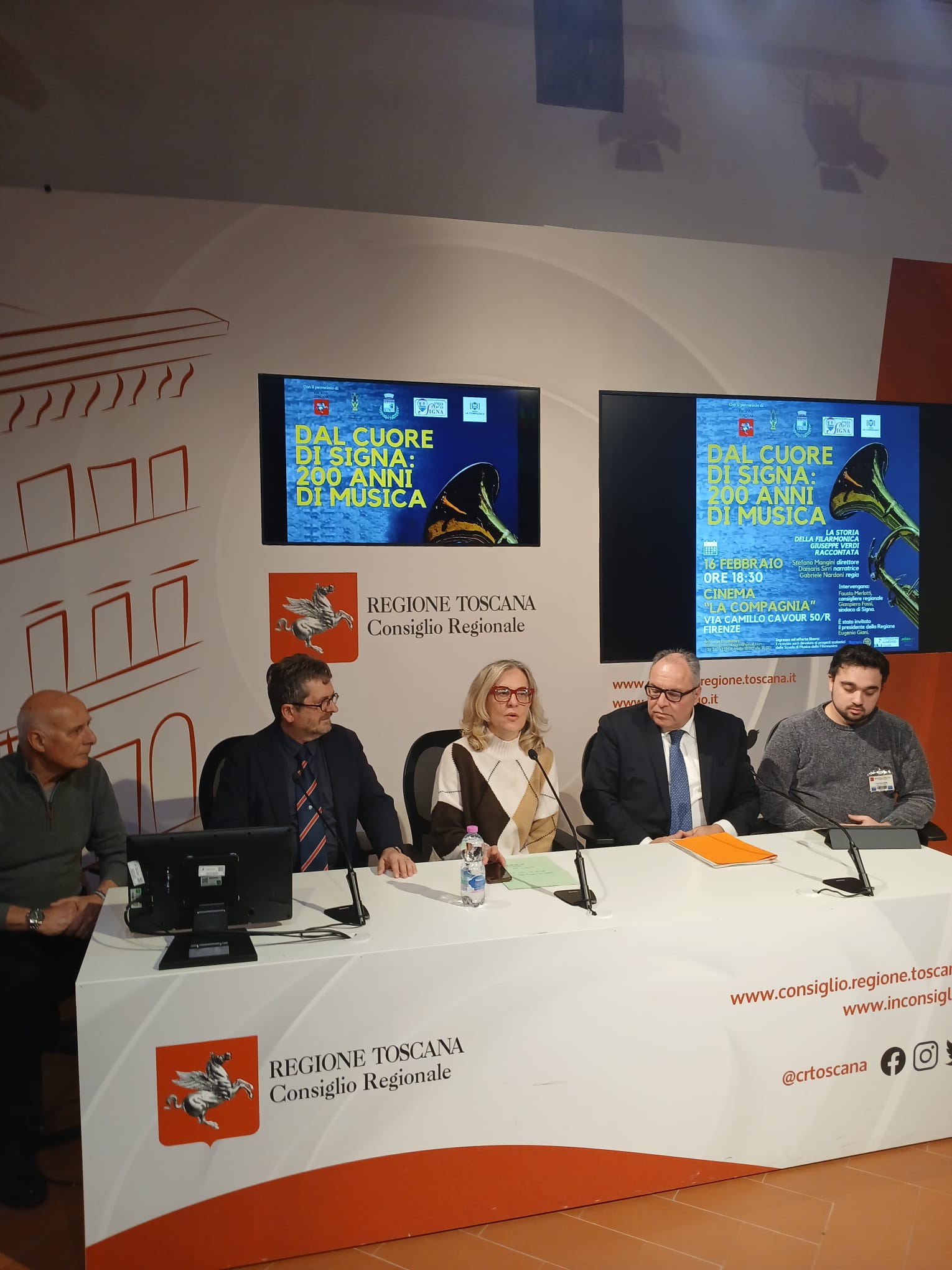 Firenze – La Filarmonica Giuseppe Verdi di Signa (Fi) festeggia i 200 anni di vita. E lo fa con un concerto, che è stato presentato questa mattina durante una conferenza stampa a palazzo del Pegaso. Presenti la consigliera membro dell’Ufficio di presidenza dell’Assemblea legislativa Federica Fratoni, il consigliere regionale Fausto Merlotti, il sindaco di Signa Giampiero Fossi, il vicepresidente della Filarmonica Gabriele Nardoni e Graziano Bertieri per la pro loco di Signa.