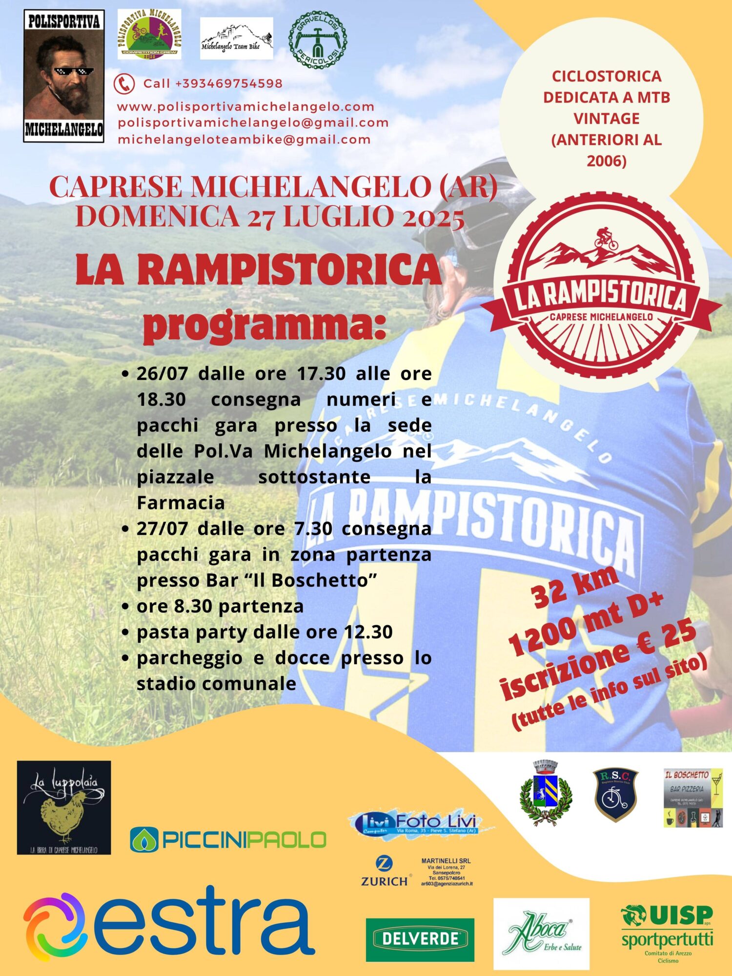 La Rampistorica non è solo una ciclostorica, ma un vero e proprio viaggio nel tempo, alla riscoperta dello spirito pionieristico della mountain bike. Un evento non competitivo dedicato alla socialità, alla passione per le due ruote e alla valorizzazione del meraviglioso territorio di Caprese Michelangelo.