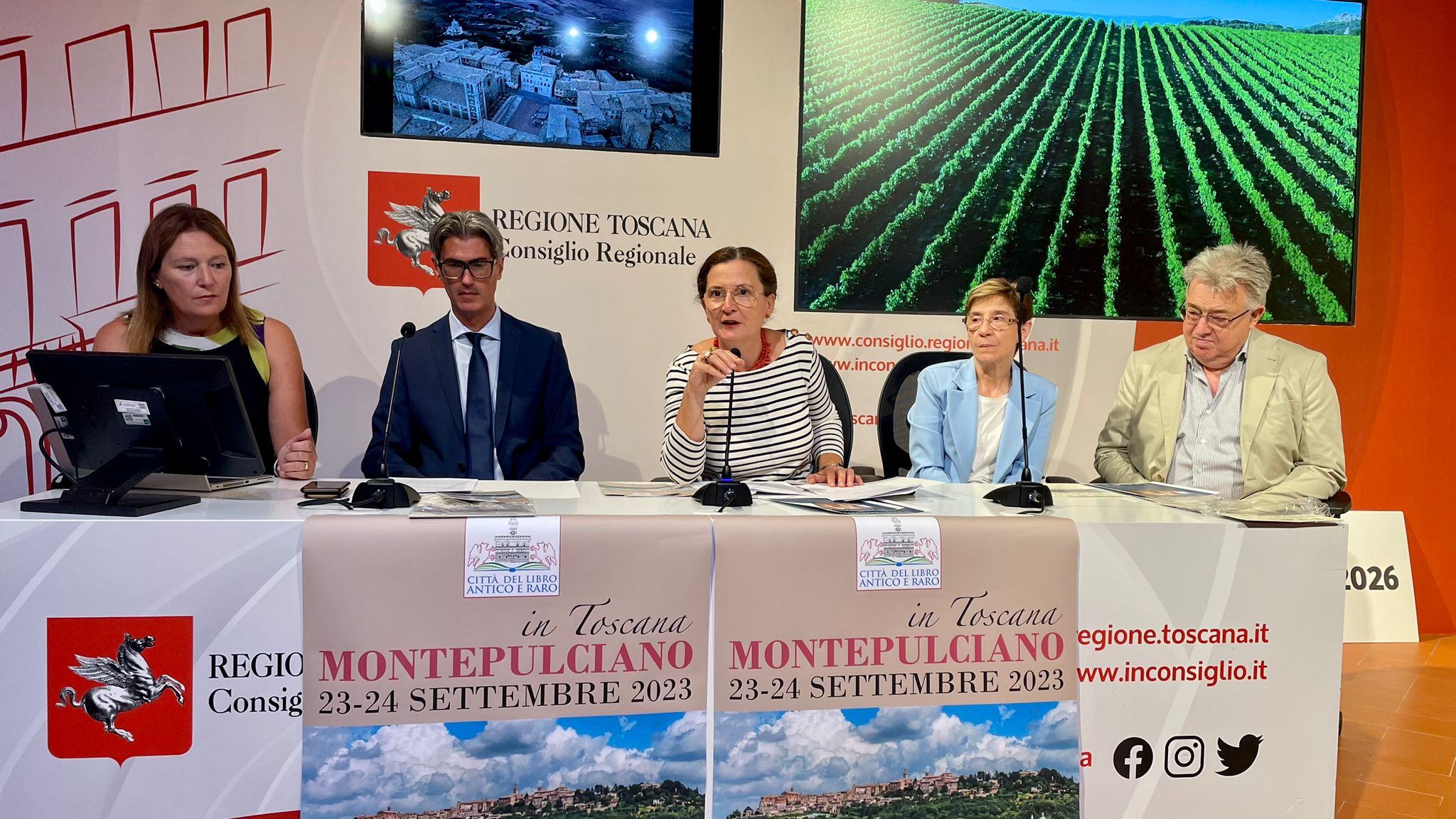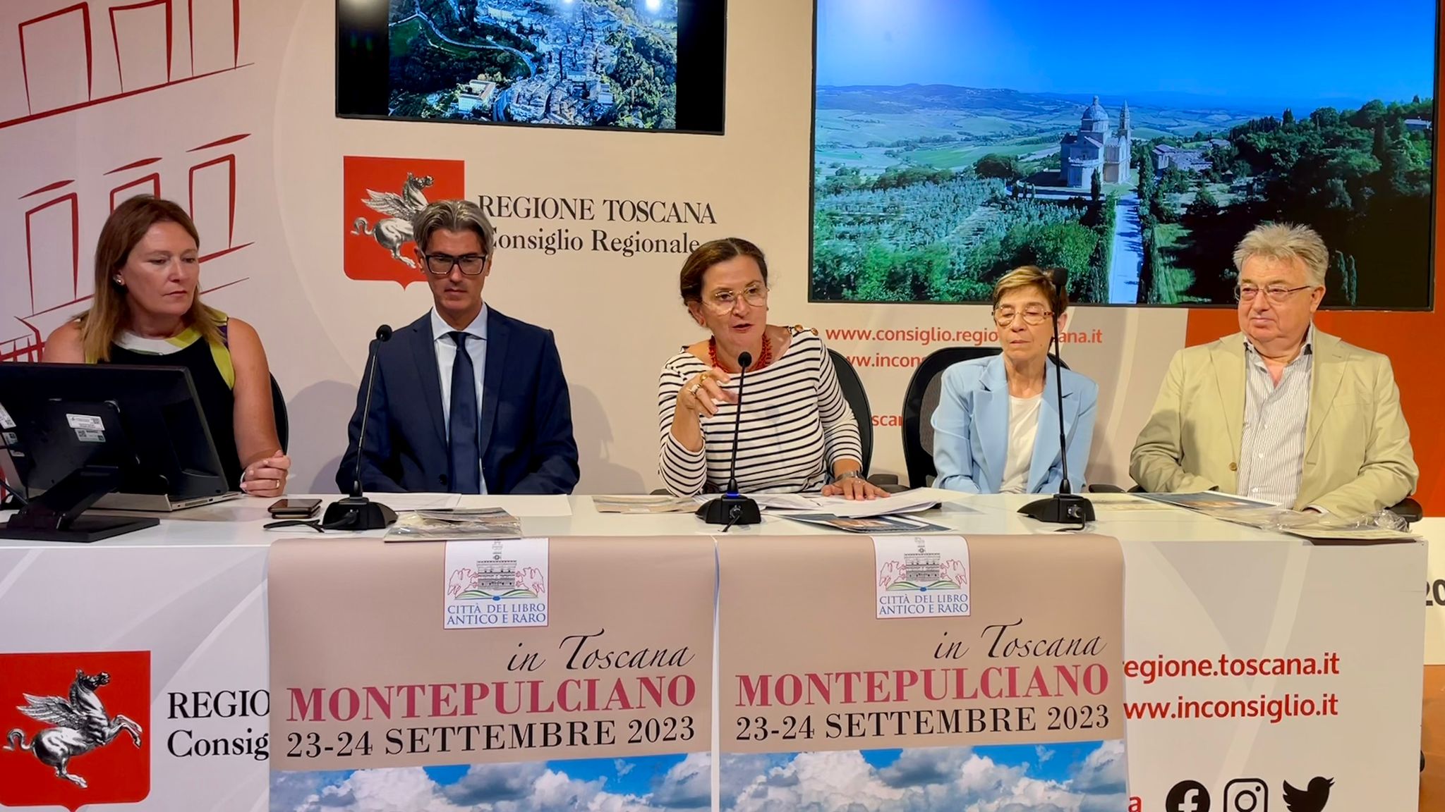 Firenze – Montepulciano diventa capitale dei libri preziosi. Il 23 e 24 settembre prossimi si terrà infatti, nel borgo che ha dato i natali ad Agnolo Poliziano, la prima edizione di Montepulciano città del libro antico e raro. Alla conferenza stampa di presentazione al Media Center Sassoli di palazzo del Pegaso, in via Cavour 4 sono intervenuti Cristina Giachi, presidente della commissione Cultura del Consiglio regionale della Toscana, Elena Rosignoli, consigliera regionale e membro della commissione Cultura, Michele Angiolini, sindaco del Comune di Montepulciano, Lucia Musso, assessore alla cultura del Comune di Montepulciano, Paolo Tiezzi Maestri, presidente della Società Bibliografica Toscana.