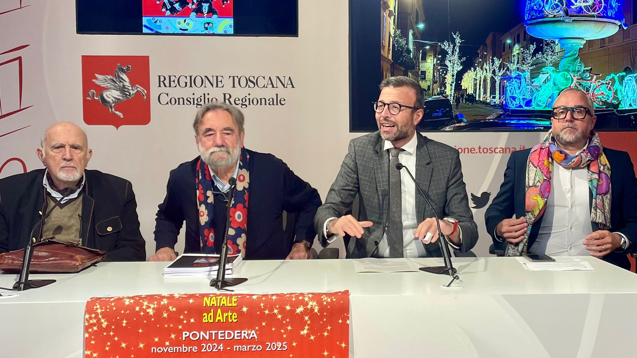 Firenze – Al Media Center David Sassoli a palazzo del Pegaso è stato presentato il programma di Natale ad Arte a Pontedera. Sono intervenuti il presidente del Consiglio regionale Antonio Mazzeo, il sindaco Matteo Franconi, l’assessore alla cultura Francesco Mori, il presidente della Fondazione Pontedera per l’arte Federico Nocchi e, per la parte artistica, Ilario Luperini, Alberto Bartalini e Giuseppe Diomelli.