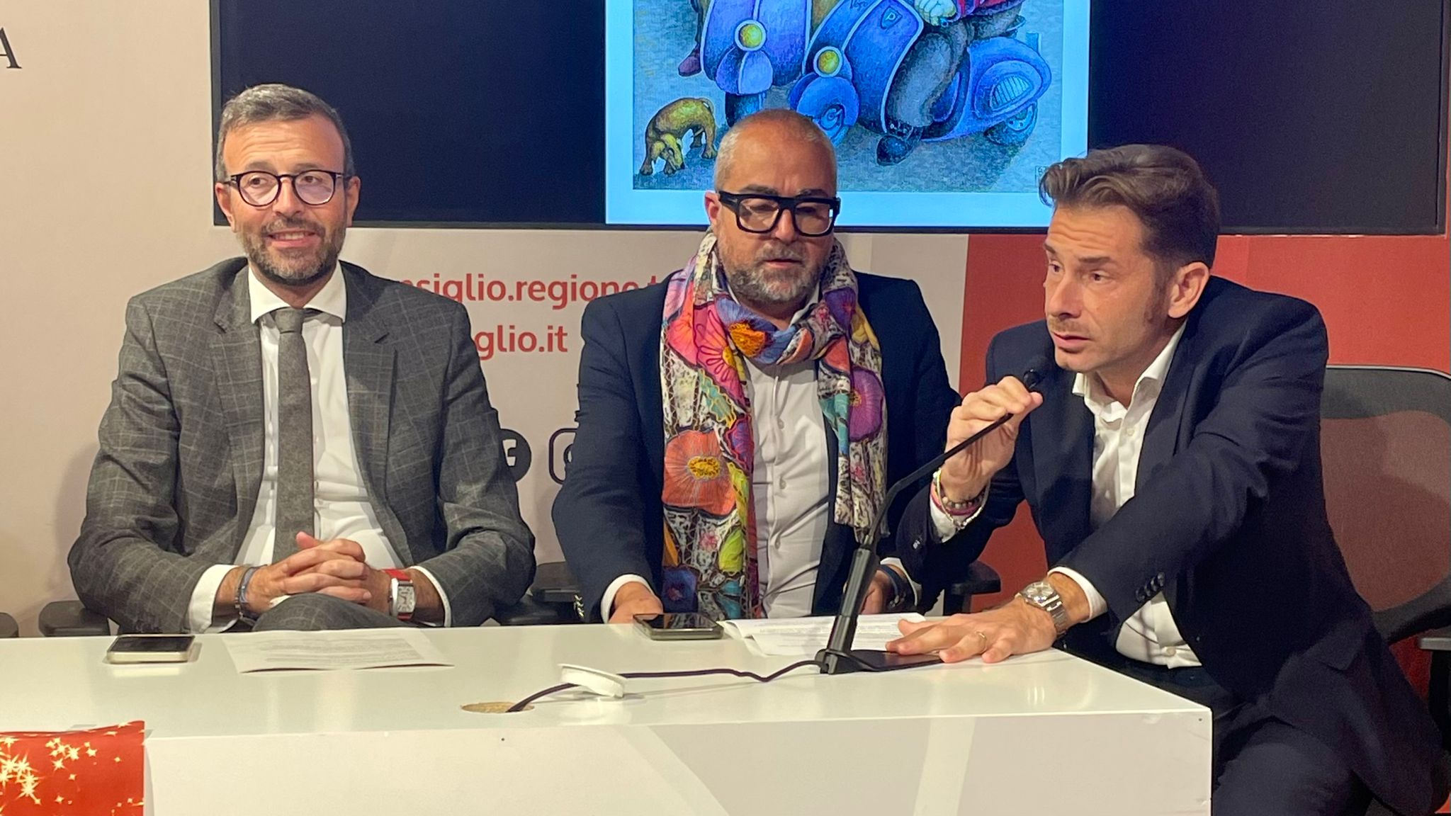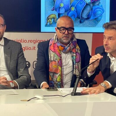 La conferenza stampa ha presentato le iniziative artistiche. Sono intervenuti il presidente del Consiglio regionale Antonio Mazzeo e il sindaco Matteo Franconi