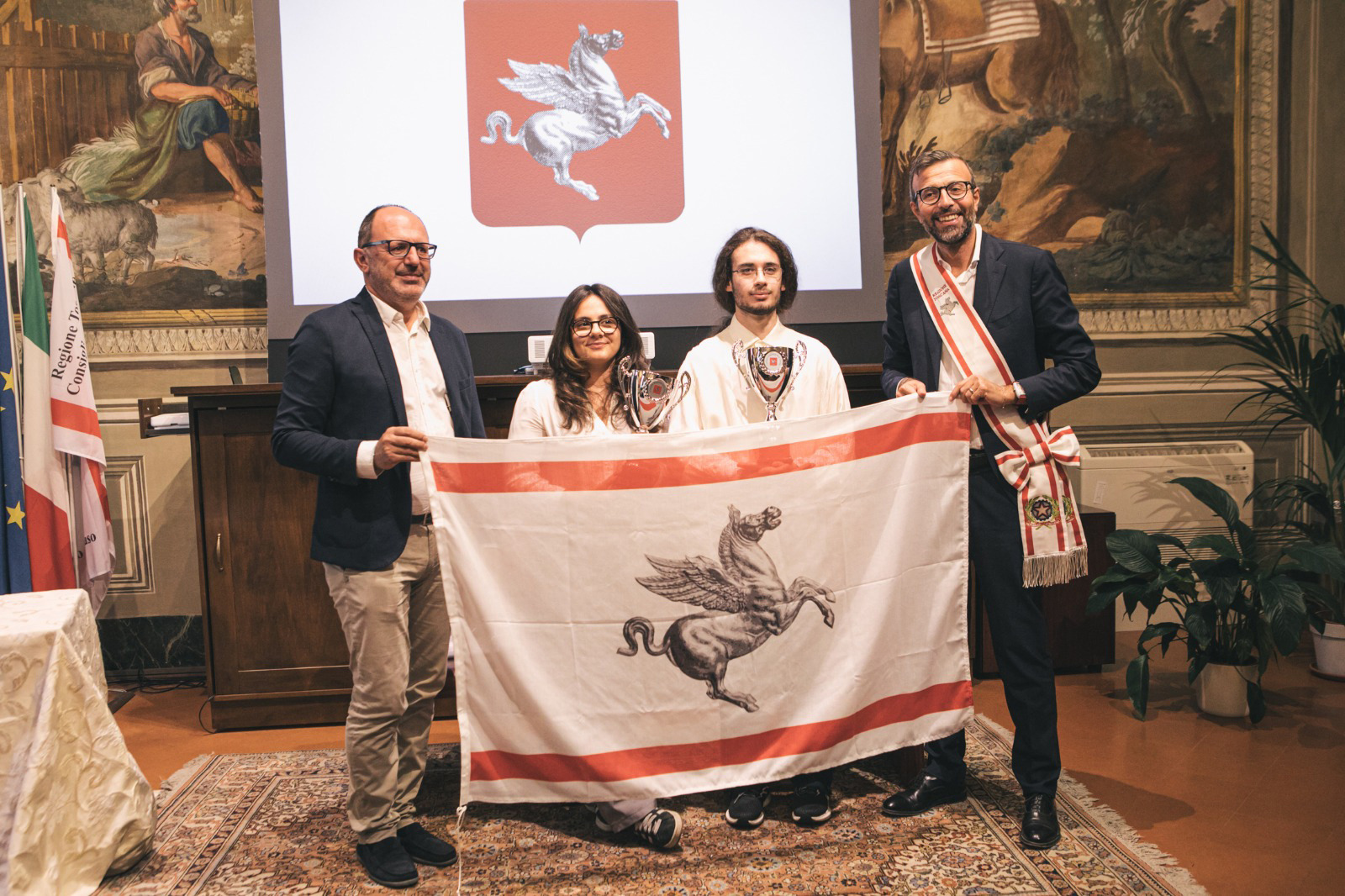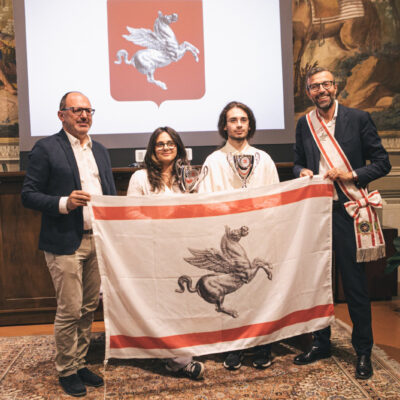 Alla cerimonia di premiazione, che si è tenuta ieri, martedì 24 settembre, nella sala degli Affreschi di palazzo del Pegaso, hanno preso parte il presidente del Consiglio regionale Antonio Mazzeo e il portavoce dell’opposizione Marco Landi. Hanno consegnato a ciascuno dei ragazzi una coppa e una bandiera della Toscana, “che è di buon auspicio, ha già portato fortuna a molti tra quelli ai quali abbiamo avuto l’onore di consegnare riconoscimenti”, ha assicurato il presidente Mazzeo. “Il mio augurio è che questo per voi sia un punto di partenza e che si possano aprire le porte più belle per i vostri sogni”.