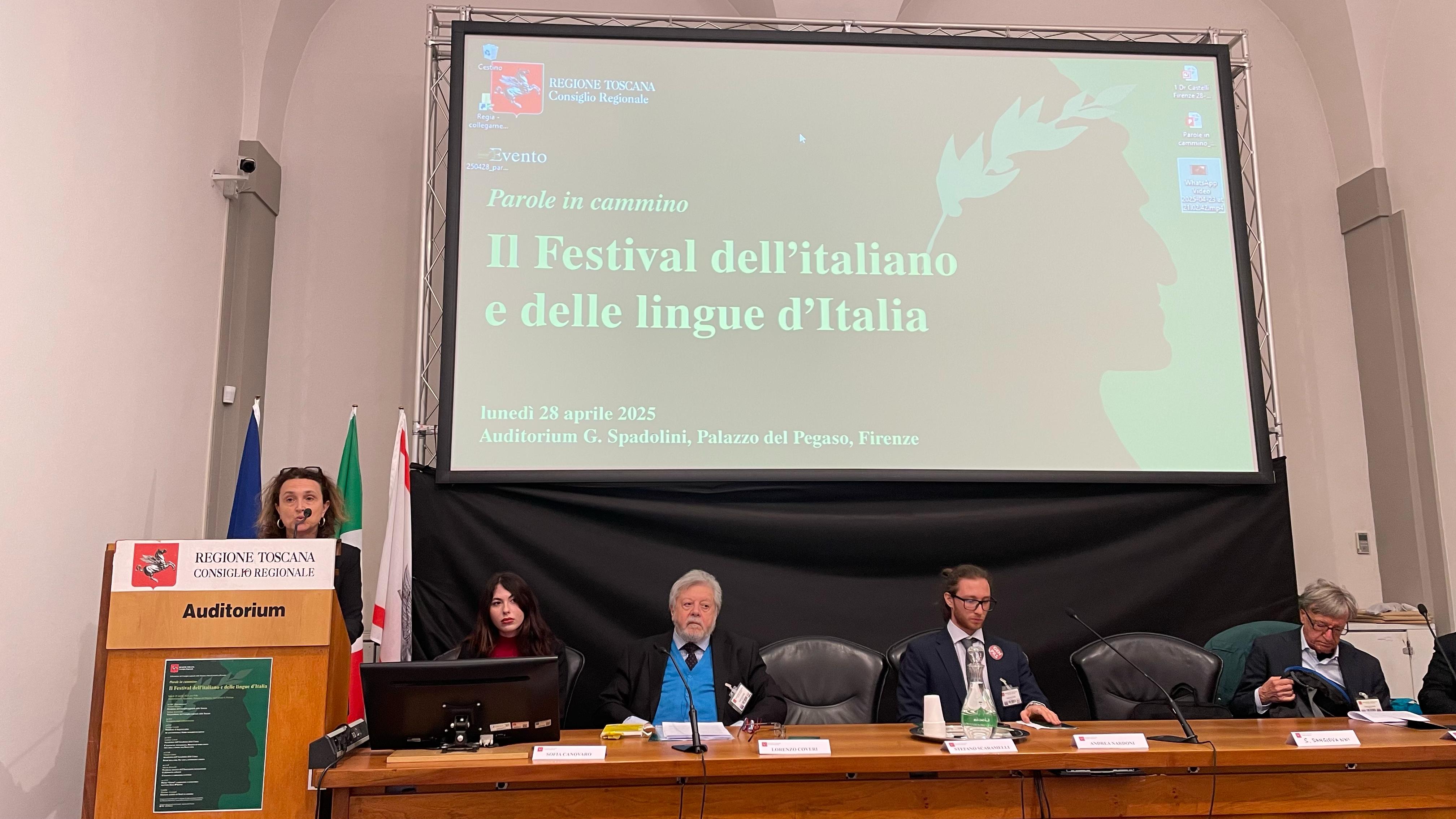 Firenze – Lo strumento della lingua è al centro dell’iniziativa “Parole in cammino – Il Festival dell’italiano e delle lingue d’Italia”. Sono intervenuti Stefano Scaramelli, vicepresidente del Consiglio regionale della Toscana; un rappresentante del Parlamento degli studenti toscani; Viviana Castelli, presidente di Step-net onlus Ad alto potenziale; Lorenzo Coveri, accademico dell’Accademia della Crusca; Vittorio Coletti, accademico dell’Accademia della Crusca; Alberto Botarelli, presidente onorario dell’Osservatorio internazionale di diplomazia culturale.