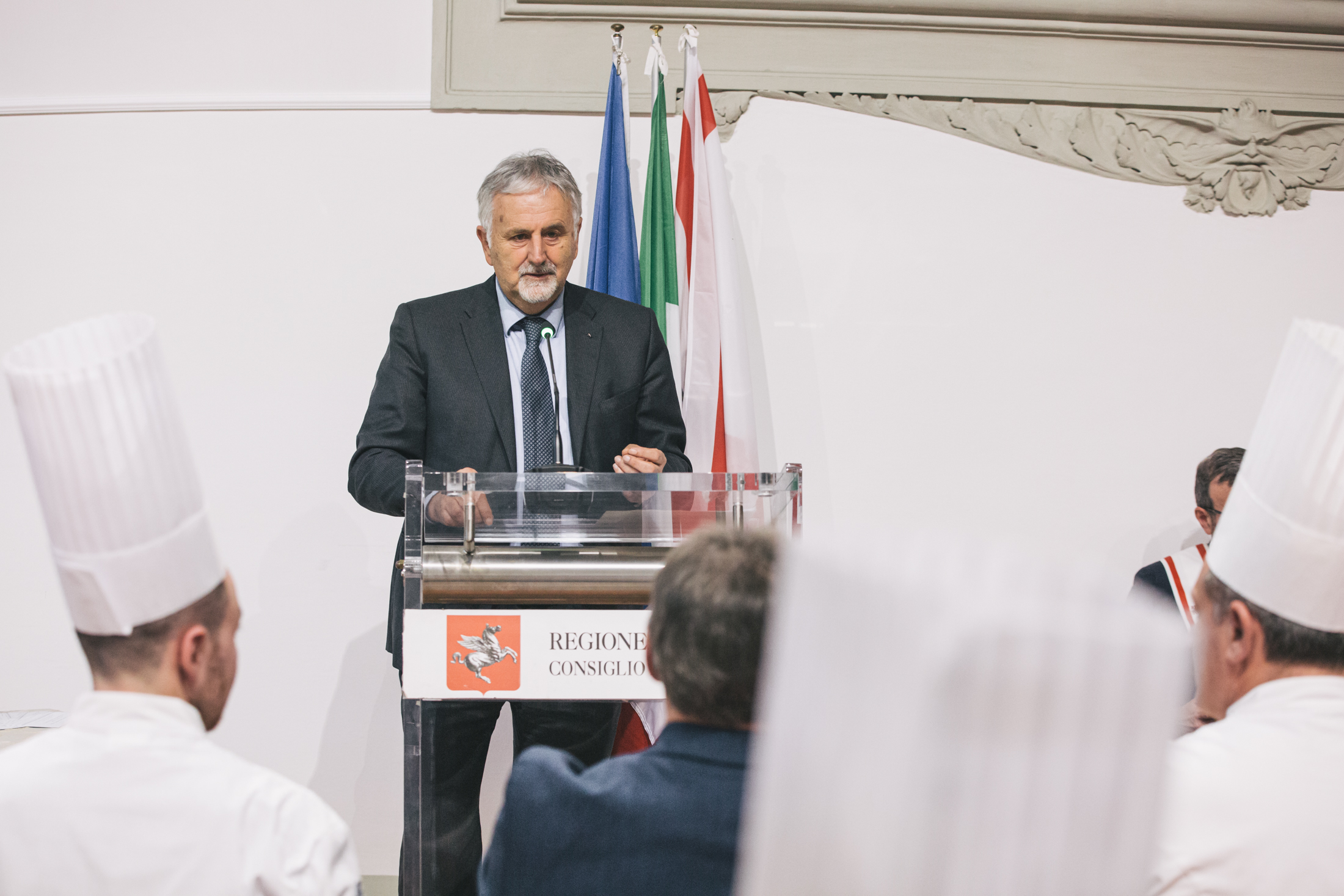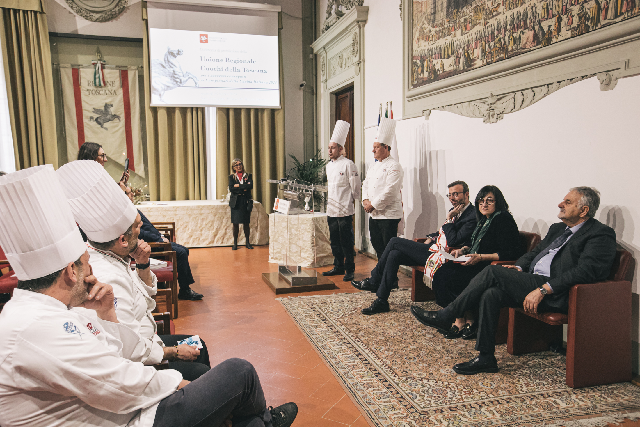 A consegnare il premio nelle mani del team manager della squadra, Tommaso Monaci dell’Associazione Cuochi Arezzo, il presidente dell’Assemblea legislativa Antonio Mazzeo: “Siete motivo di orgoglio, non è scontato arrivare a questi risultati. Risultati raggiunti coniugando tradizione e innovazione. Sapere che ragazze e ragazzi giovanissimi riescono a valorizzare la Toscana, con la sua cucina, la filiera corta e la sua identità, mi dà il senso che è stato fatto un ottimo lavoro”.