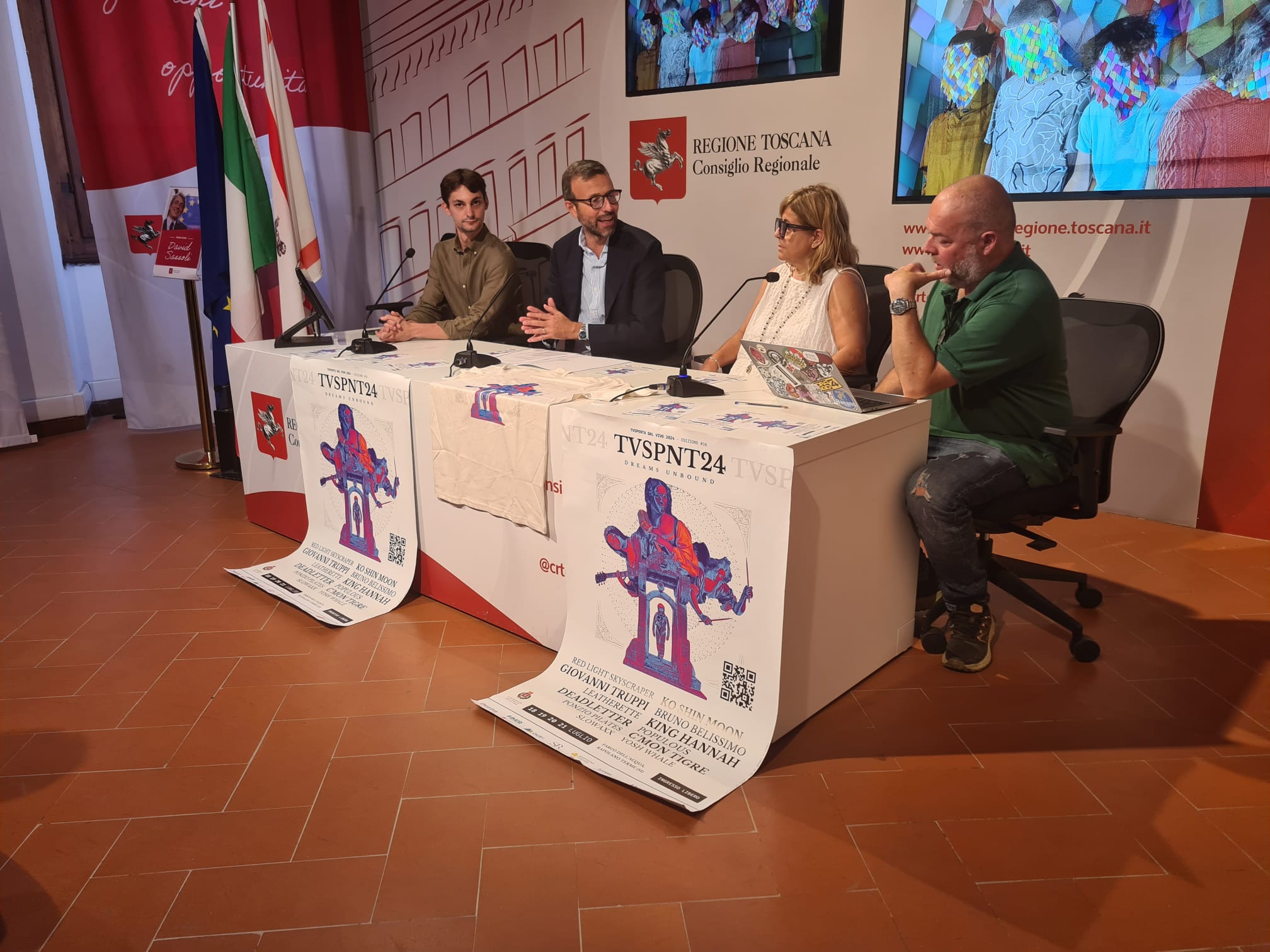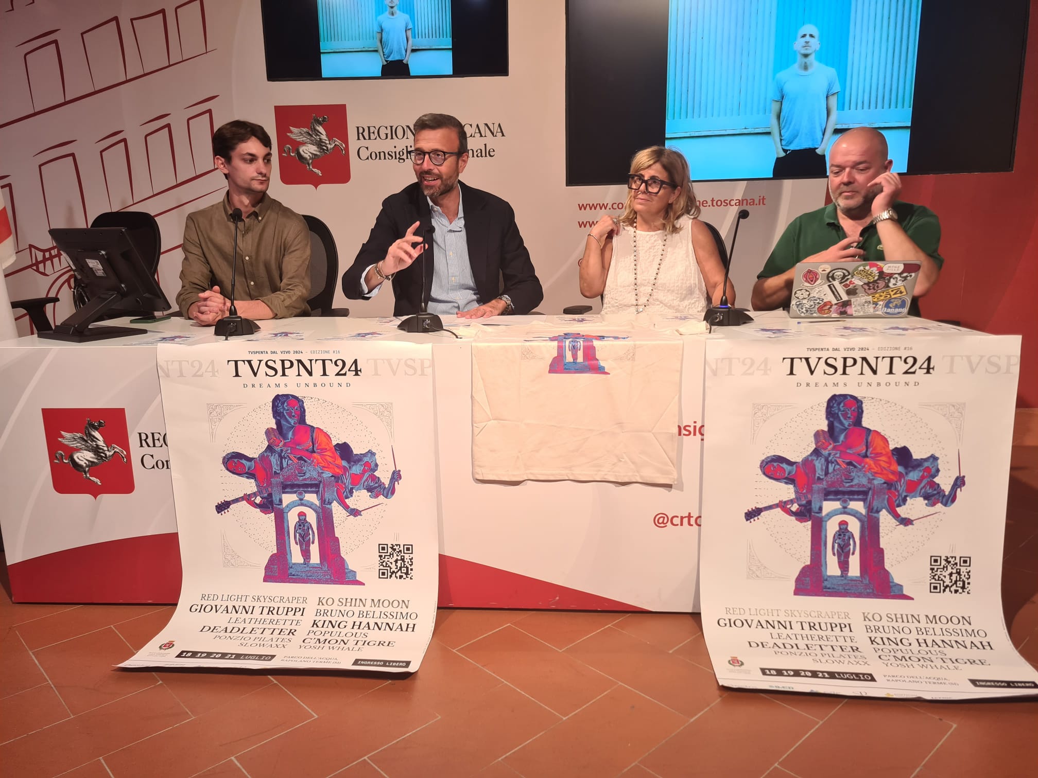 Firenze – Il tanto atteso appuntamento estivo con ‘TVSpenta Dal Vivo’ torna per la sua 16esima edizione e porta al Parco dell’Acqua di Rapolano Terme quattro giorni di musica, cultura e intrattenimento gratuiti. Da giovedì 18 a domenica 21 luglio il festival, con il tema “dreams unbound”, promette di far sognare grandi e piccini grazie a un ricco programma di eventi e numerose collaborazioni. L’evento è stato presentato in una conferenza stampa al Media Center Sassoli a palazzo del Pegaso dal presidente dell’Assemblea toscana Antonio Mazzeo, il vicesindaco di Rapolano Terme Gianna Trapassi, l’assessore all’Ambiente di Rapolano Terme Federico Vigni, per il Comitato Esecutivo Tv Spenta Pietro Folco, per la direzione artistica di TvSpenta Marco Masti. Era presente la consigliera Elena Rosignoli.