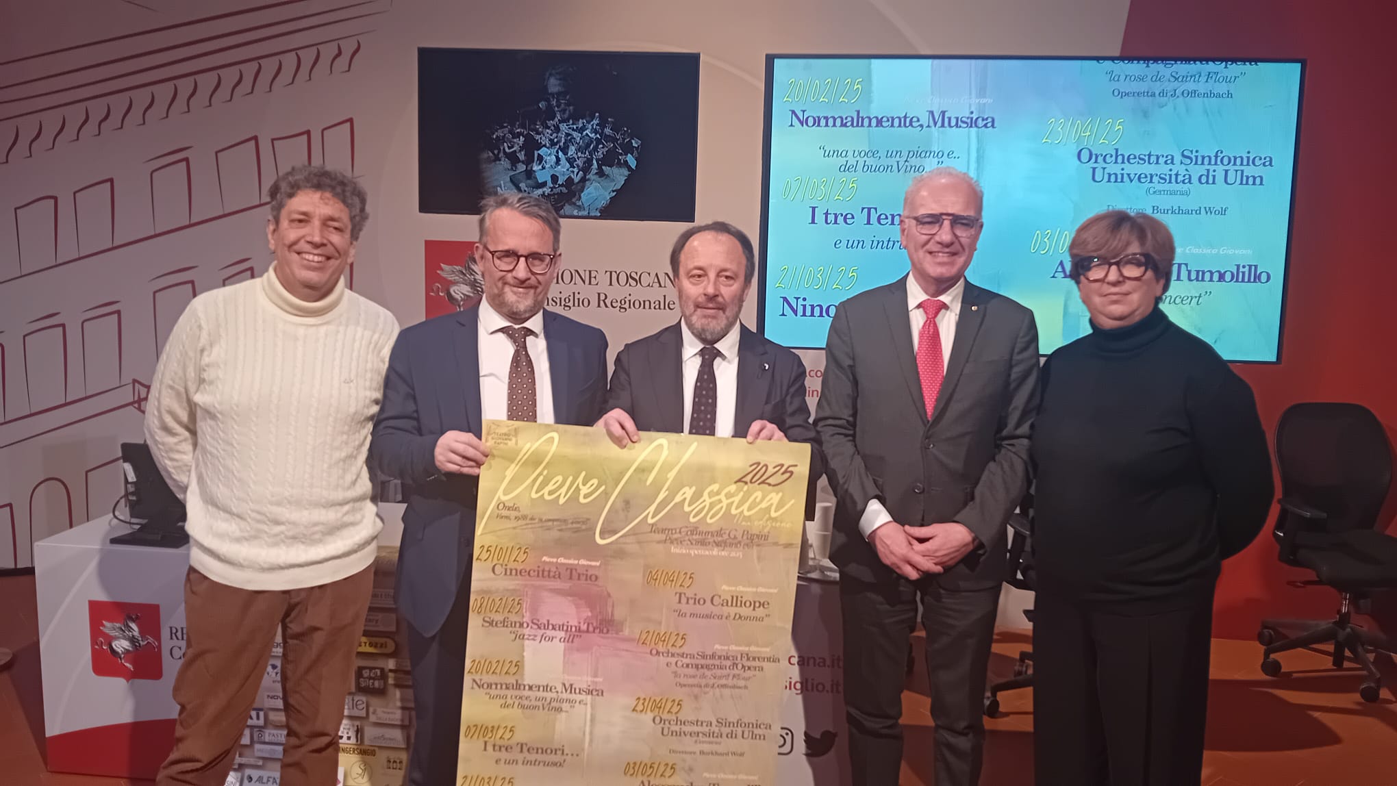 Firenze – Torna, per la sua undicesima edizione, la rassegna musicale ‘Pieve Classica’, organizzata dal comune di Pieve Santo Stefano (Arezzo) nel Teatro Papini. Per presentarla è stata organizzata una conferenza stampa al Media Center Sassoli di palazzo del Pegaso alla quale hanno partecipato il vicepresidente del Consiglio regionale Marco Casucci, il sindaco di Pieve Santo Stefano Claudio Marcelli, l’assessore alla Cultura e Promozione del territorio Luca Gradi, il direttore del Credito Cooperativo di Anghiari e Stia Fabio Pecorari, la direttrice artistica Caterina Seri presidente del Coro Alto Tiberino.