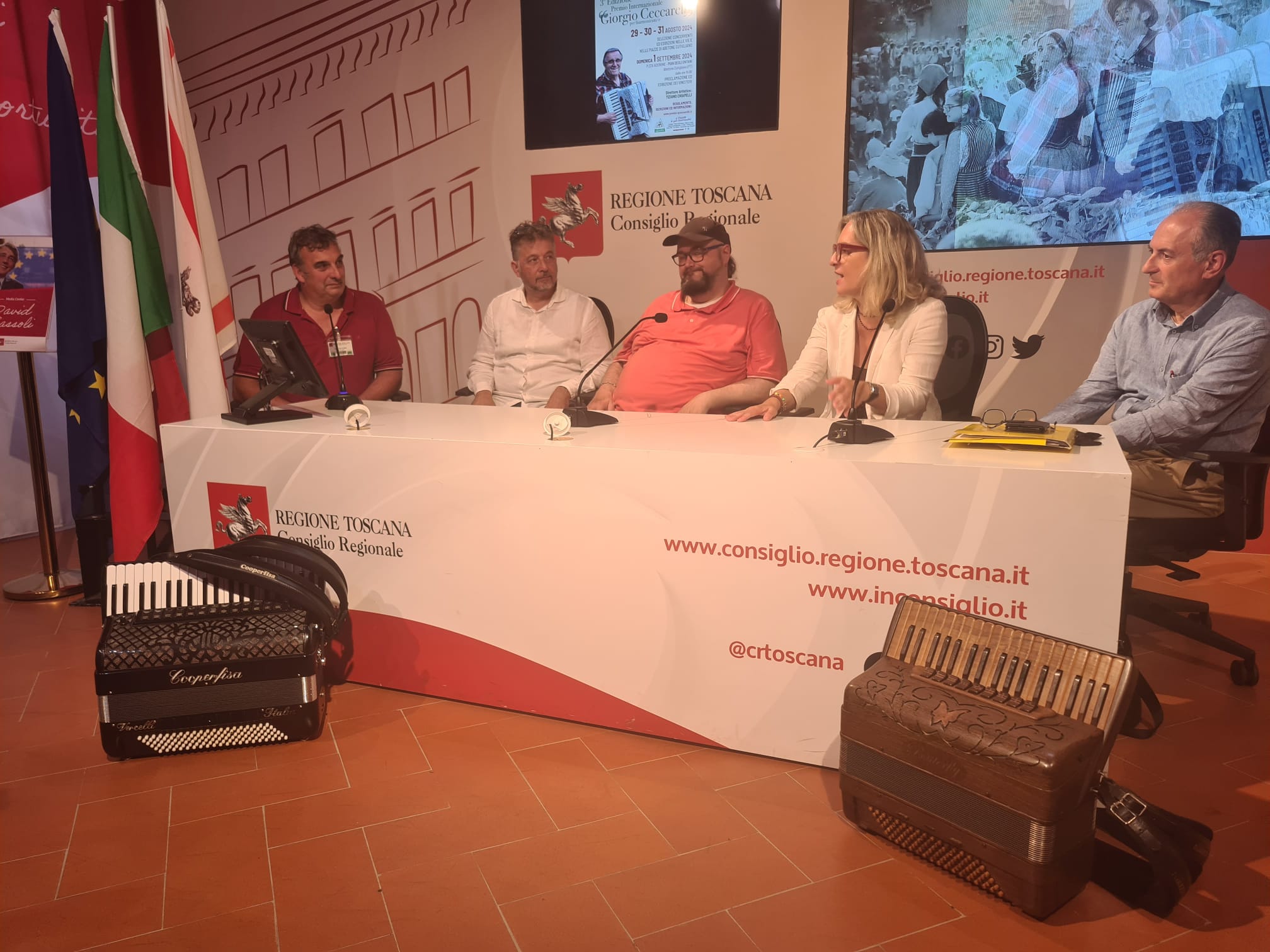 Firenze – In una conferenza stampa al Media Center Sassoli a palazzo del Pegaso è stata presentata la terza edizione del premio Giorgio Ceccarelli per fisarmonicisti. Il premio riguarda il territorio di Abetone Cutigliano e la cerimonia è in programma il 1° settembre a Pian degli Ontani. La direzione artistica è affidata a Tiziano Cappelli e il premio ha lo scopo di promuovere la cultura musicale nelle generazioni più giovani. Sono intervenuti il presidente del Consiglio regionale Antonio Mazzeo, la consigliera regionale Federica Fratoni, il direttore artistico Tiziano Cappelli, l’organizzatore del premio Graziano Nesti. Era presente anche la consigliera regionale Luciana Bartolini.