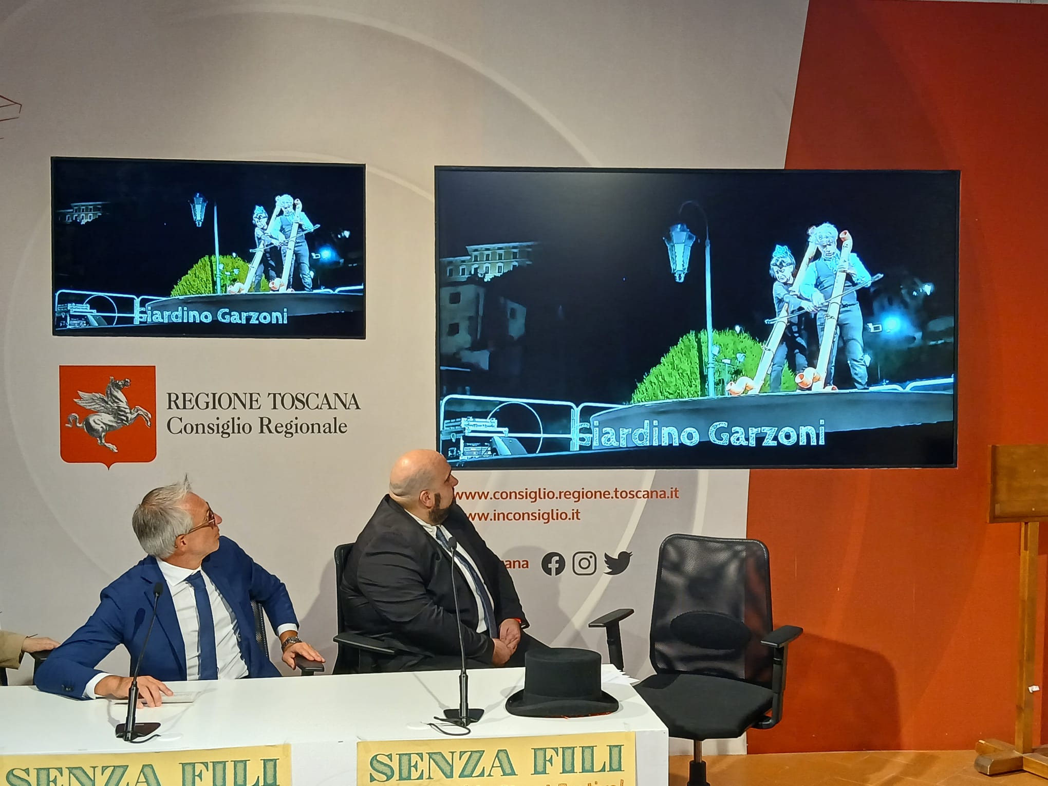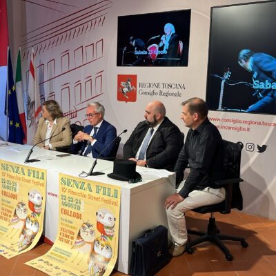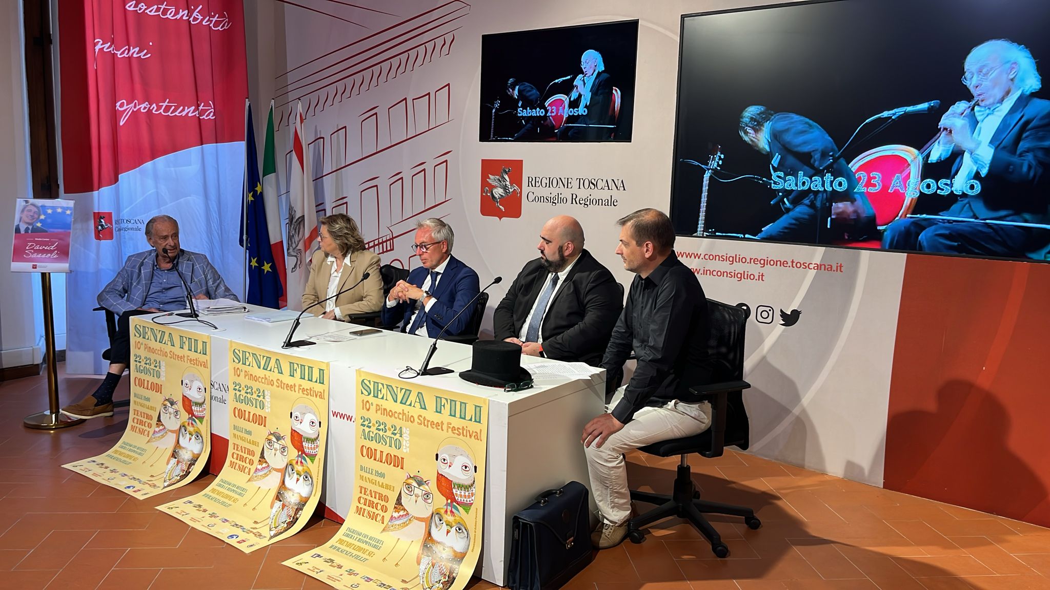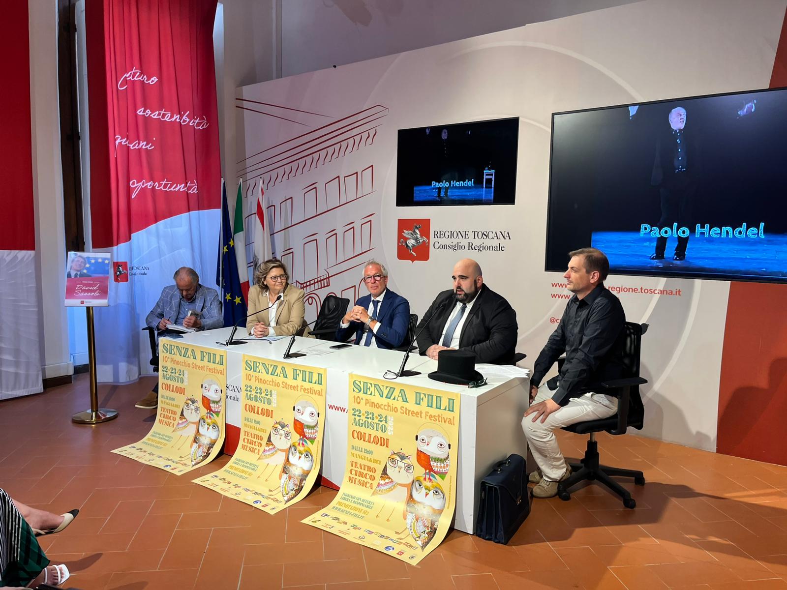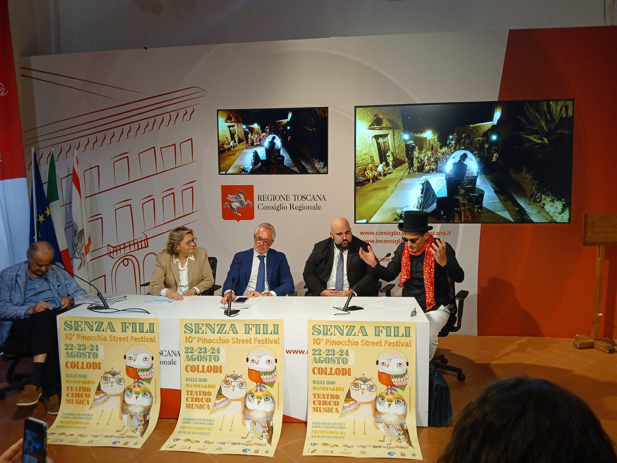 Firenze – Dopo il successo riscosso negli anni passati, torna per ‘Senza fili’-Pinocchio Street Festival, che quest’anno giunge alla decima edizione. La kermesse, in programma a Collodi (Pistoia) dal 22 al 24 agosto, è stata presentata in una conferenza stampa che si è tenuta questa mattina, mercoledì 23 luglio, a palazzo del Pegaso. Sono intervenuti il vicepresidente del Consiglio regionale Stefano Scaramelli, il vicesindaco del Comune di Pescia, Luca Tridente; il direttore artistico del festival, Alessio Michelotti; la vicepresidente della Fondazione Cassa di risparmio di Pistoia e Pescia, Cristina Pantera; il presidente della Fondazione nazionale ‘Carlo Collodi’, Pier Francesco Bernacchi.