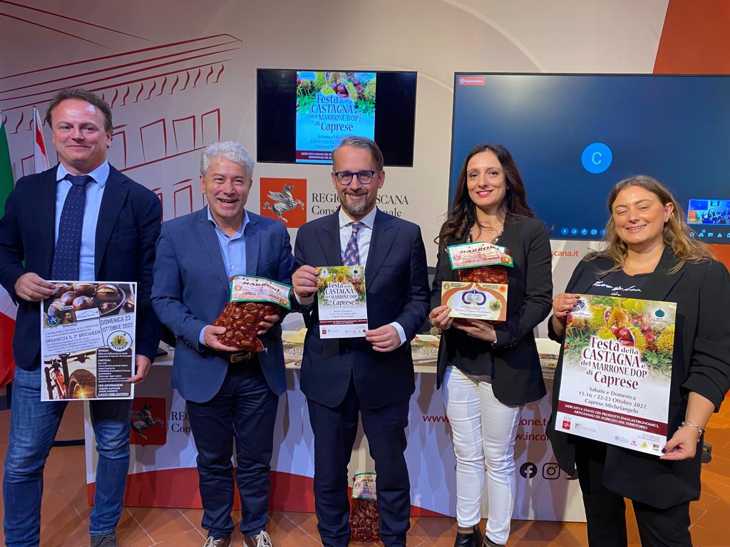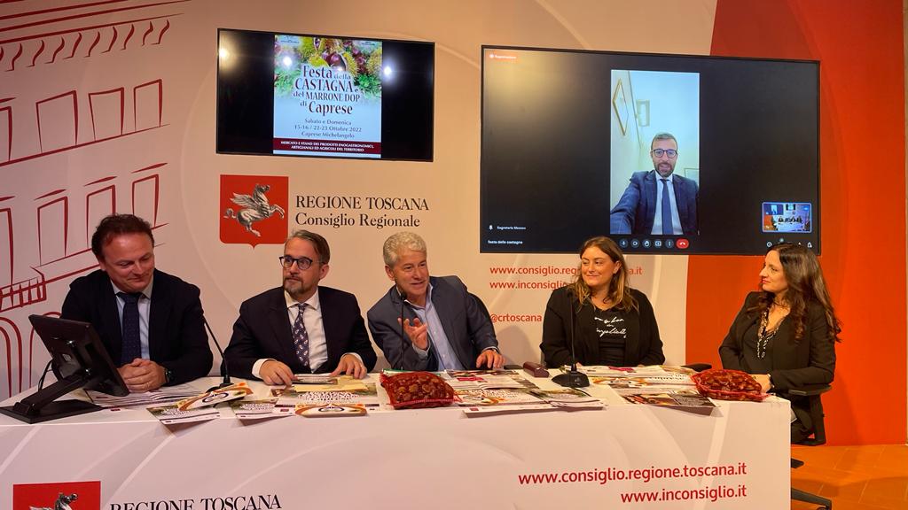 “Quando un evento si ripete da oltre mezzo secolo – ha esordito il presidente del Consiglio regionale Antonio Mazzeo in collegamento video – significa che rappresenta qualcosa di profondo e di importante per il territorio. Questa festa è un appuntamento storico per tutta la valle e celebra un prodotto le cui qualità organolettiche sono state valorizzate dall’Unione Europea, tanto che il marrone di Caprese ha ricevuto il prestigioso marchio Dop, tutt’altro che scontato. Sono felice di poter dire che queste tradizioni, la bellezza dei nostri territori e la qualità dei nostri prodotti rendono la Toscana una terra unica al mondo”.